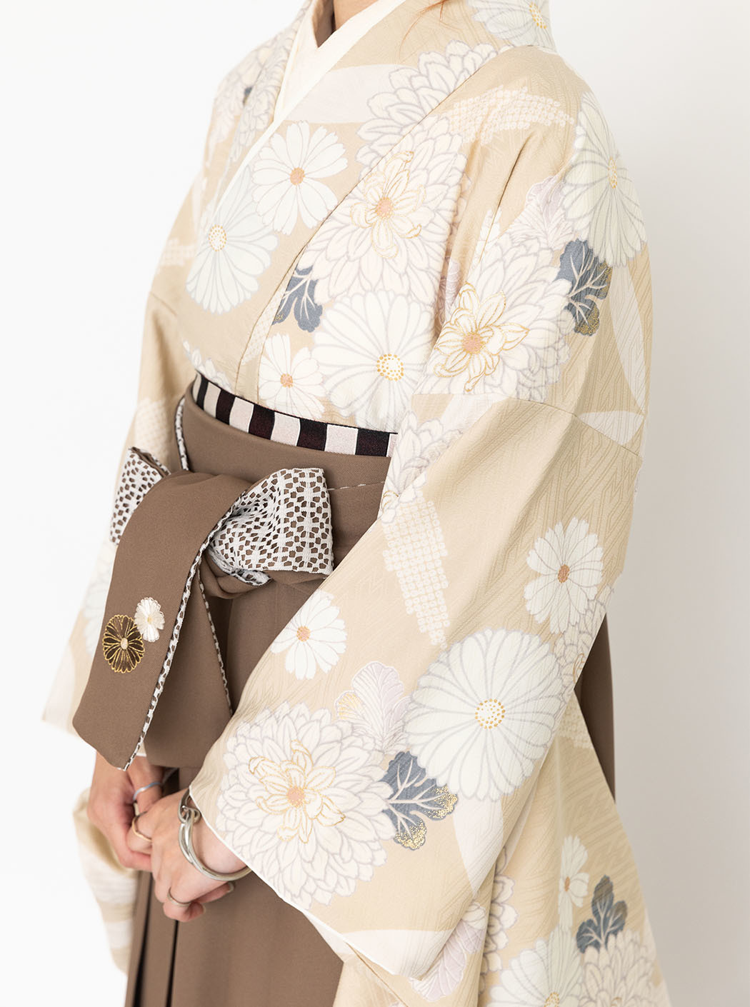 七宝に万寿菊 /ベージュ【九重】(袴:万寿菊 刺繍/茶)