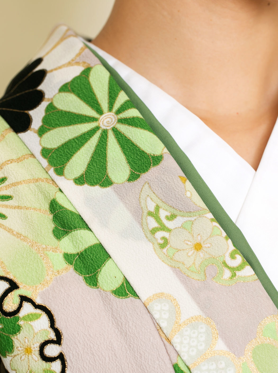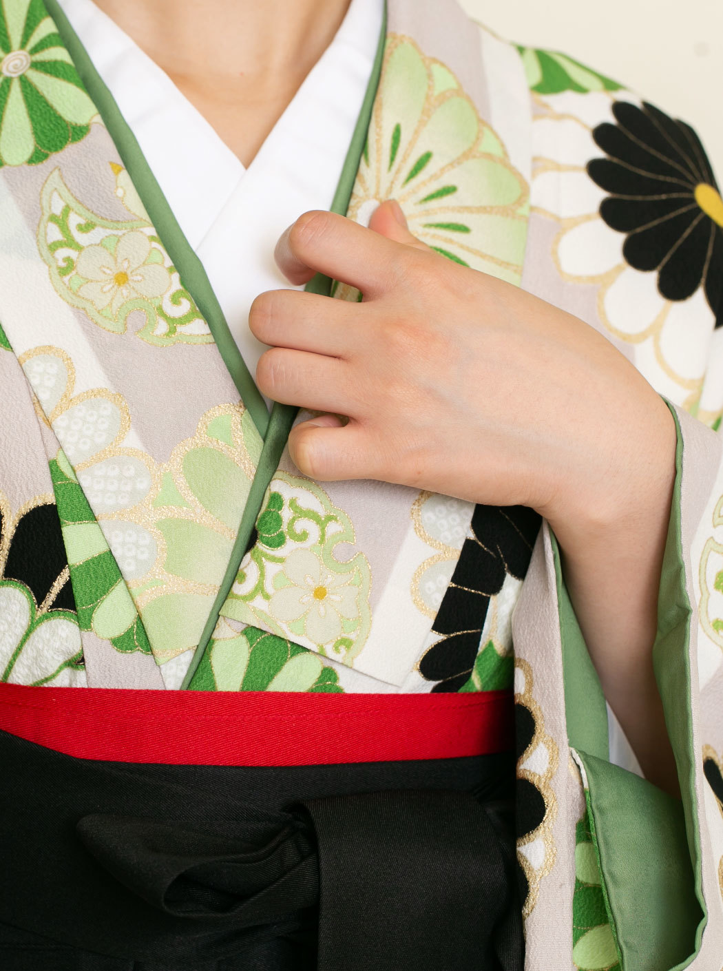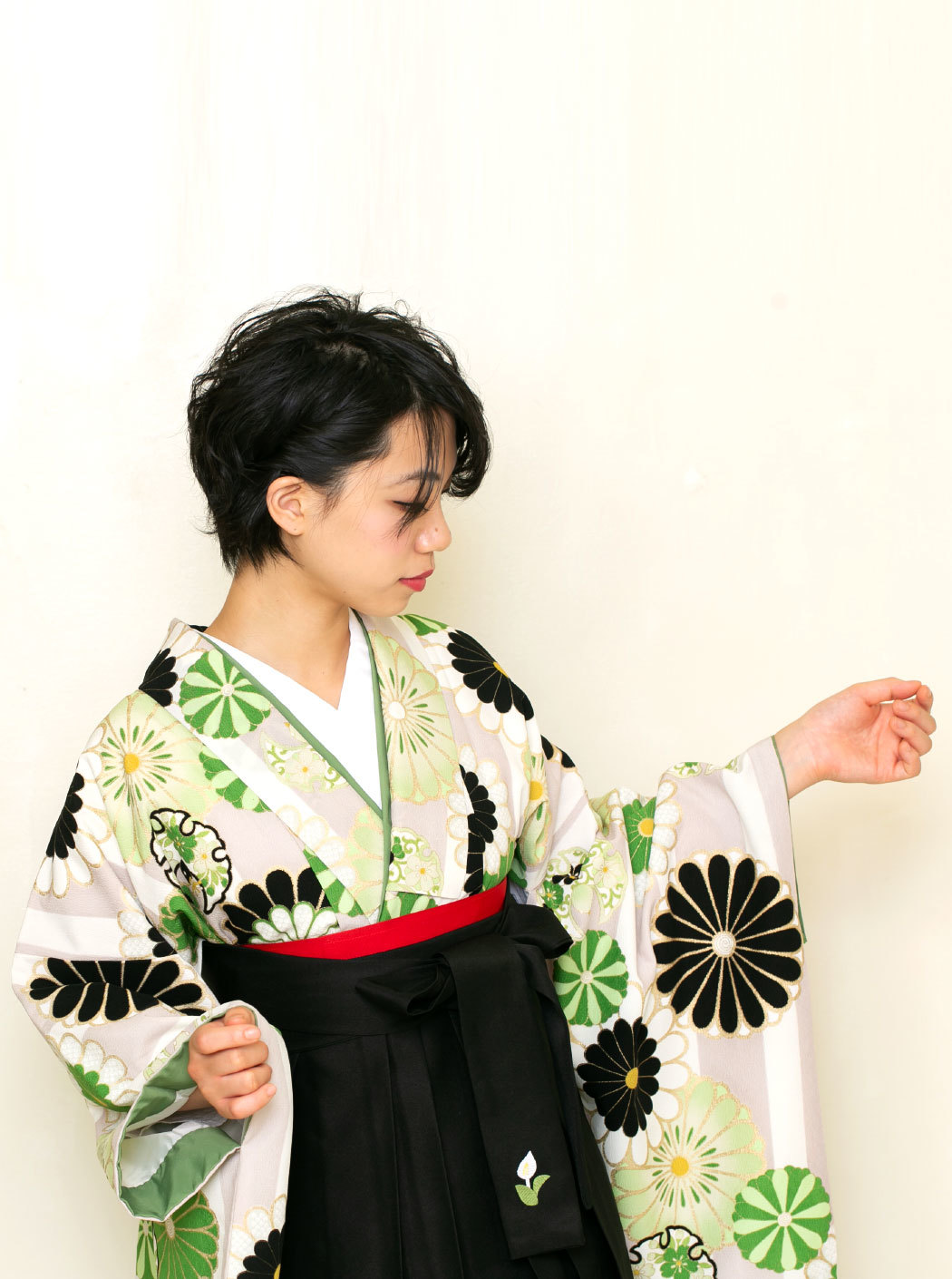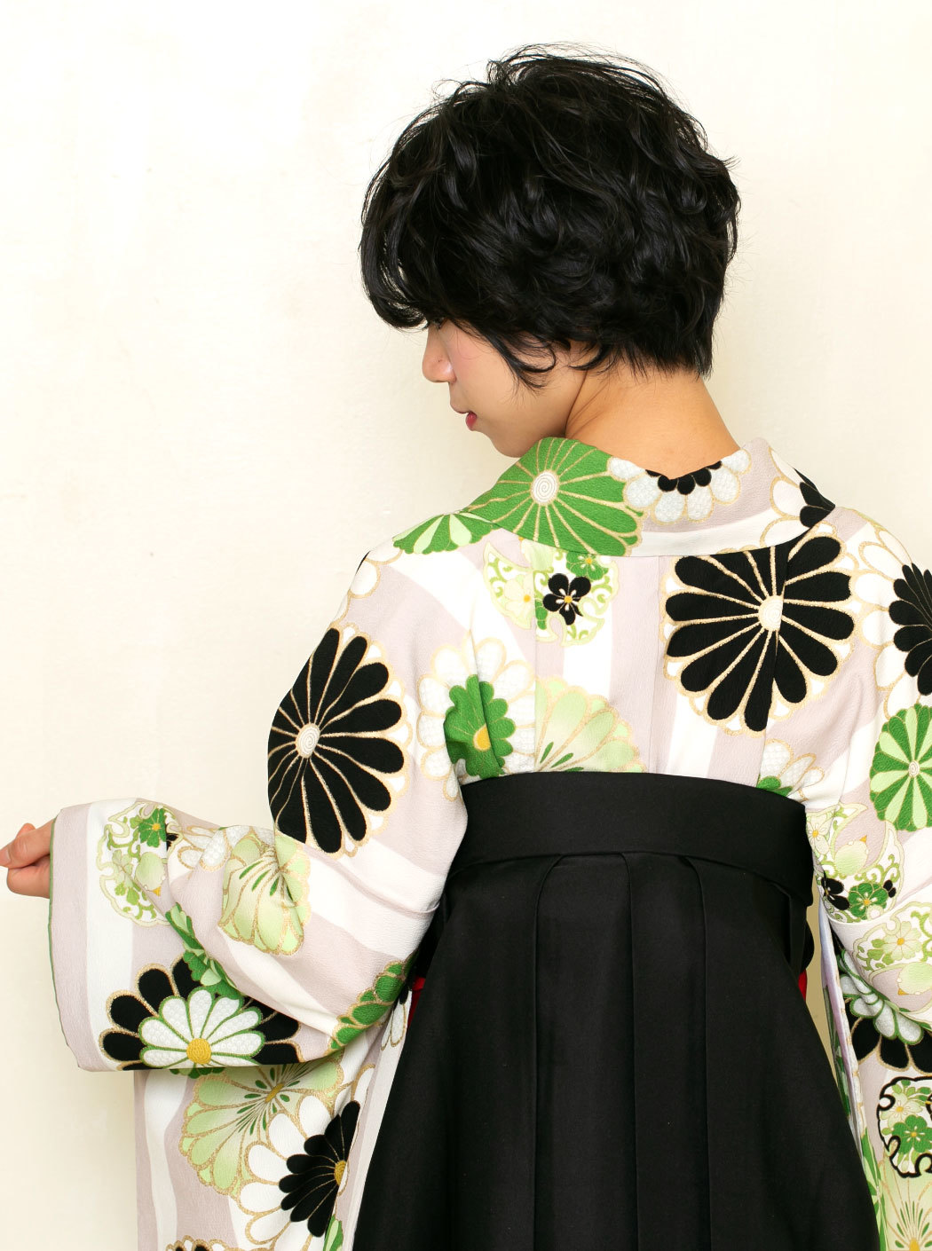 菊ストライプ/黄緑【JAPAN STYLE×中村里砂】(袴:2way袴/黒)
