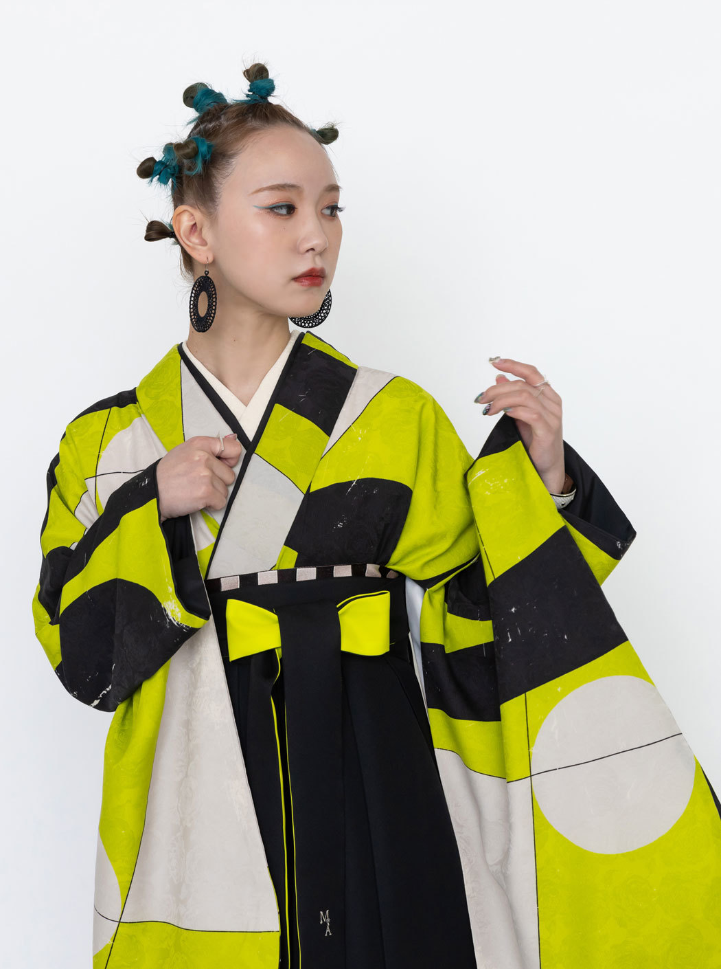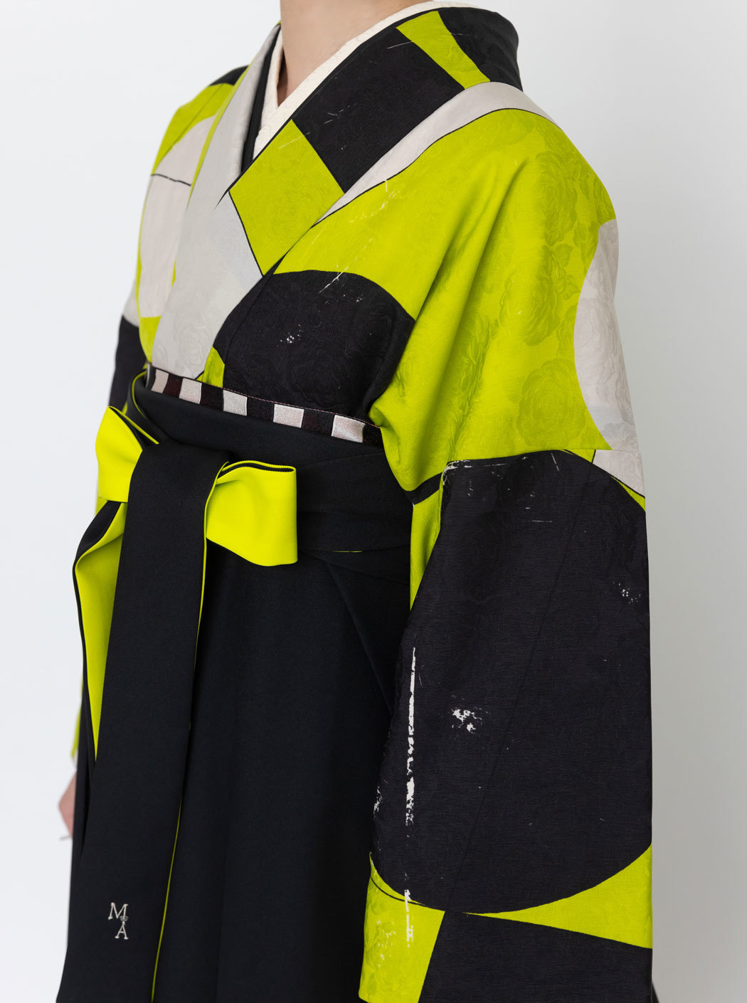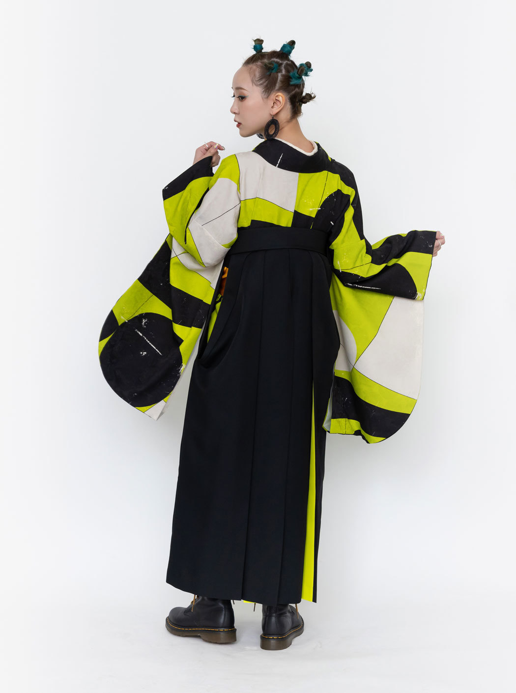 二つのスリット/ネオンイエロー(袴:アコーディオン/黒×黄)