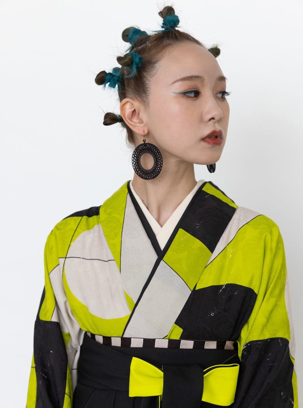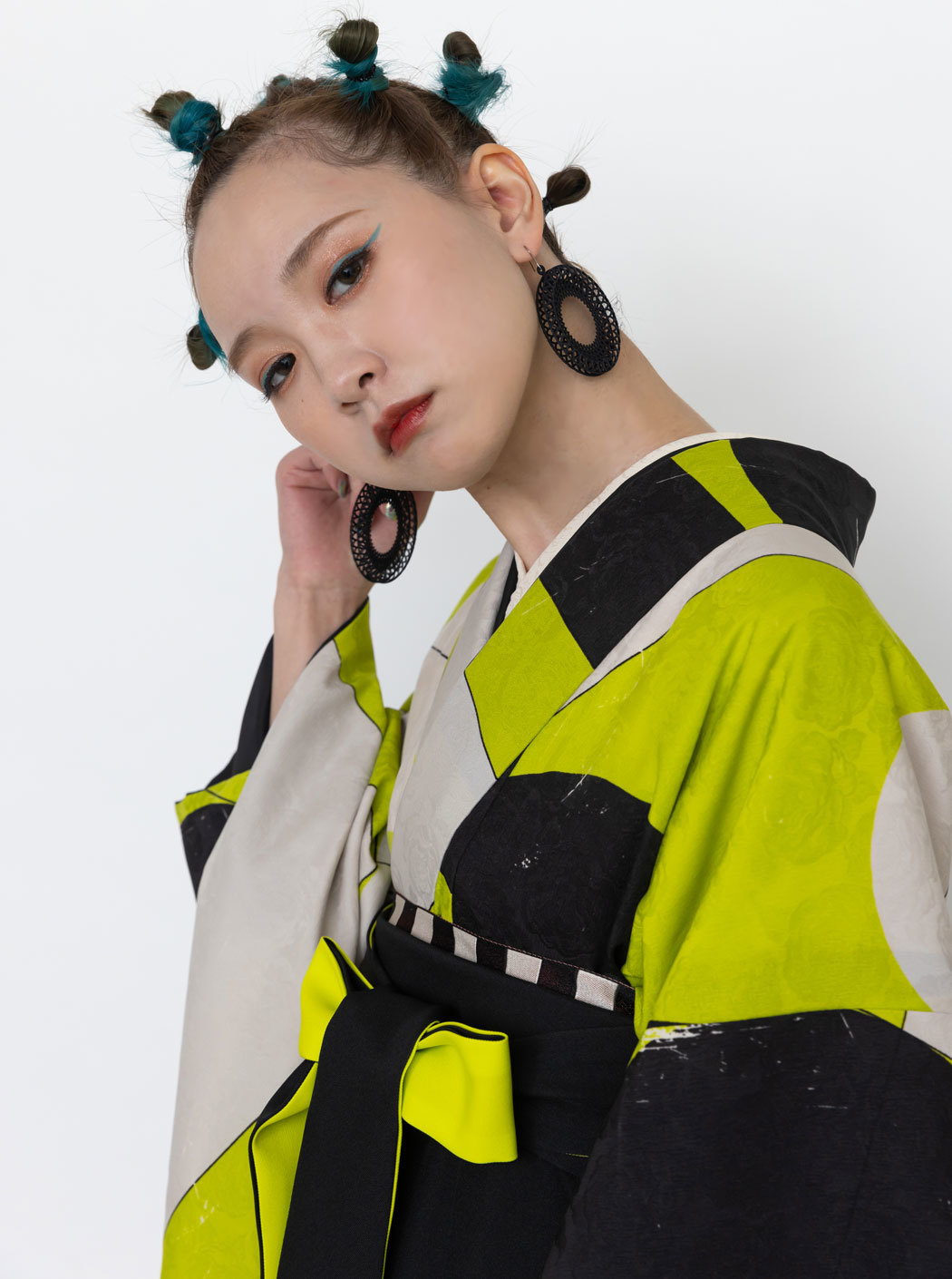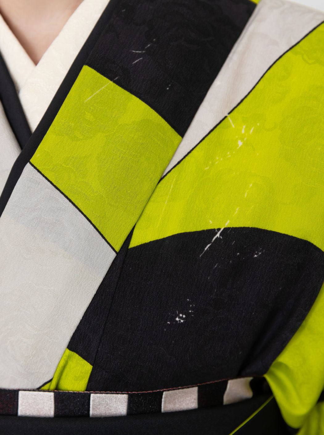 二つのスリット/ネオンイエロー(袴:アコーディオン/黒×黄)