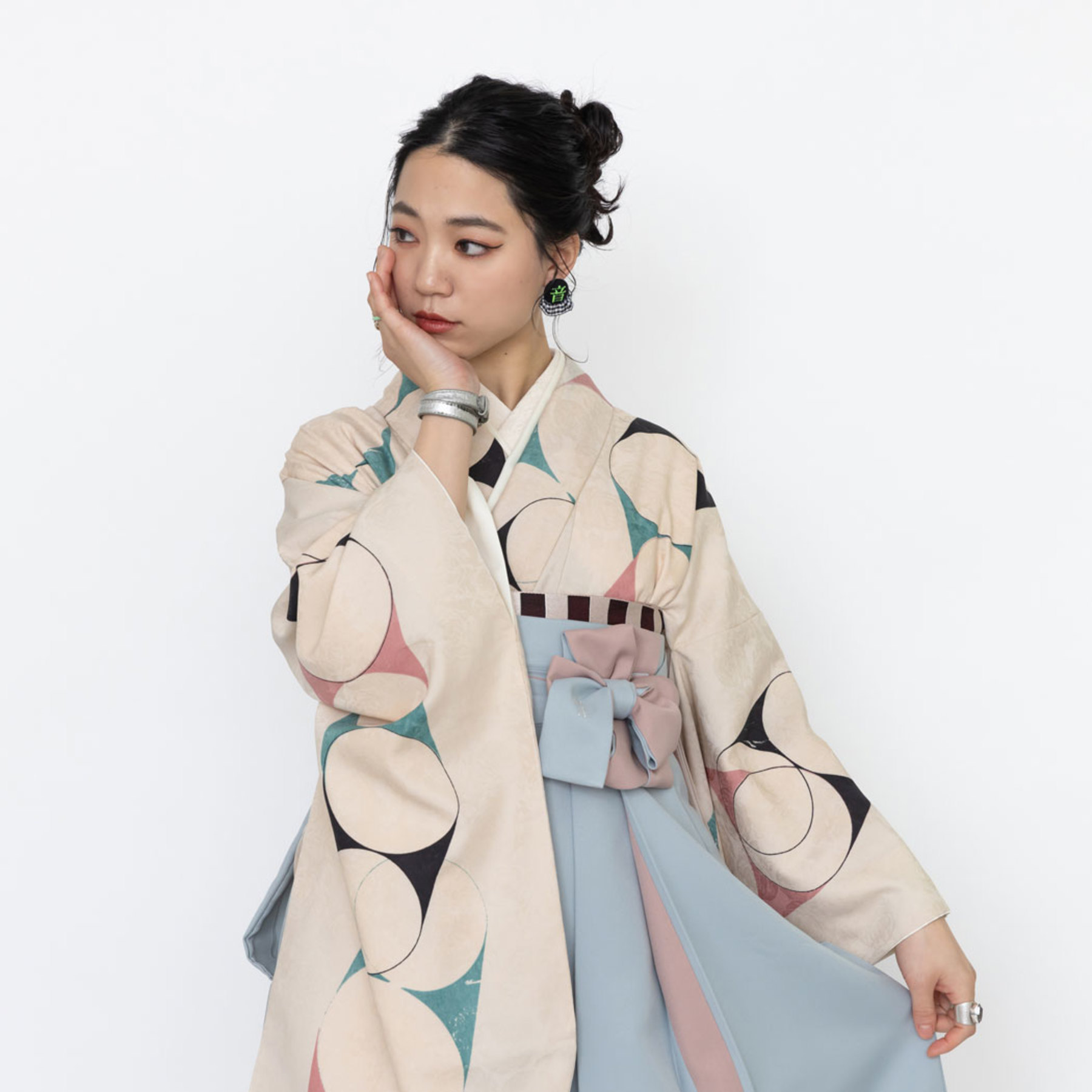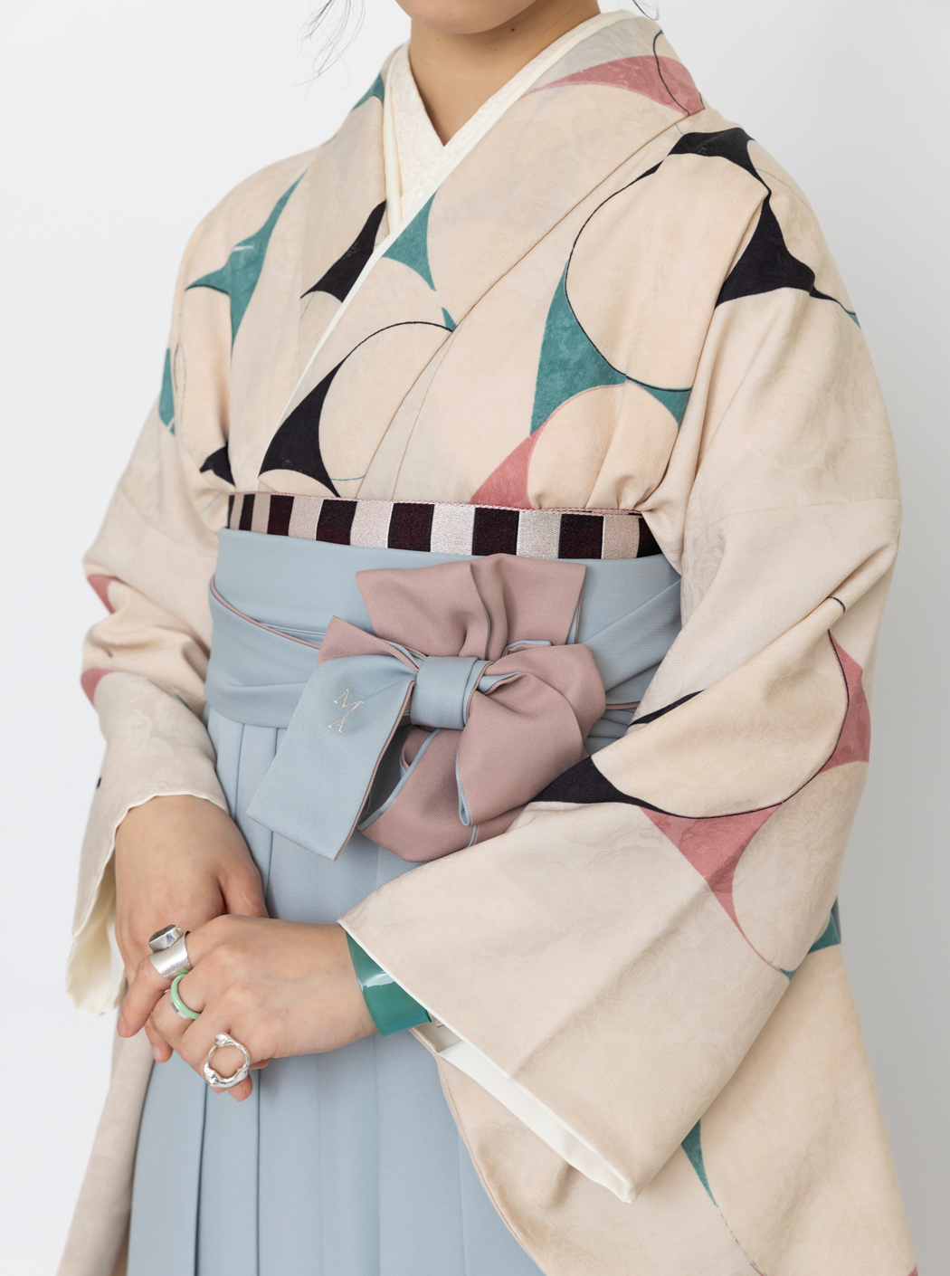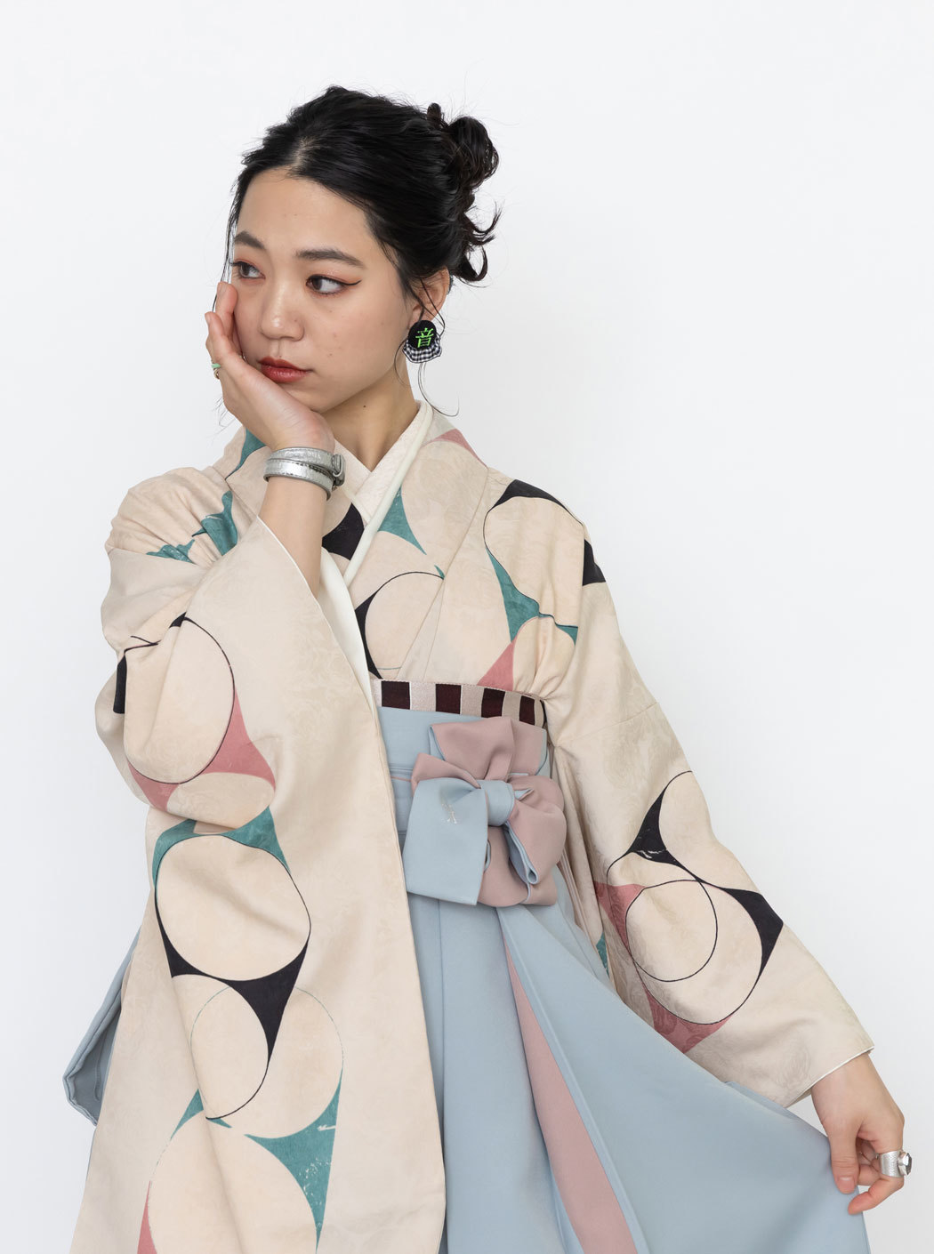 ビバップ/アイボリー(袴:アコーディオン/グレー×ピンク)