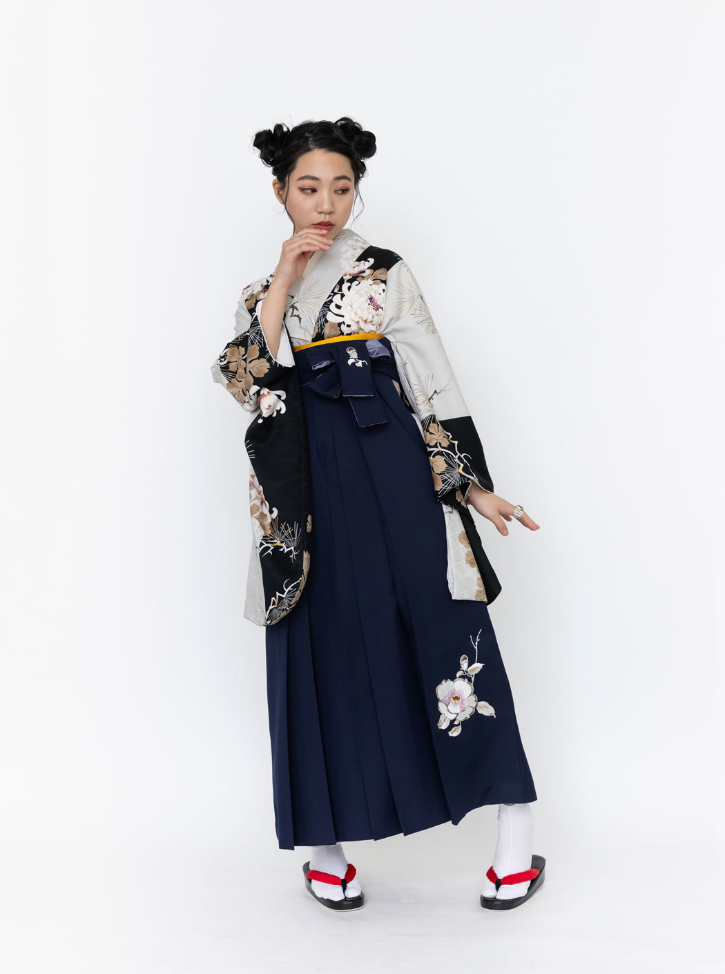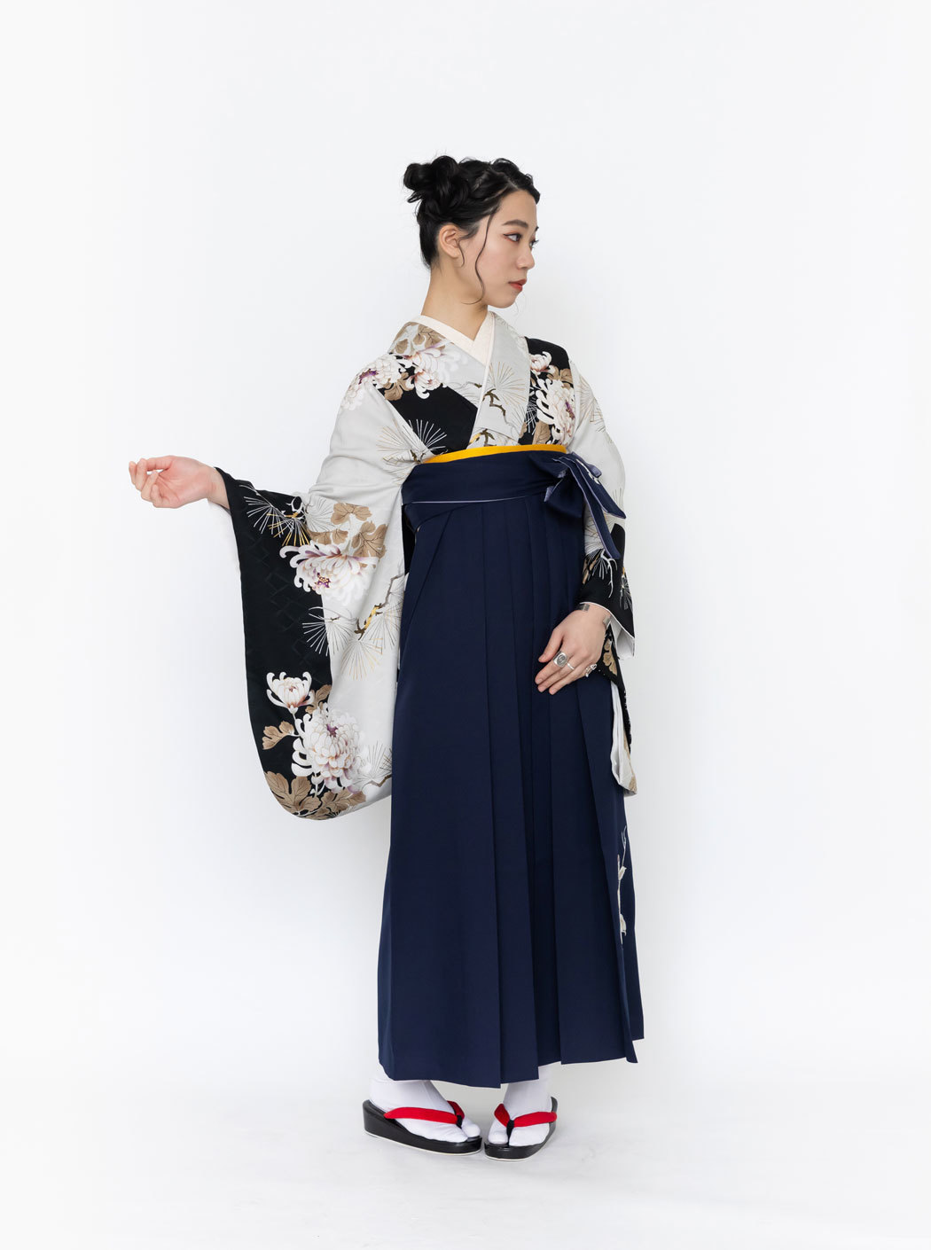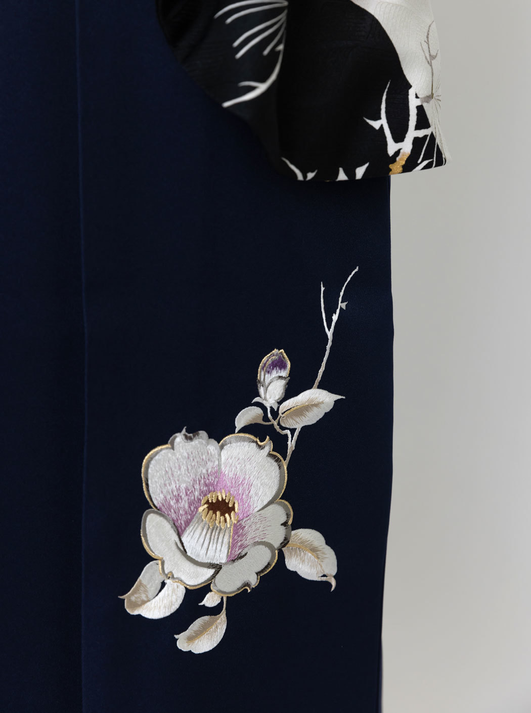 昼夜菊松/黒【そしてゆめ】(袴:椿 刺繍/紺)