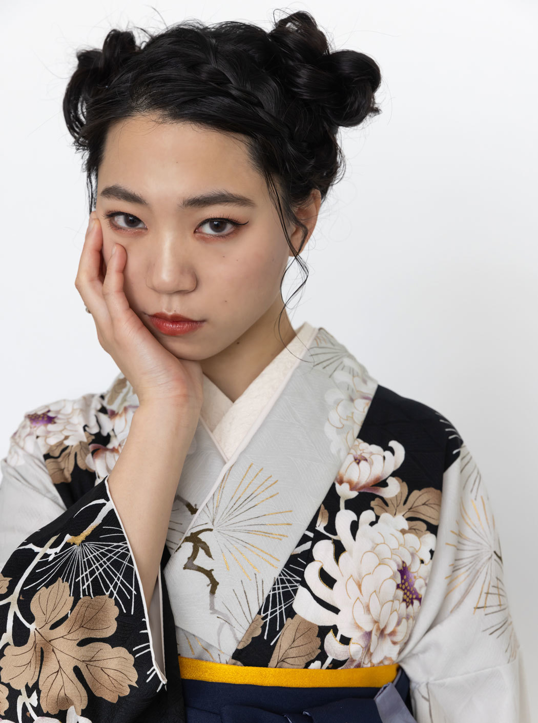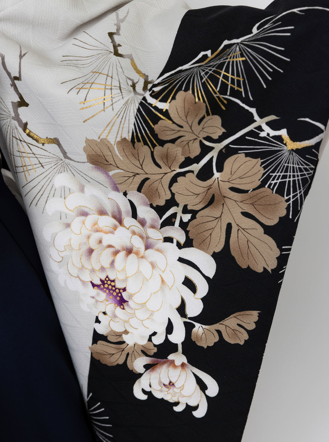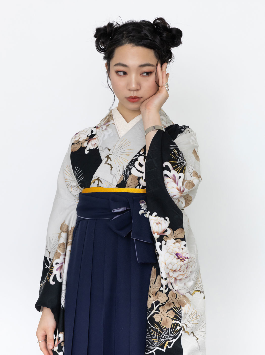 昼夜菊松/黒【そしてゆめ】(袴:椿 刺繍/紺)