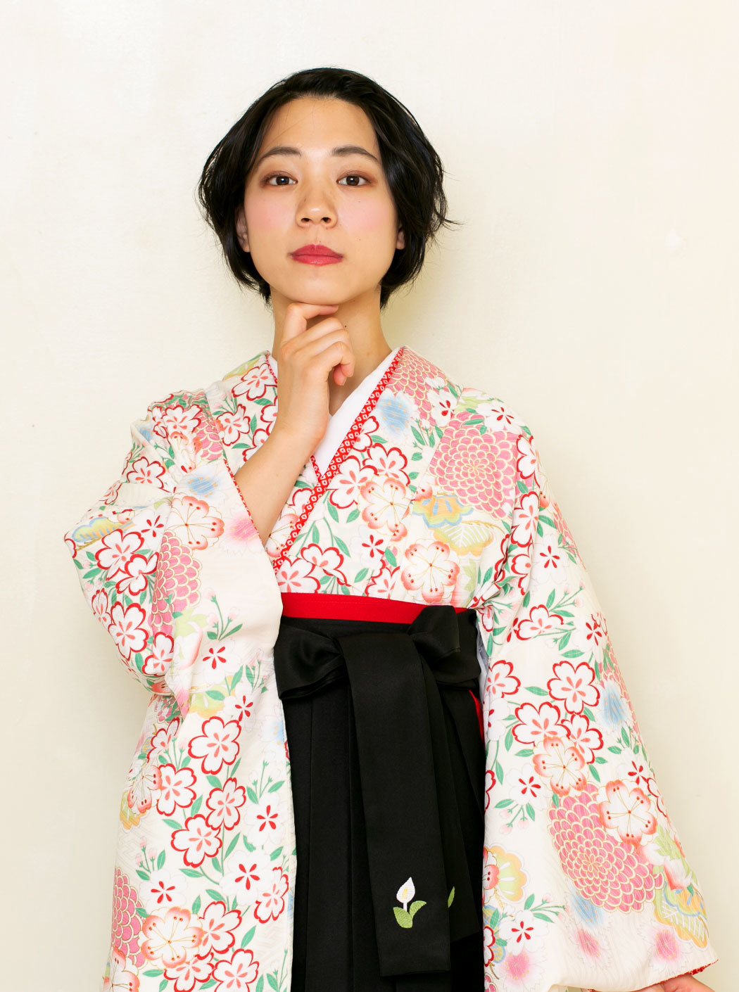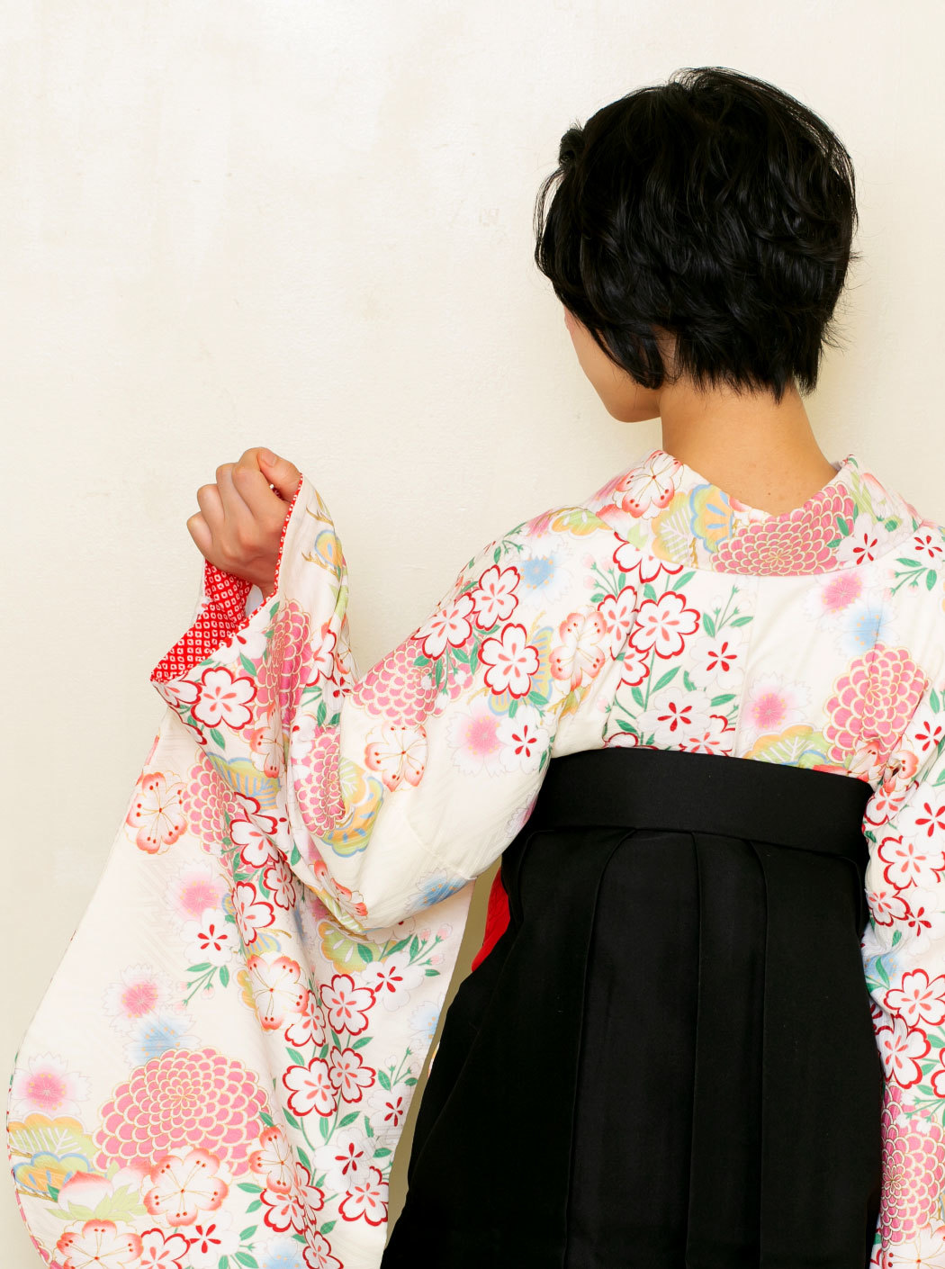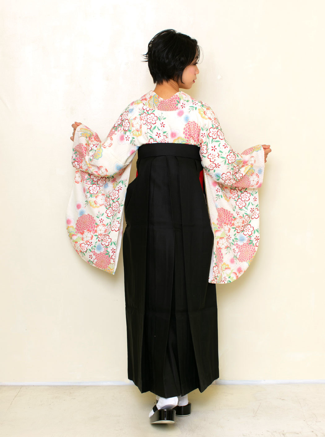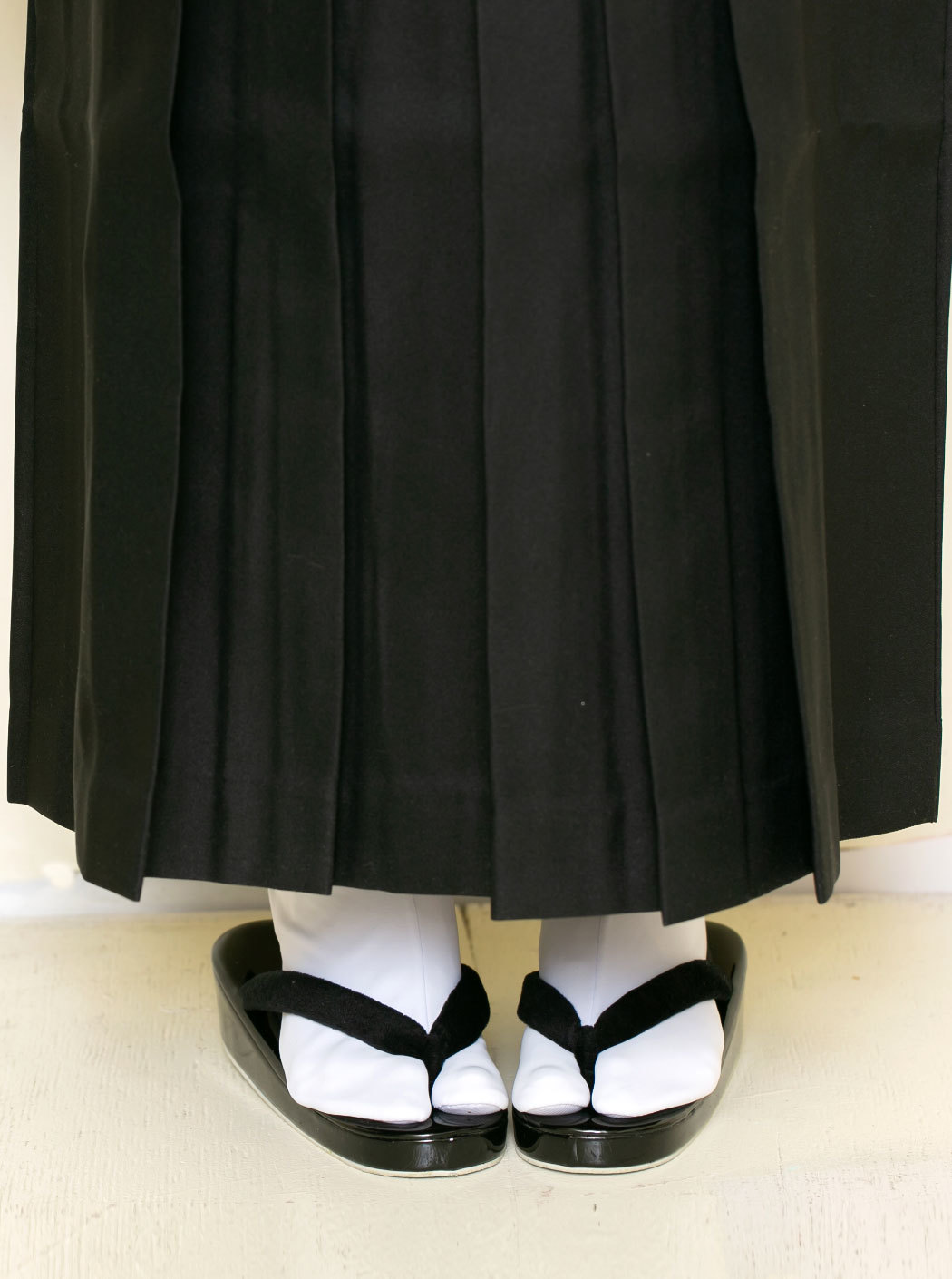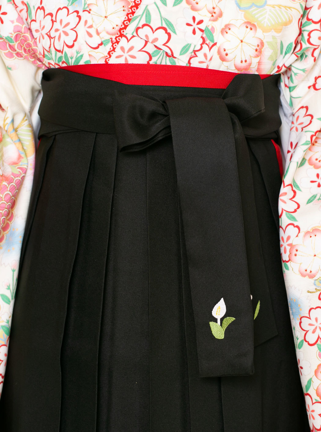 合わせた袴は、シックな黒の無地。