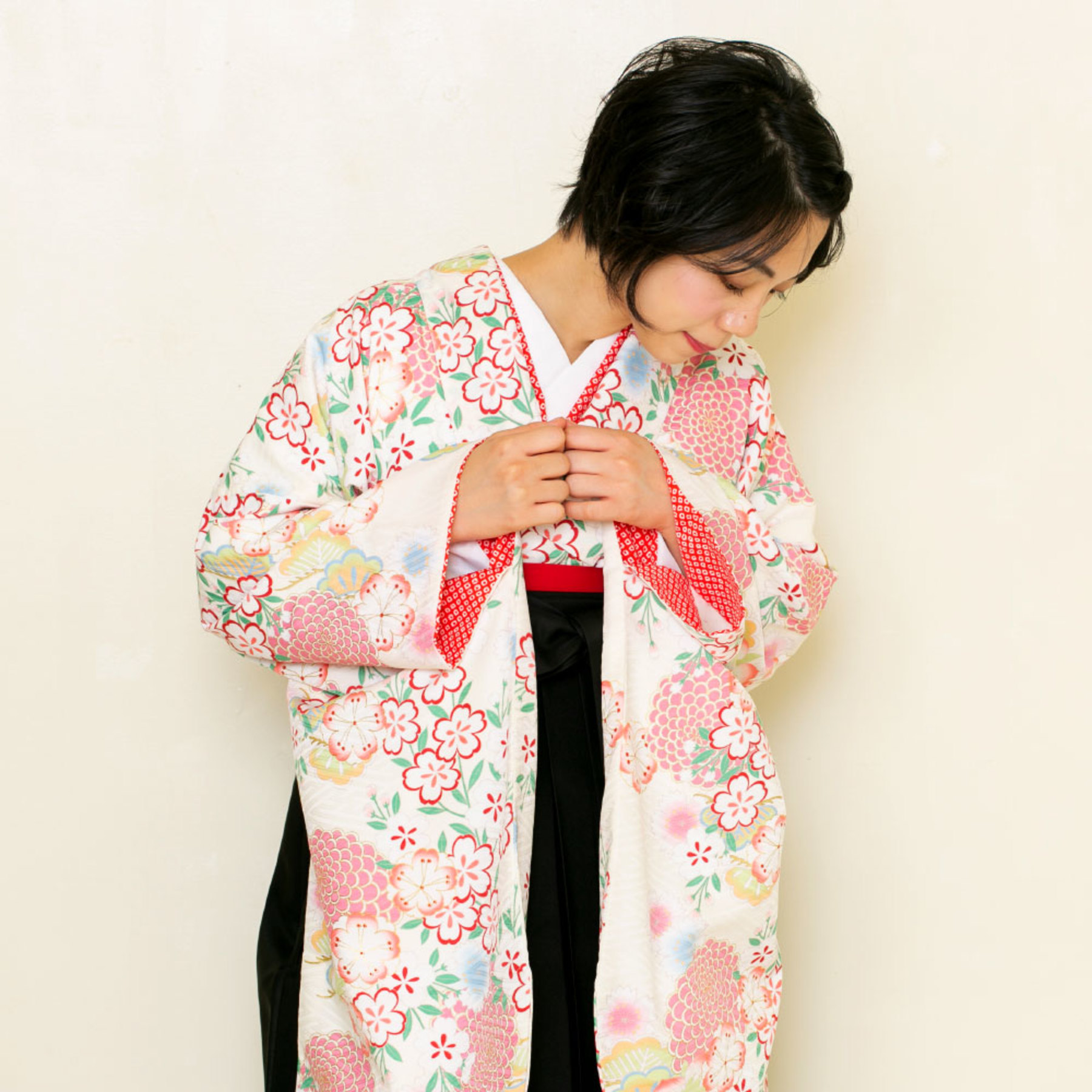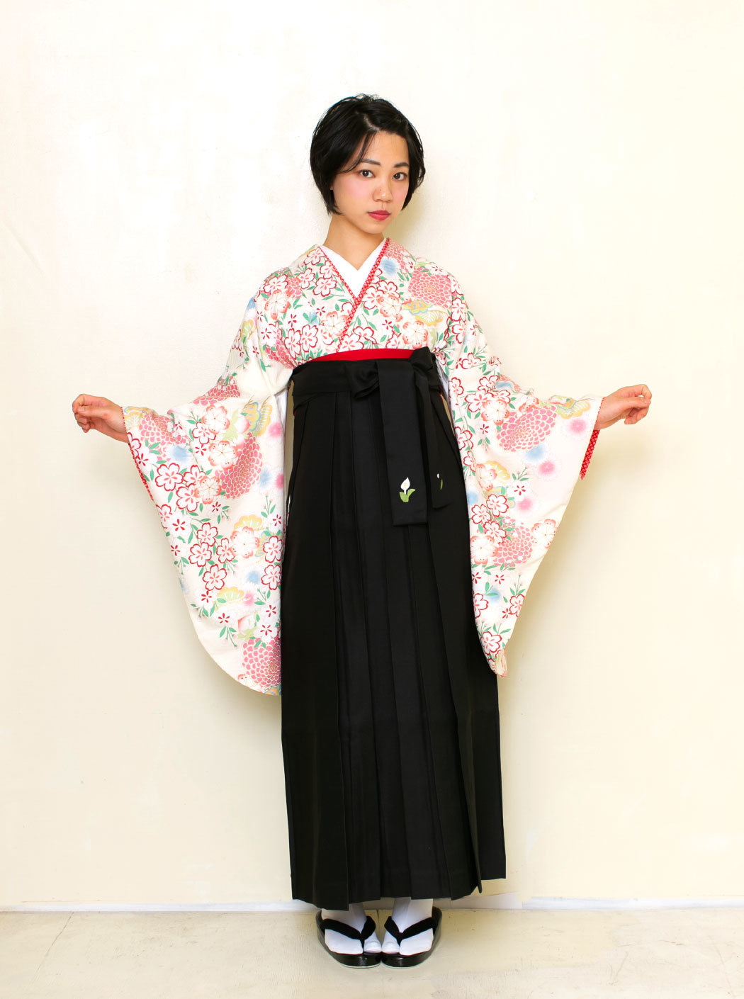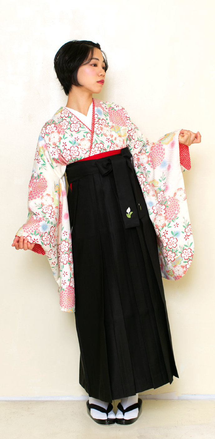 菊に桜/白【九重】(袴:2way袴/黒)