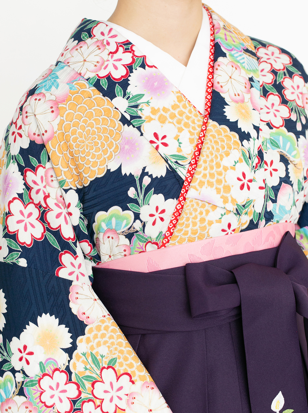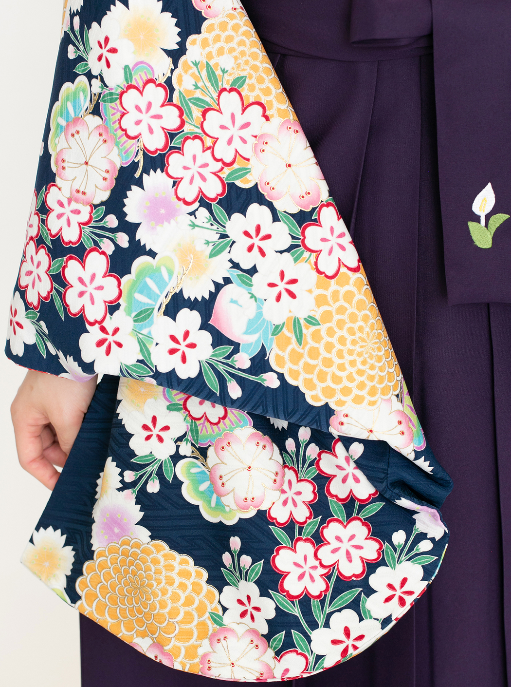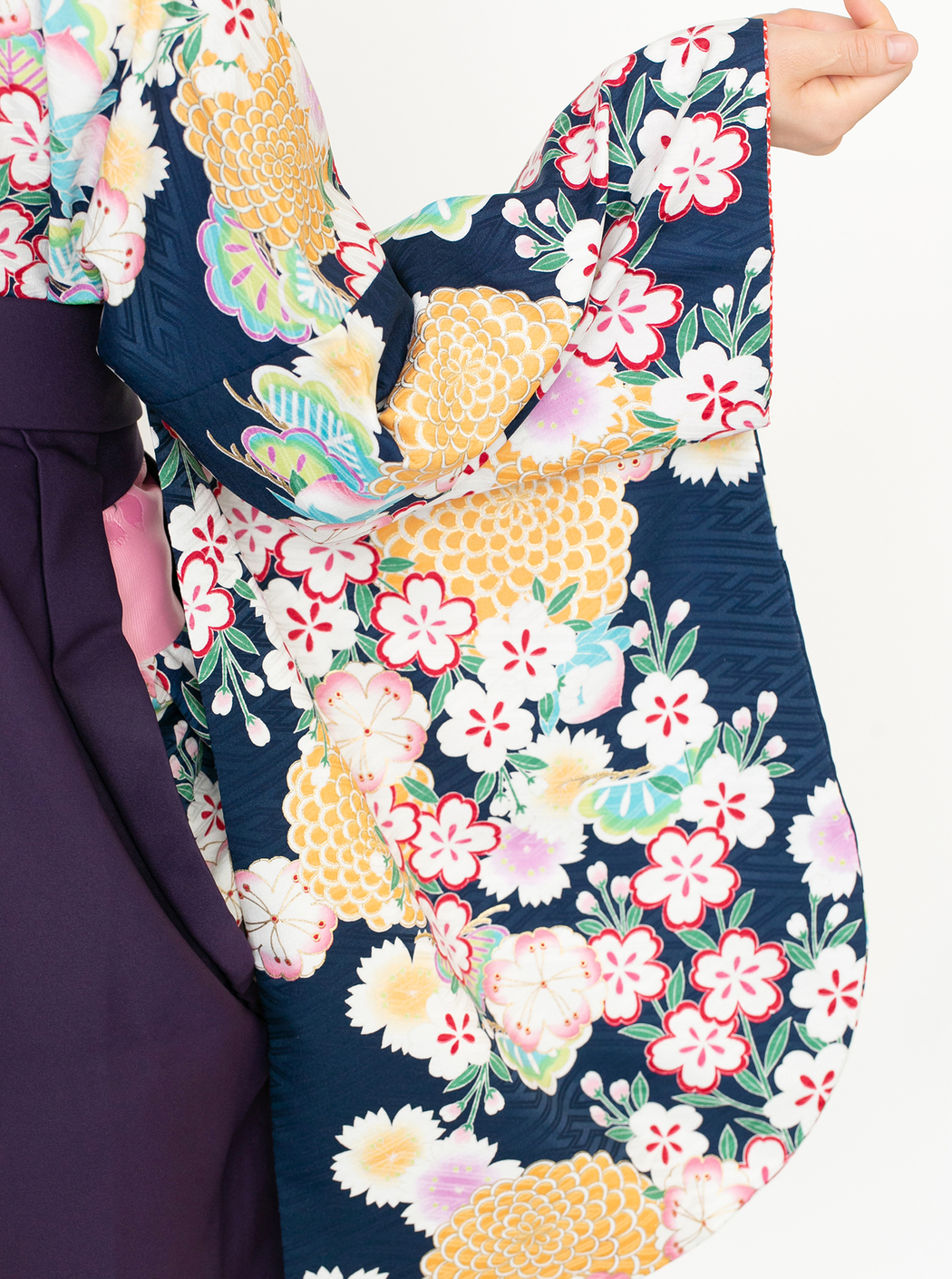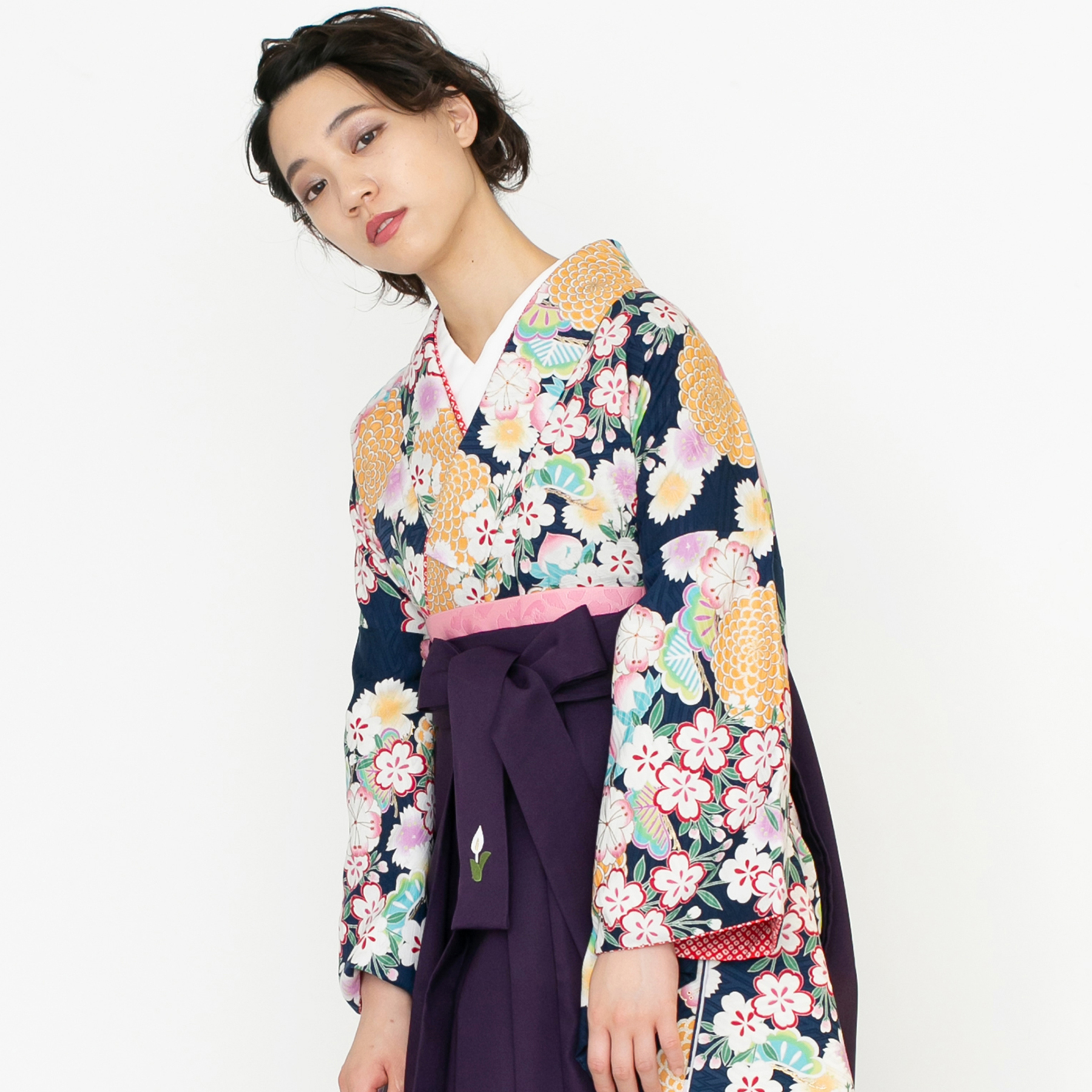 菊に桜/紺【九重】(袴:2way袴/紫)