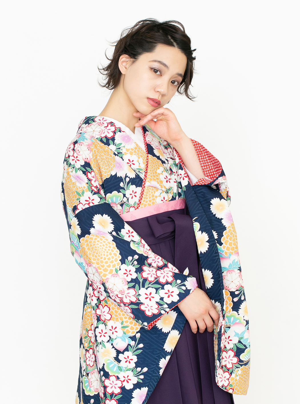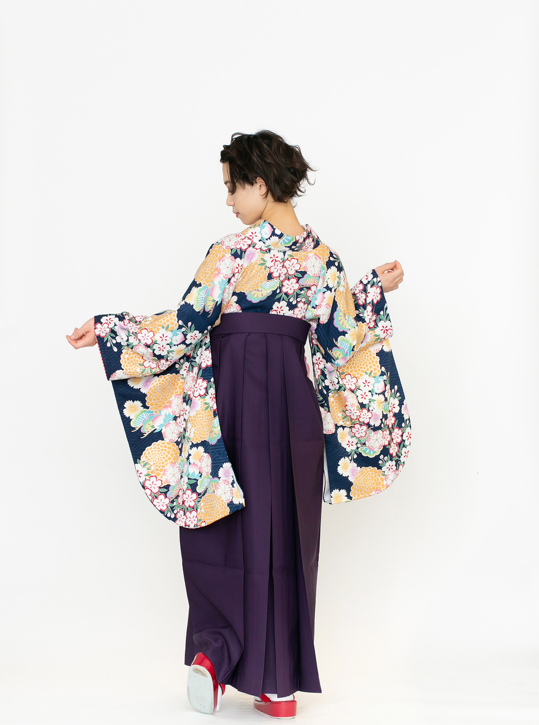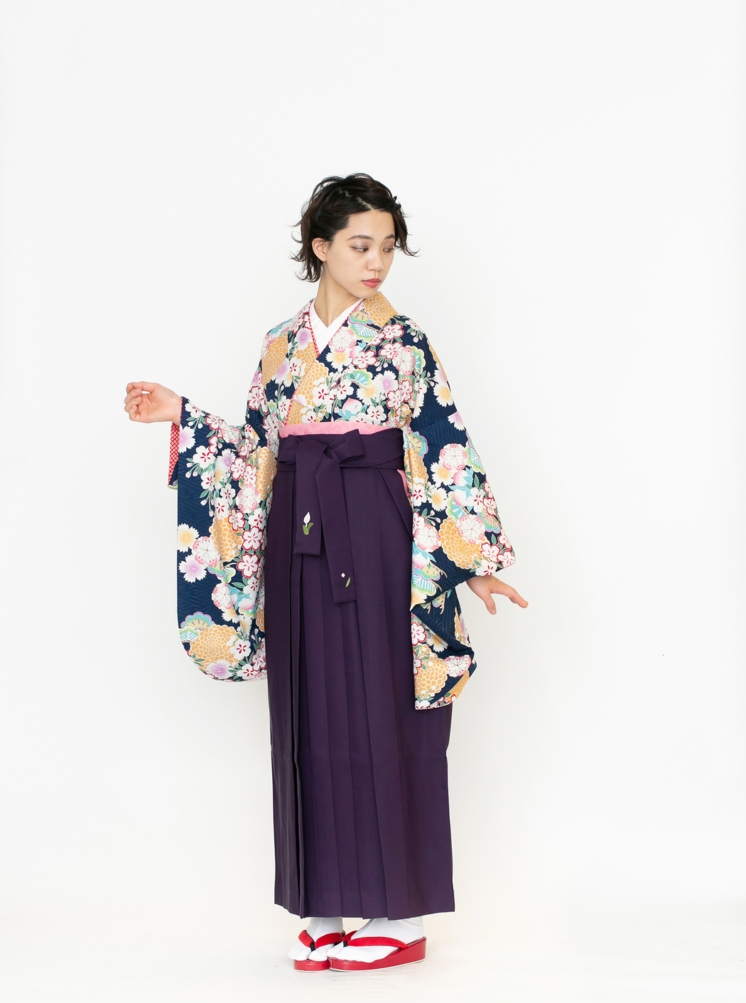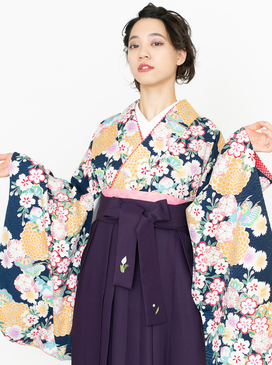 菊に桜/紺【九重】(袴:2way袴/紫)