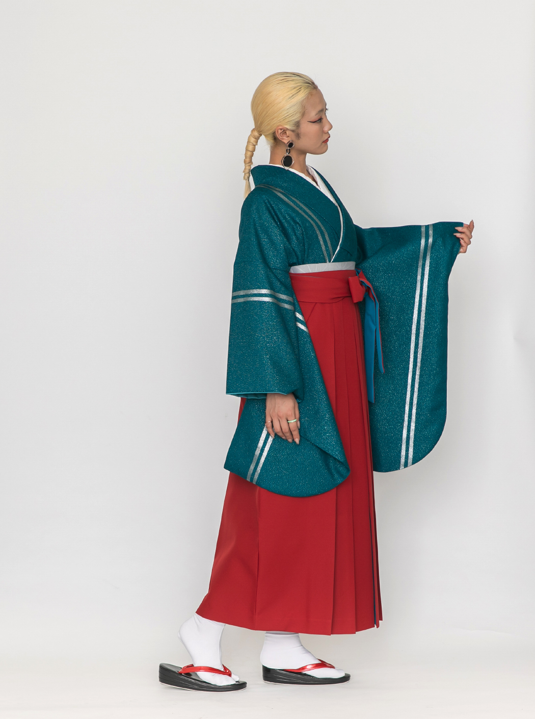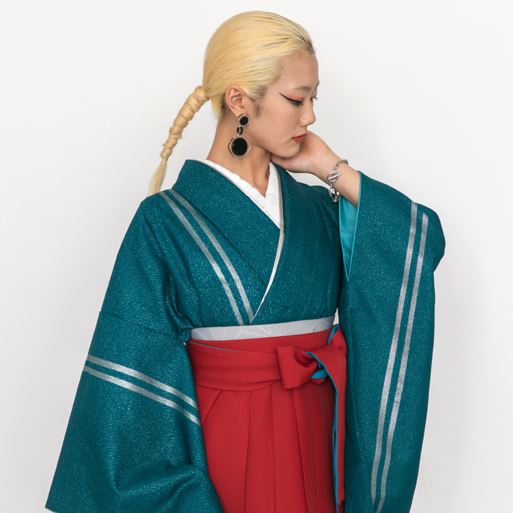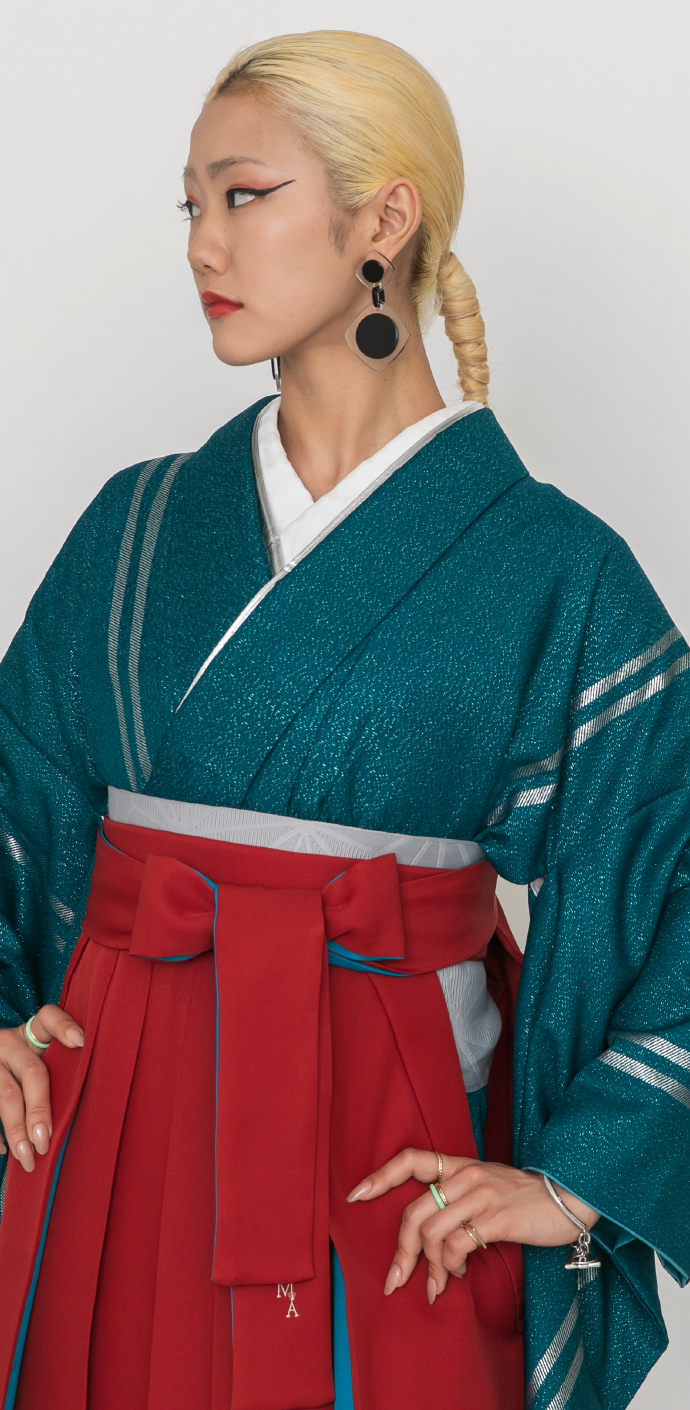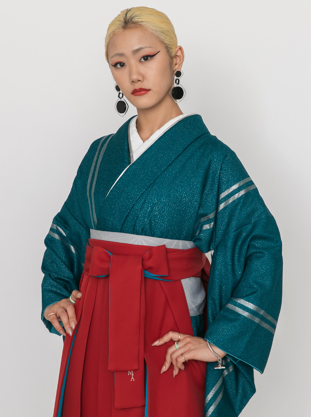 【MAselect】2LINE/ターコイズ×シルバー(袴:アコーディオン/赤×青)