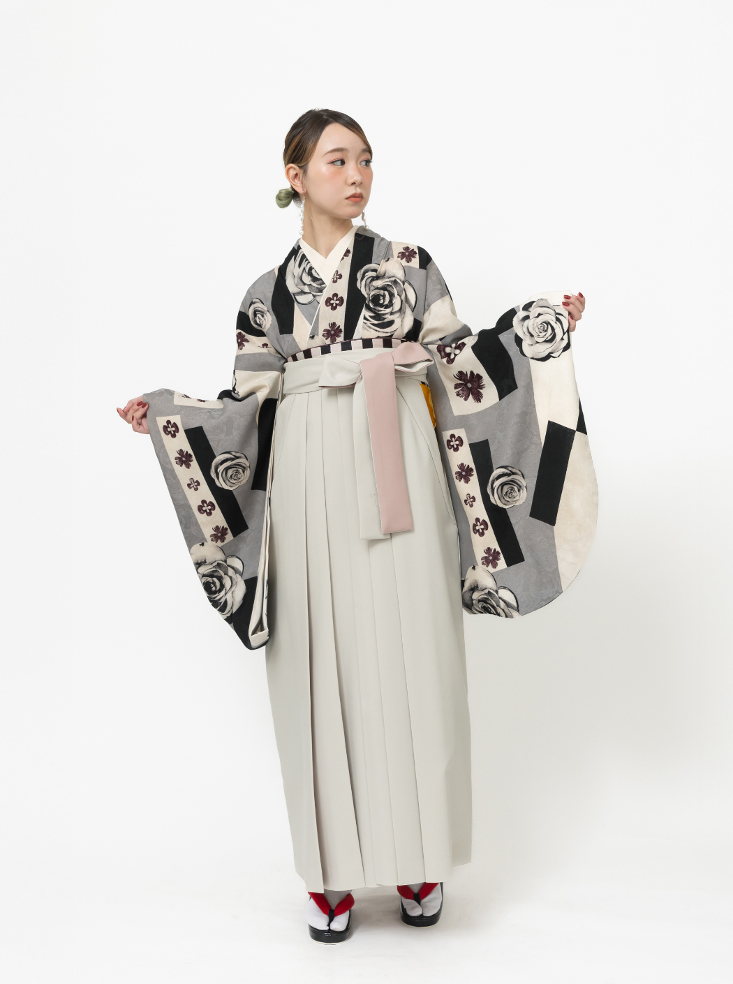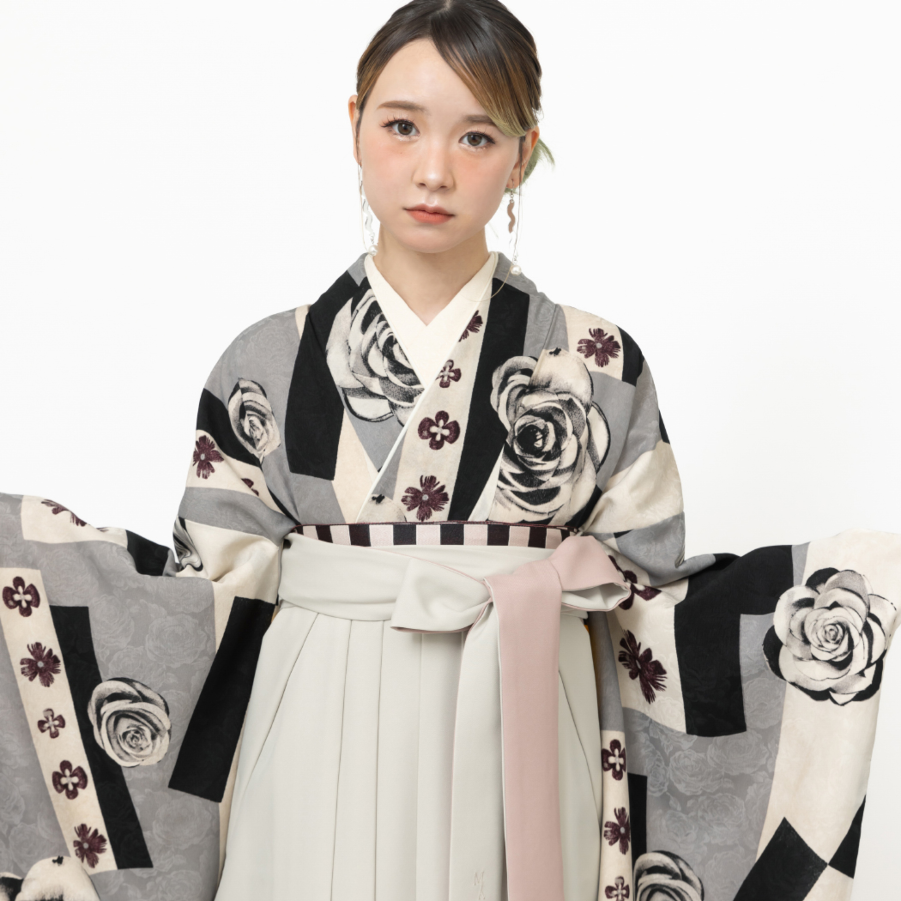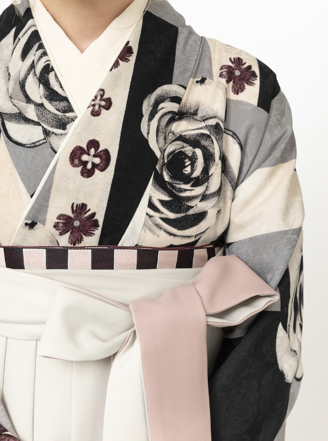 薔薇の構築/モノクロ(袴:アコーディオン/グレージュ×薄ピンク)