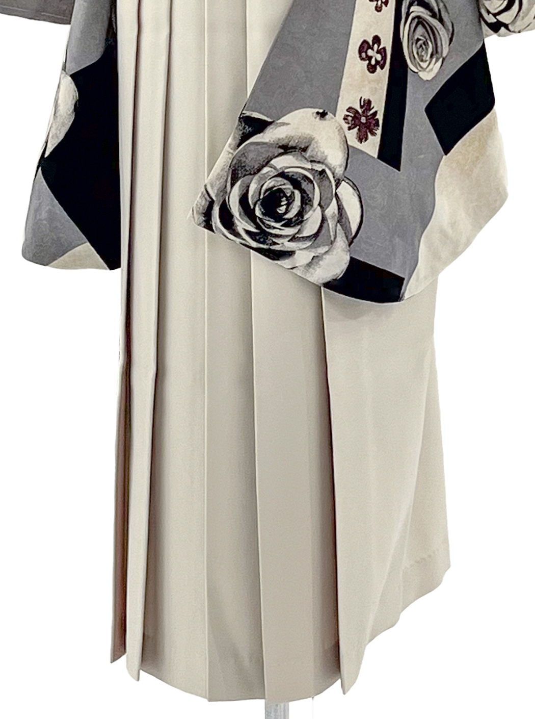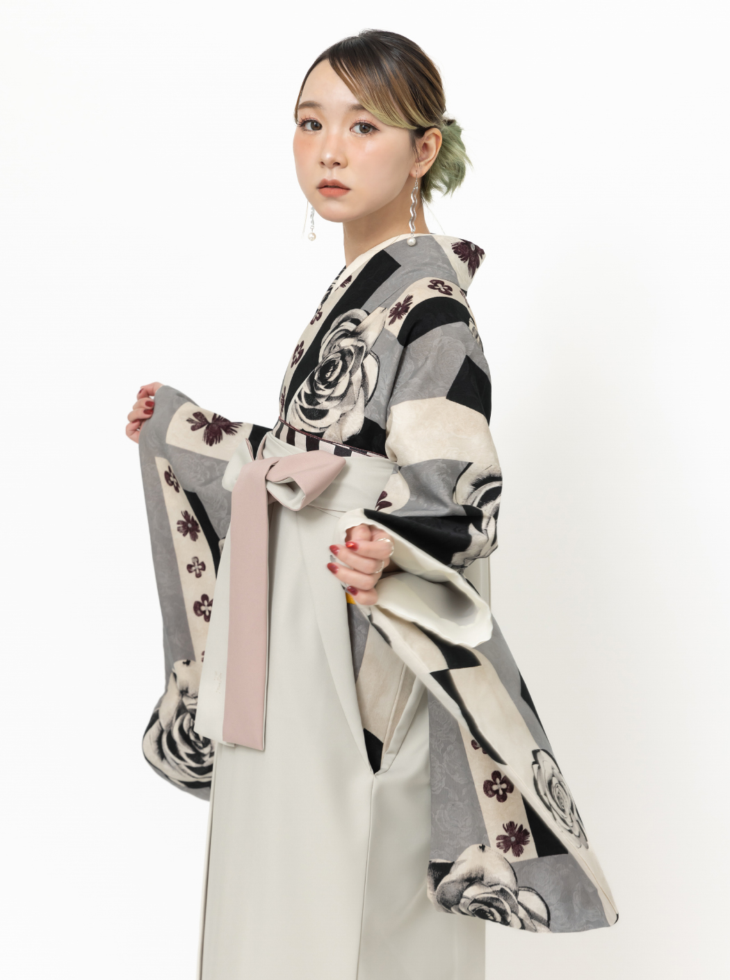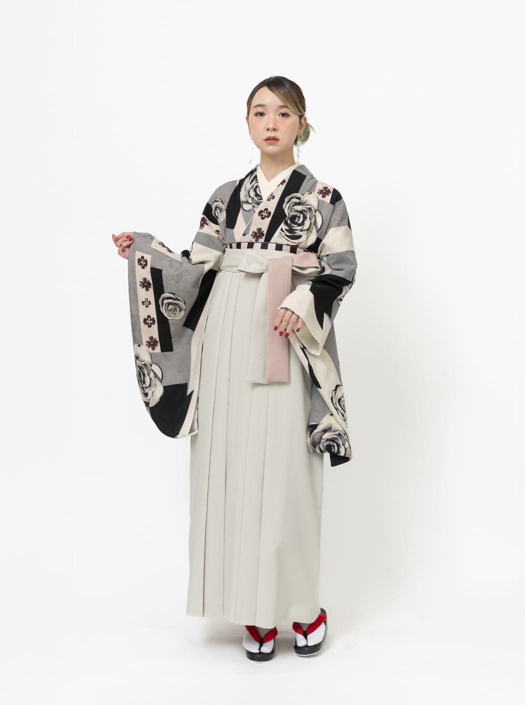 薔薇の構築/モノクロ(袴:アコーディオン/グレージュ×薄ピンク)