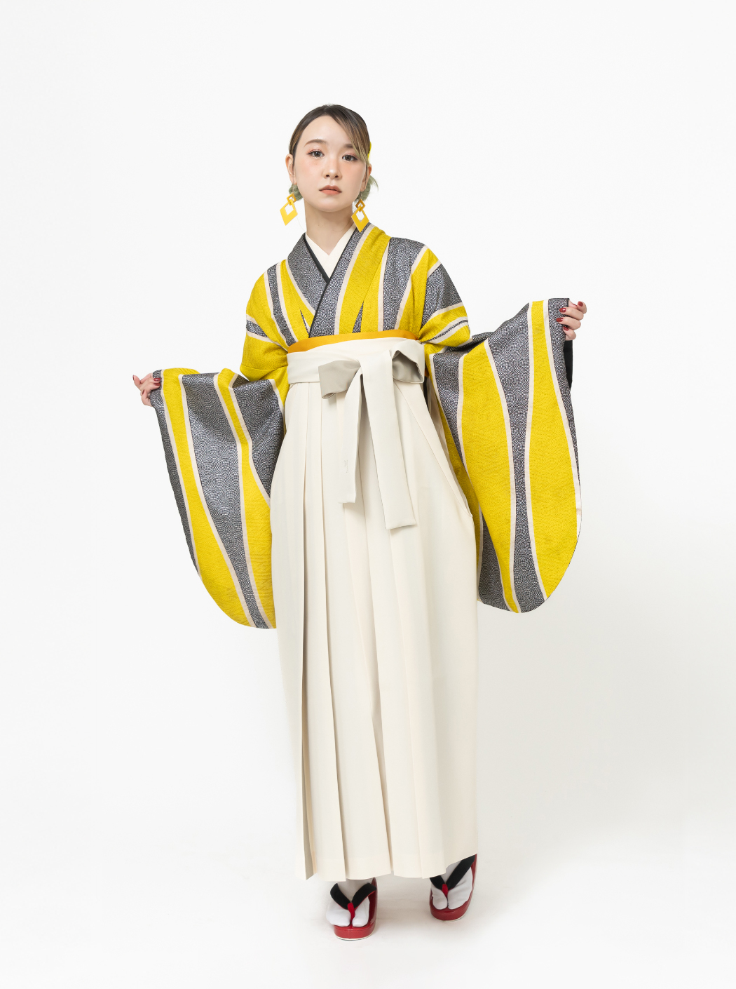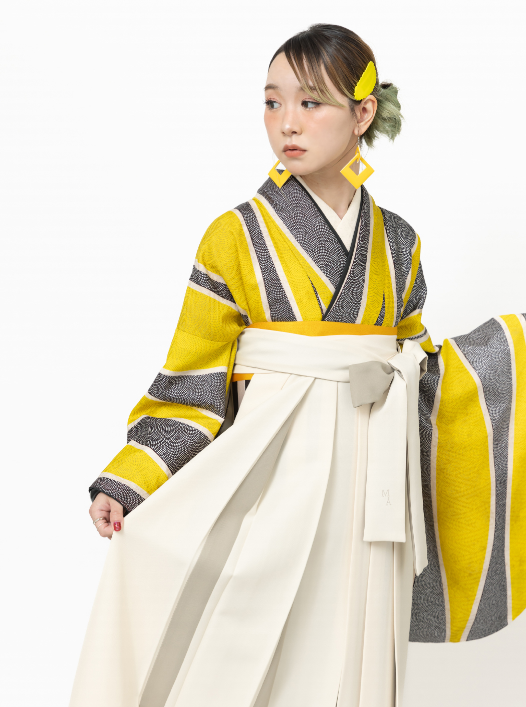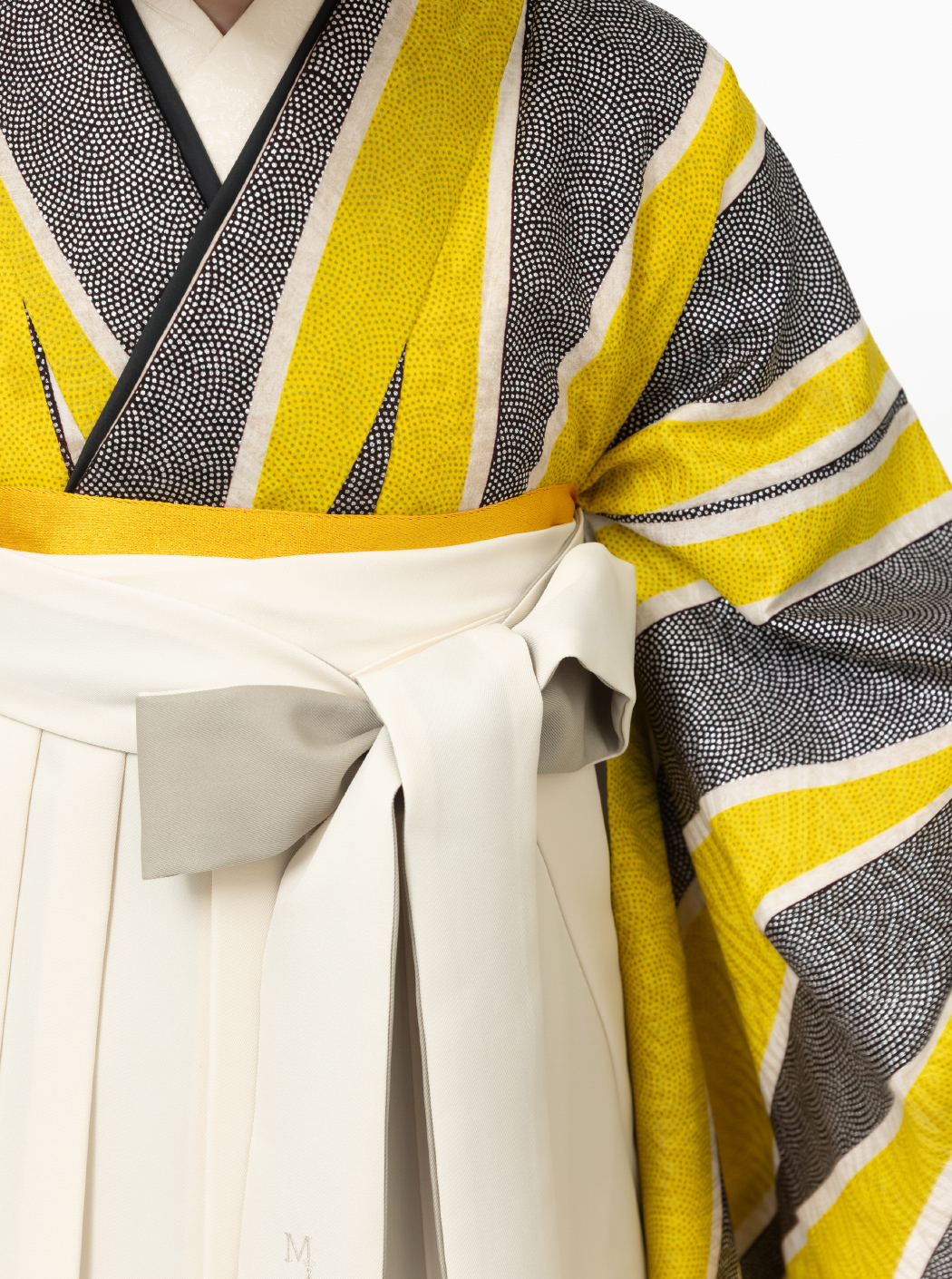 パラレル立涌/黄色(袴:アコーディオン/クリーム×ベージュ)