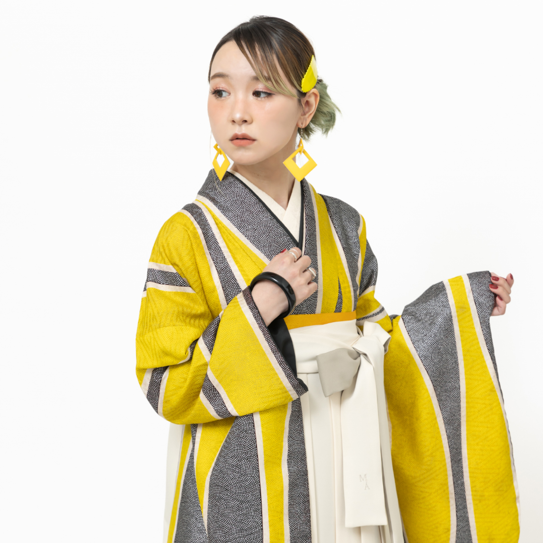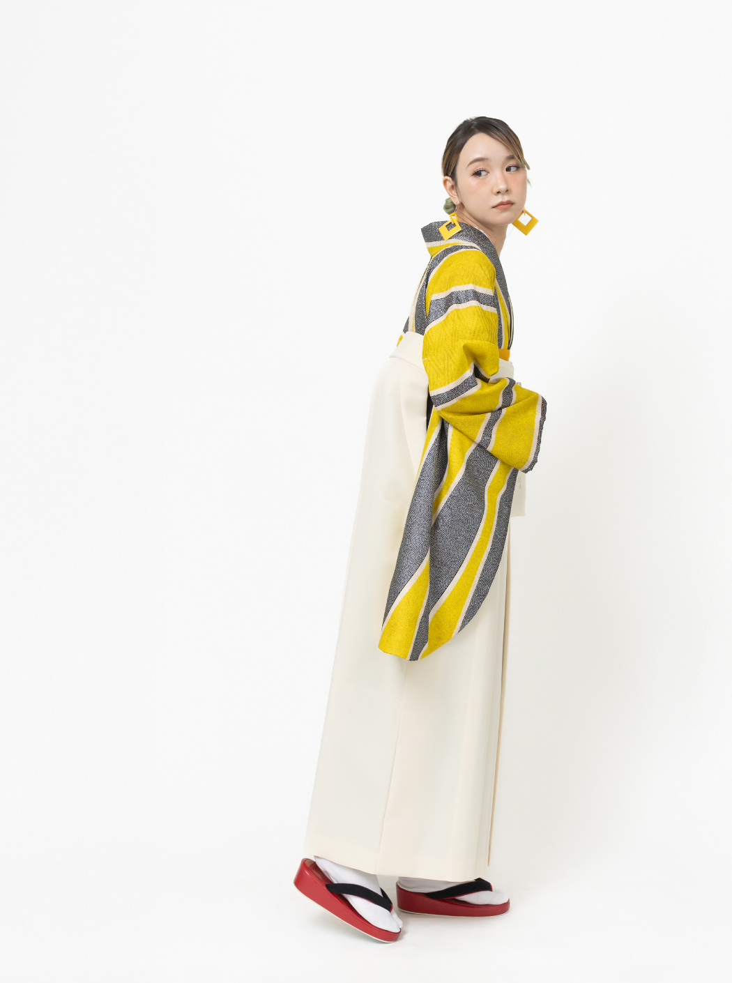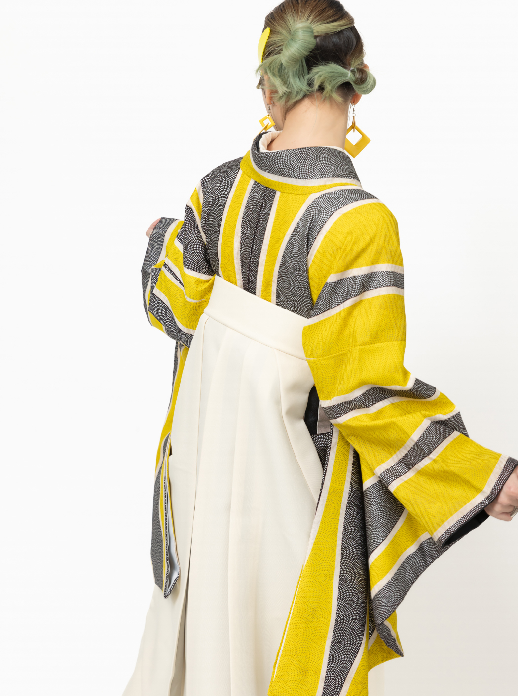 パラレル立涌/黄色(袴:アコーディオン/クリーム×ベージュ)