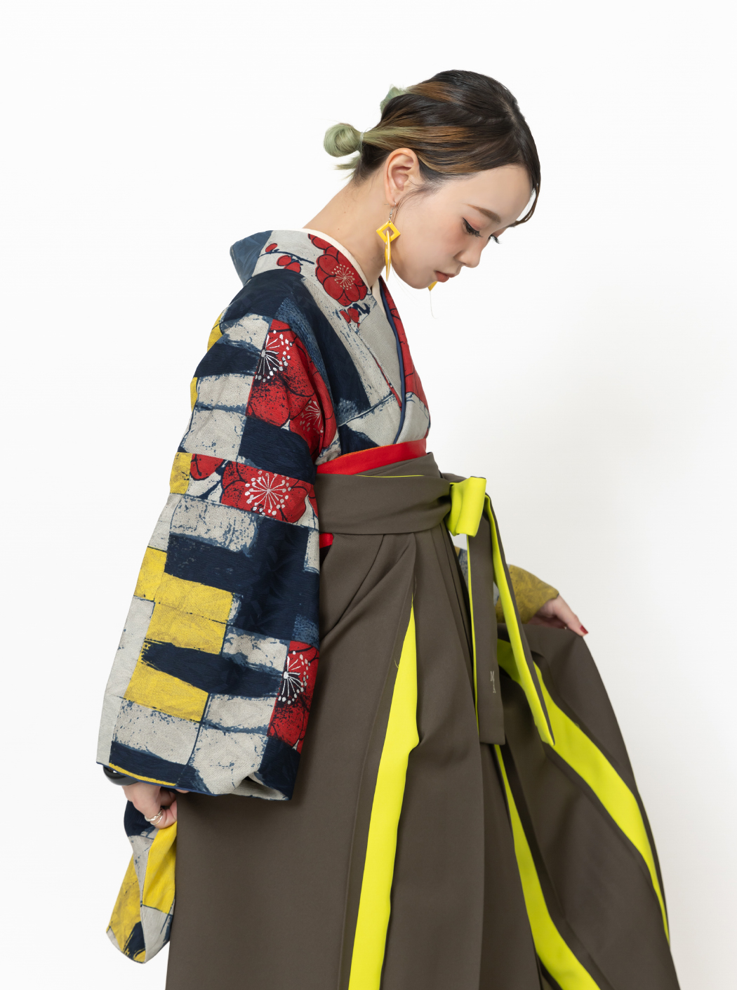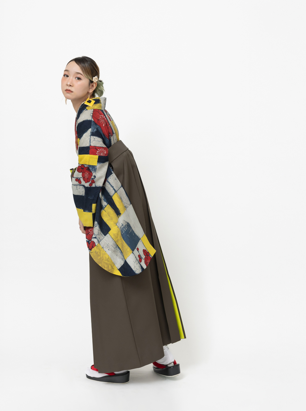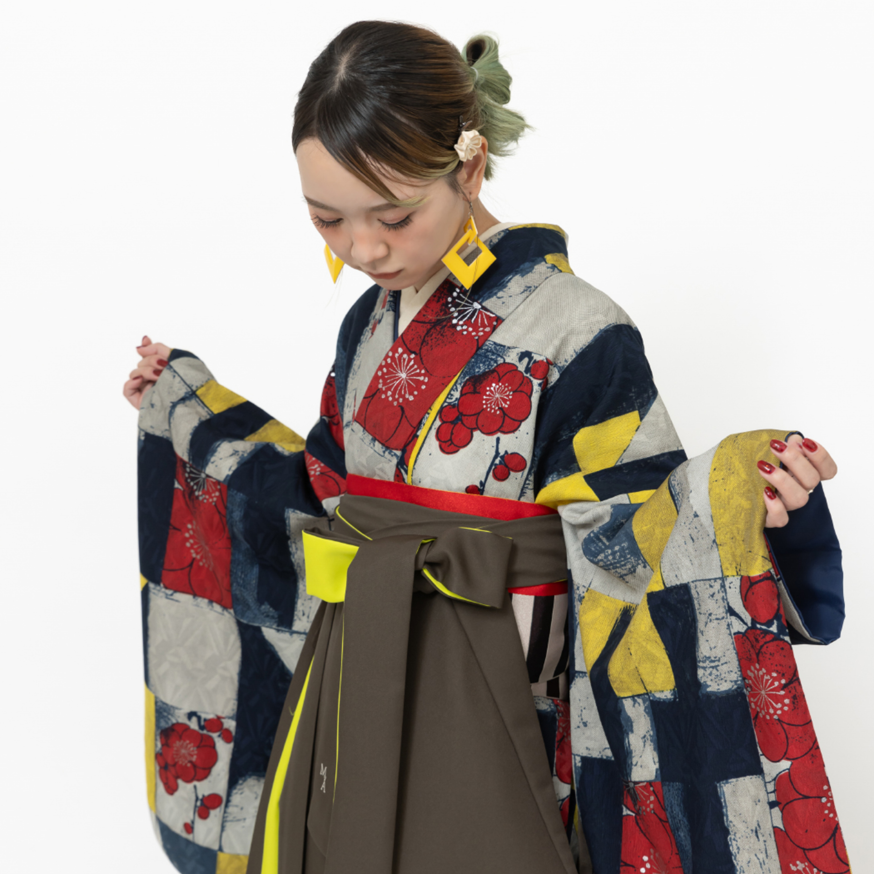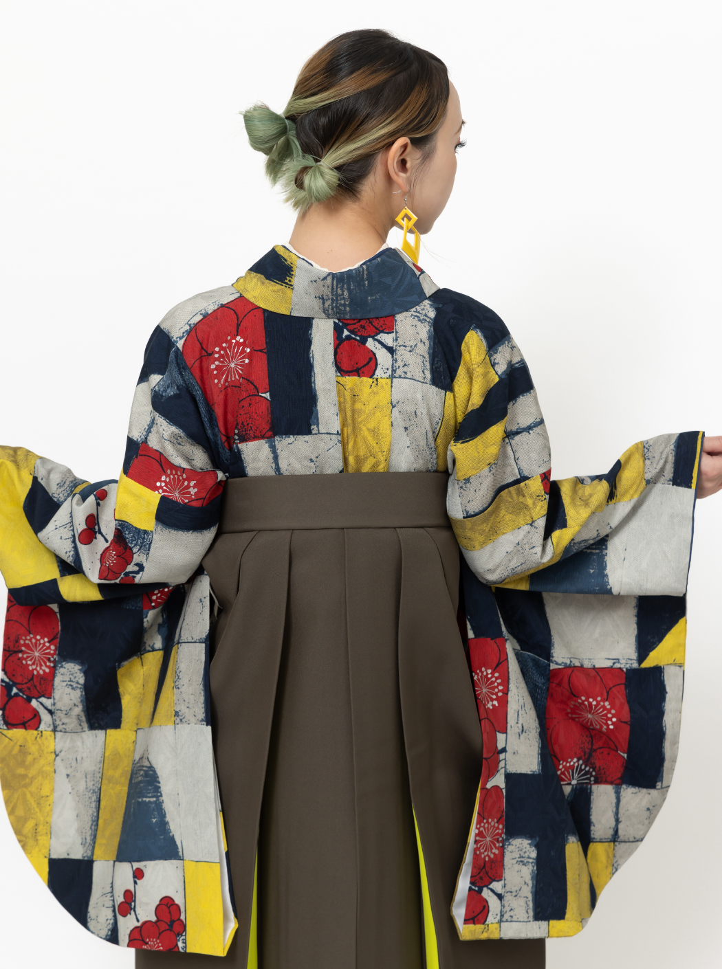 梅の園/黄×紺(袴:アコーディオン/カーキ×イエロー)