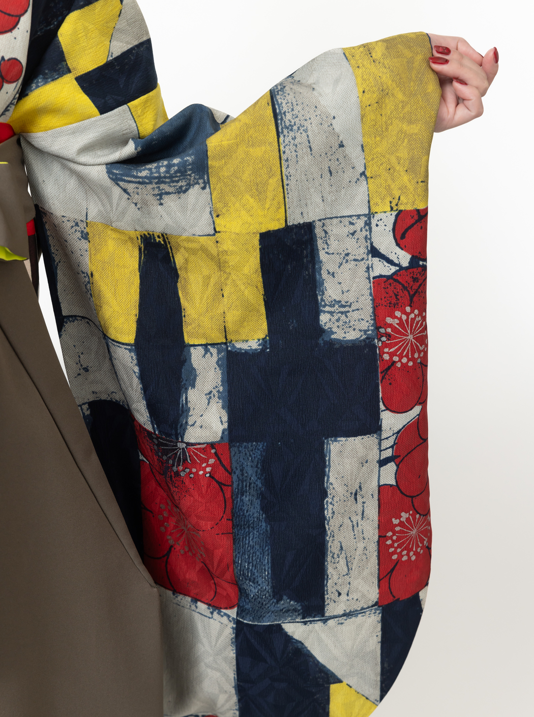 グランジの効いた格子の中に梅柄が描かれている。