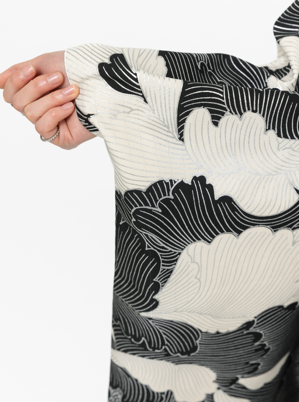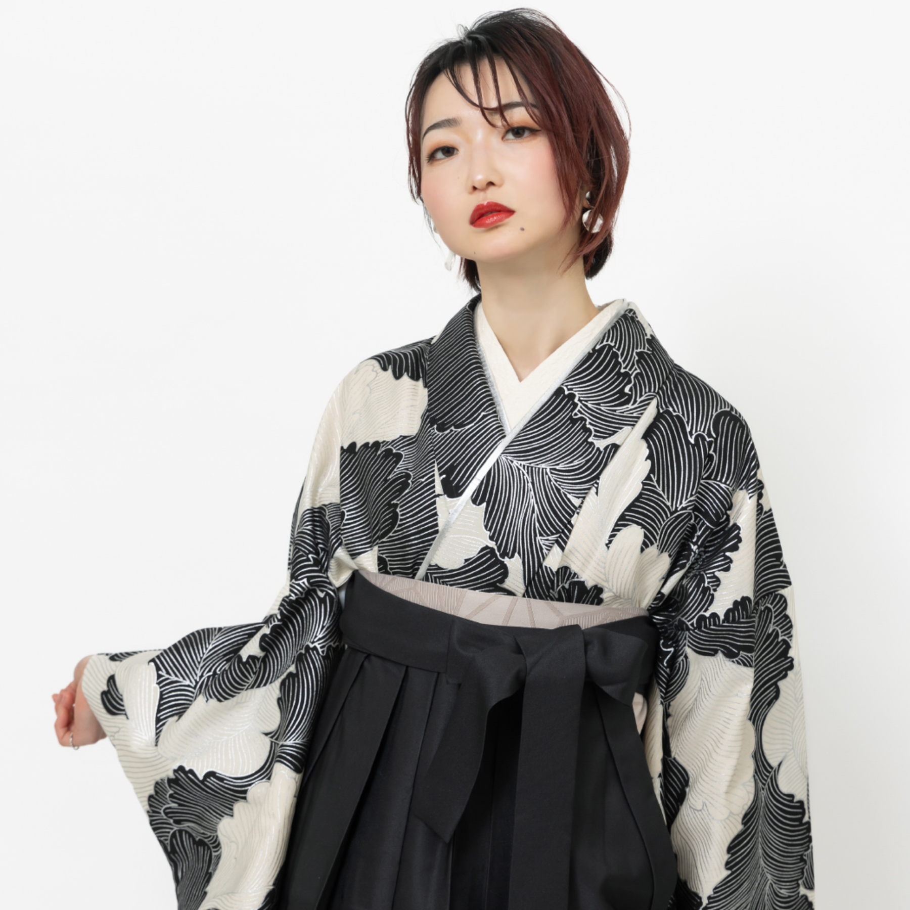 黒と白のシンプルな配色は、差し色が自由に選べるので、帯や小物をお好きな色でコーディネートできます。