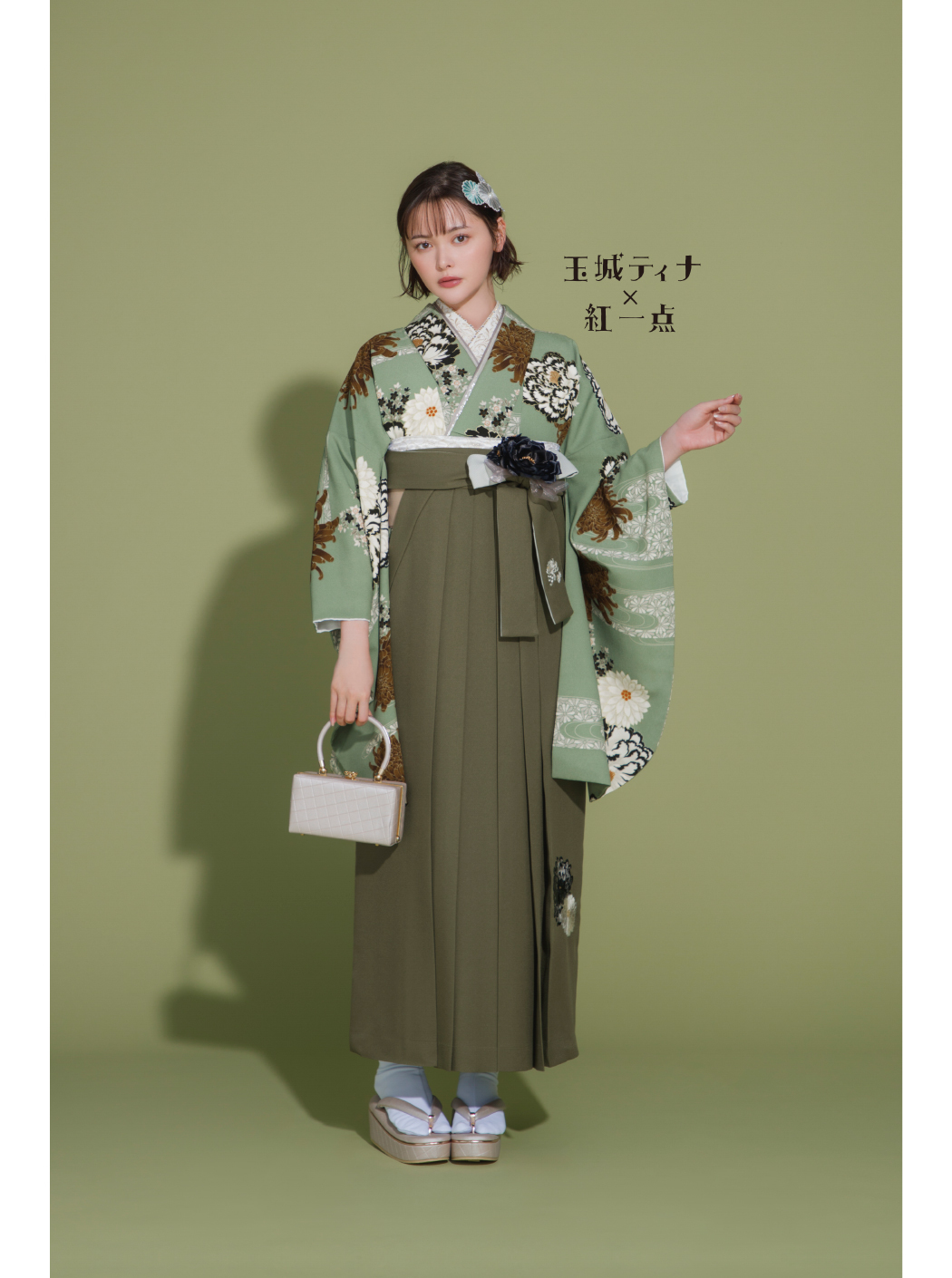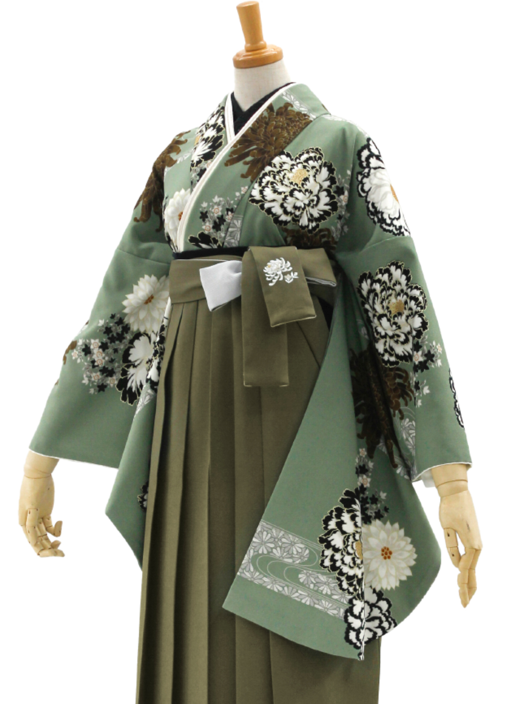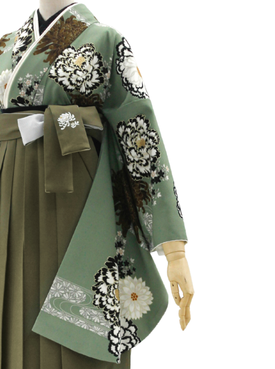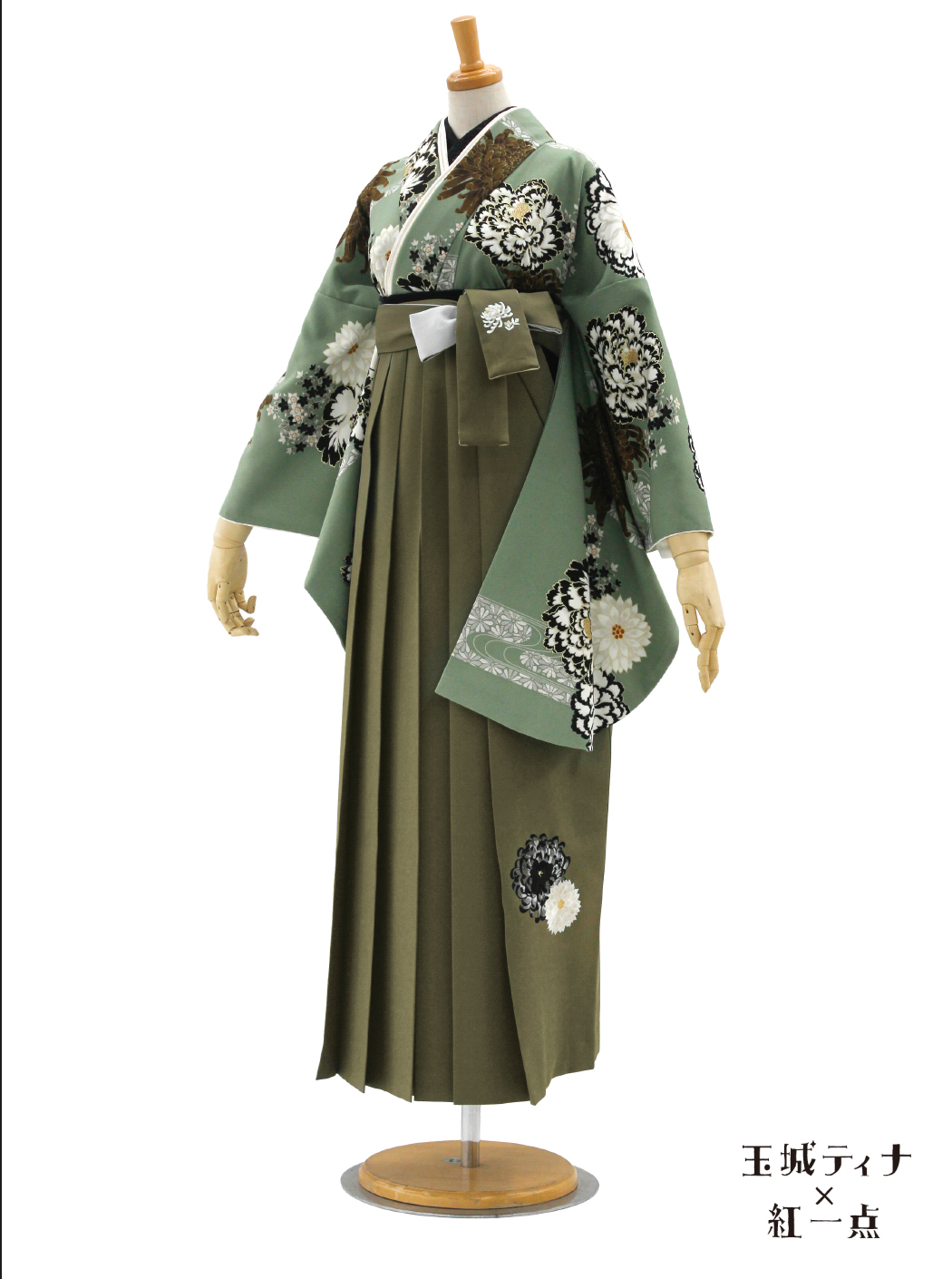 牡丹に菊/モスグリーン【玉城ティナ×紅一点】(袴:乱菊刺繡/カーキ)