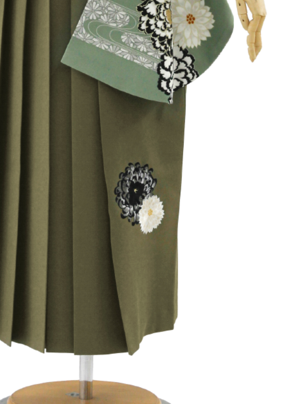 袴はカーキの地色に乱菊の刺繡が施されています。