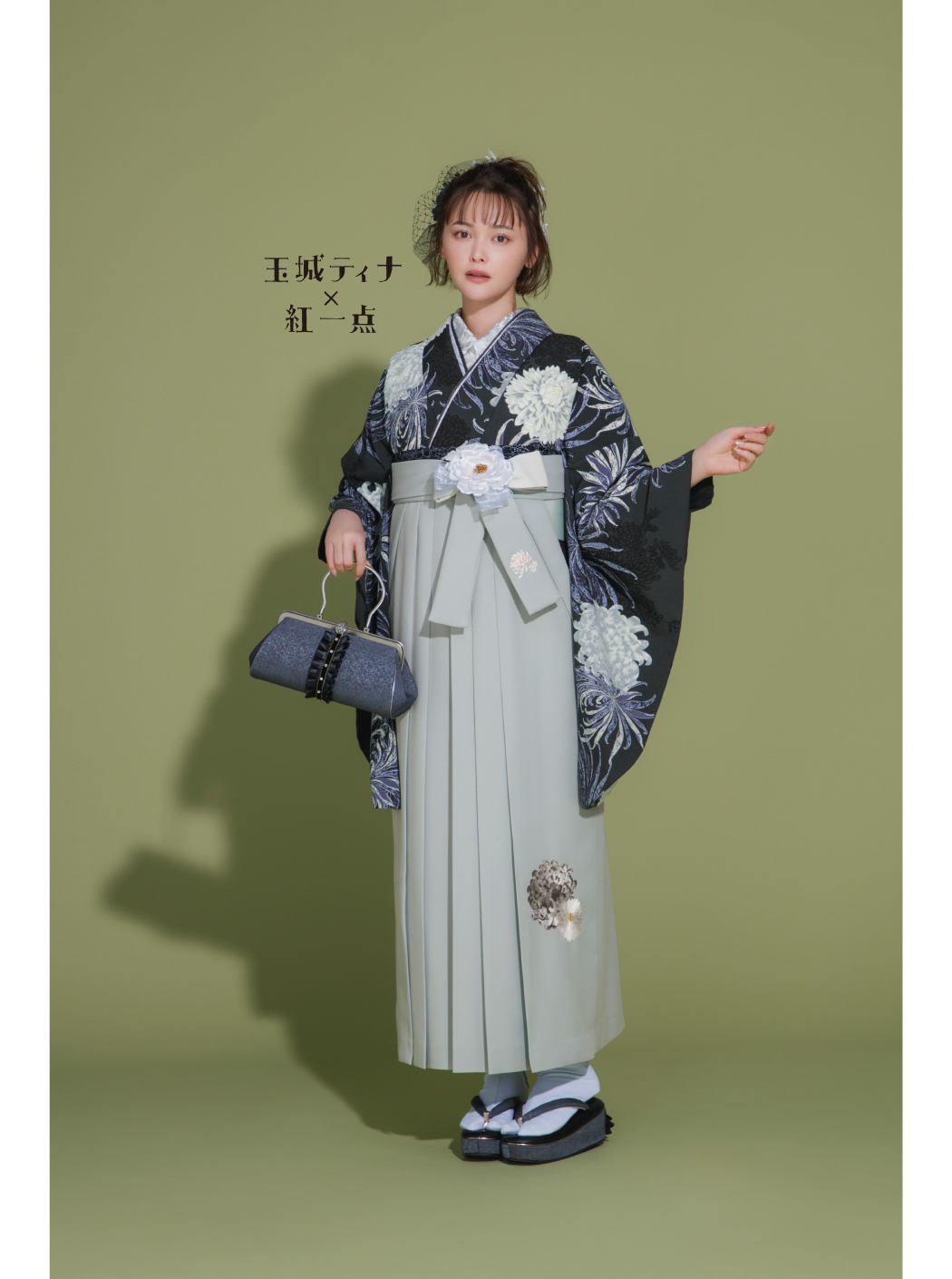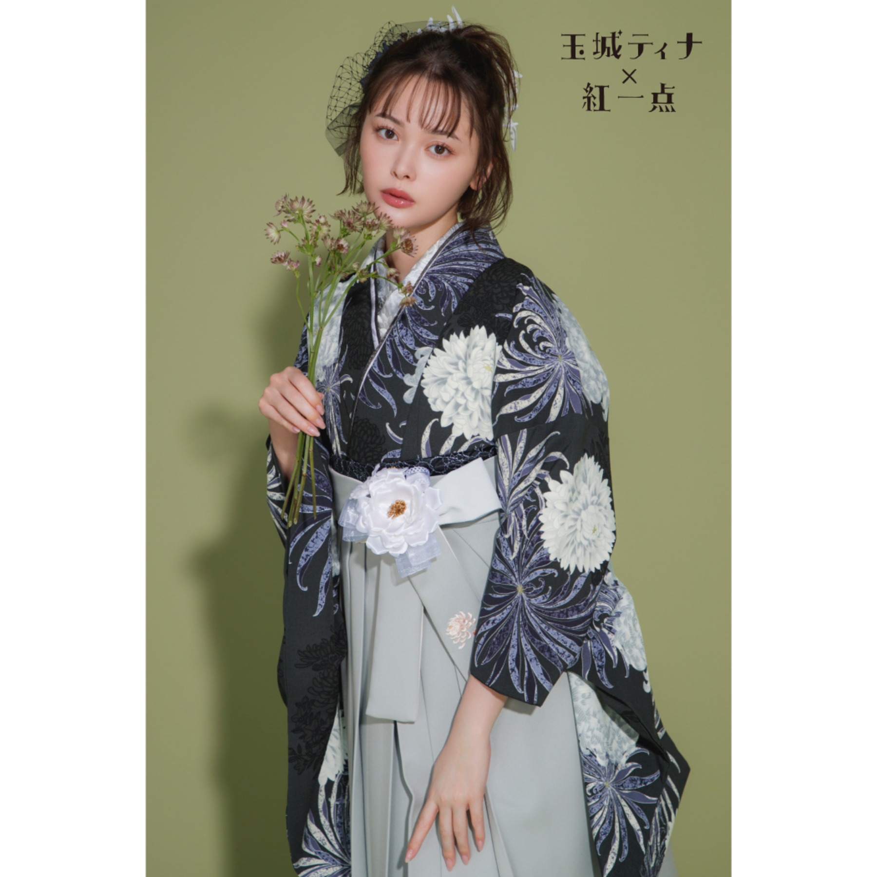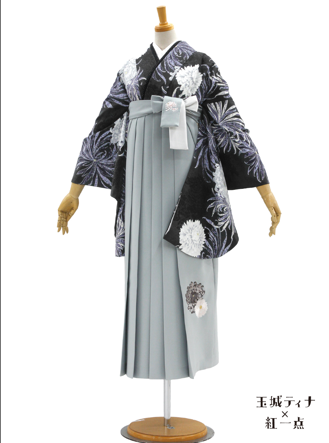 乱菊/チャコール【玉城ティナ×紅一点】(袴:乱菊刺繡/スモークブルー)