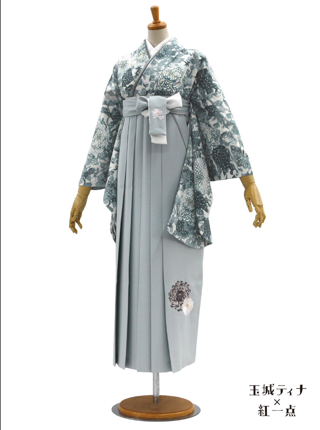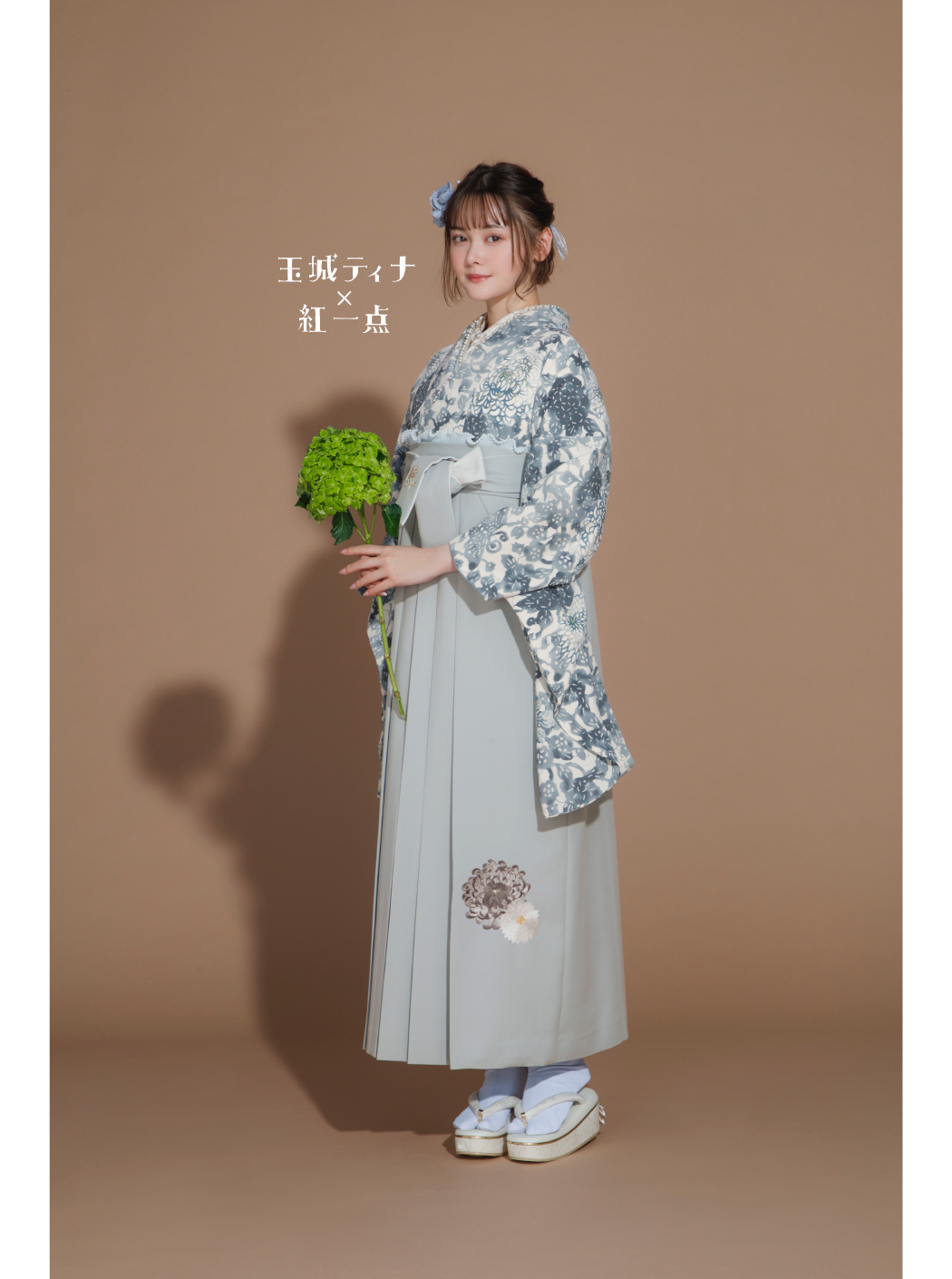 菊尽し/ブルーグレー【玉城ティナ×紅一点】(袴:乱菊刺繡/スモークブルー)