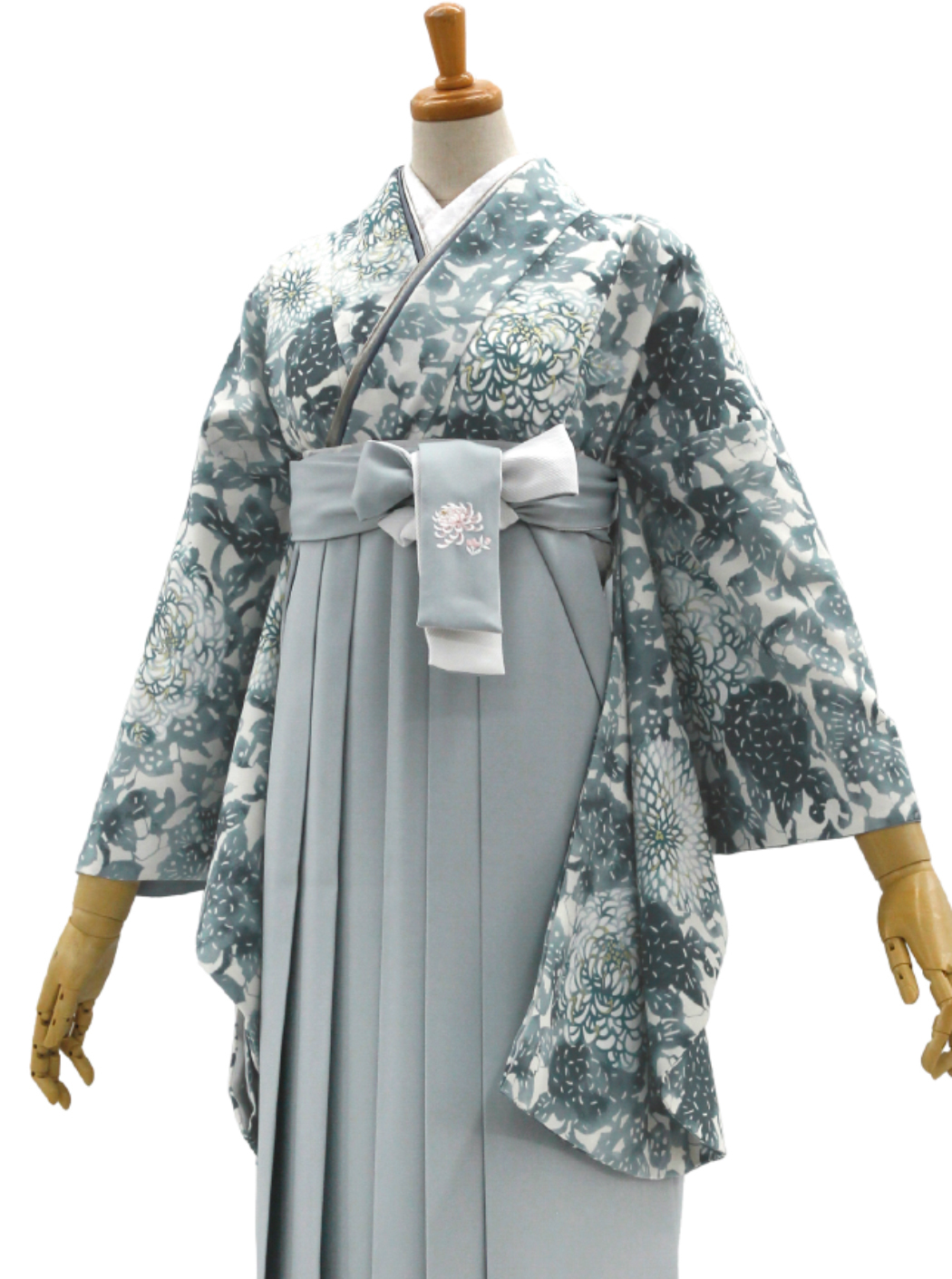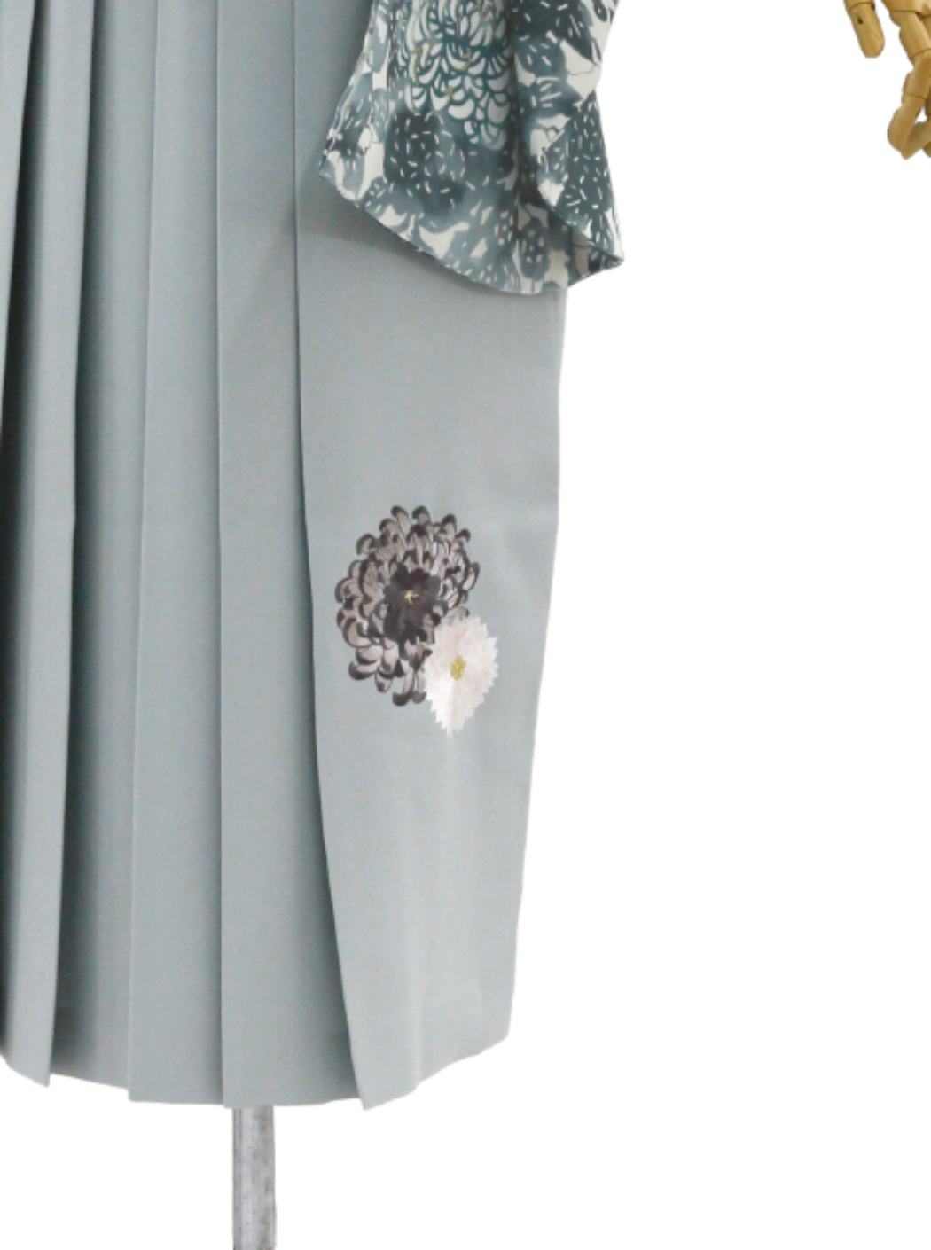 袴はスモークブルーの地色に乱菊の刺繡が施されています。