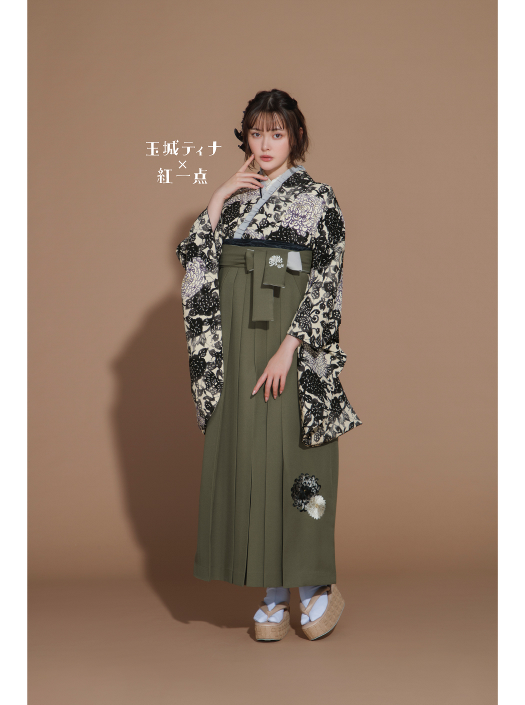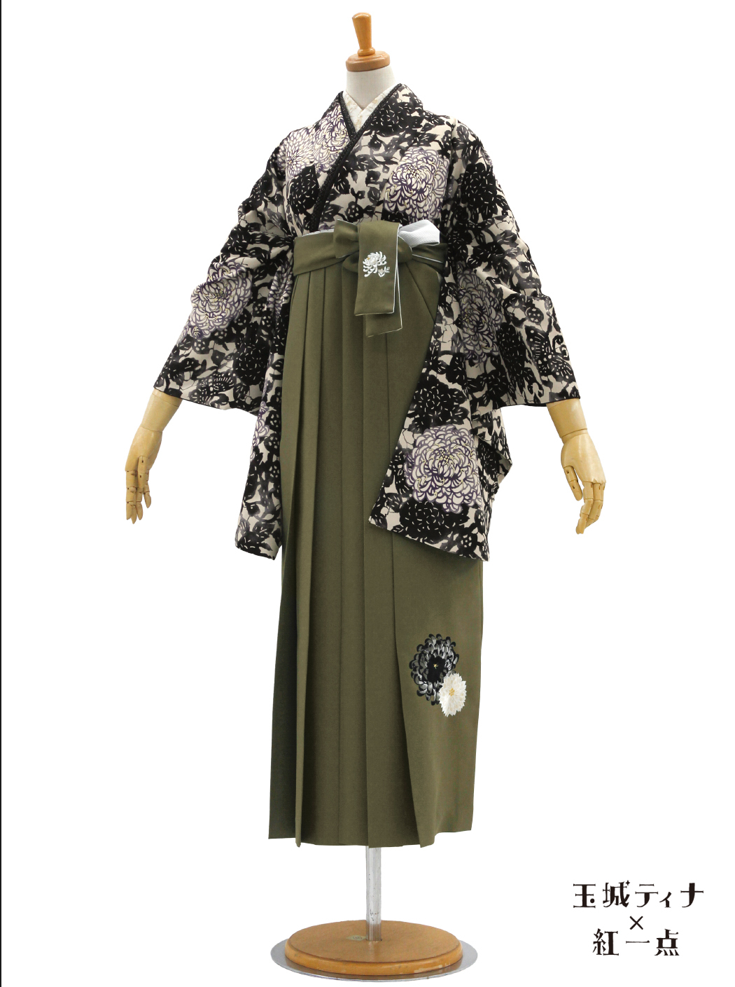 菊尽し/黒【玉城ティナ×紅一点】(袴:乱菊刺繡/カーキ)
