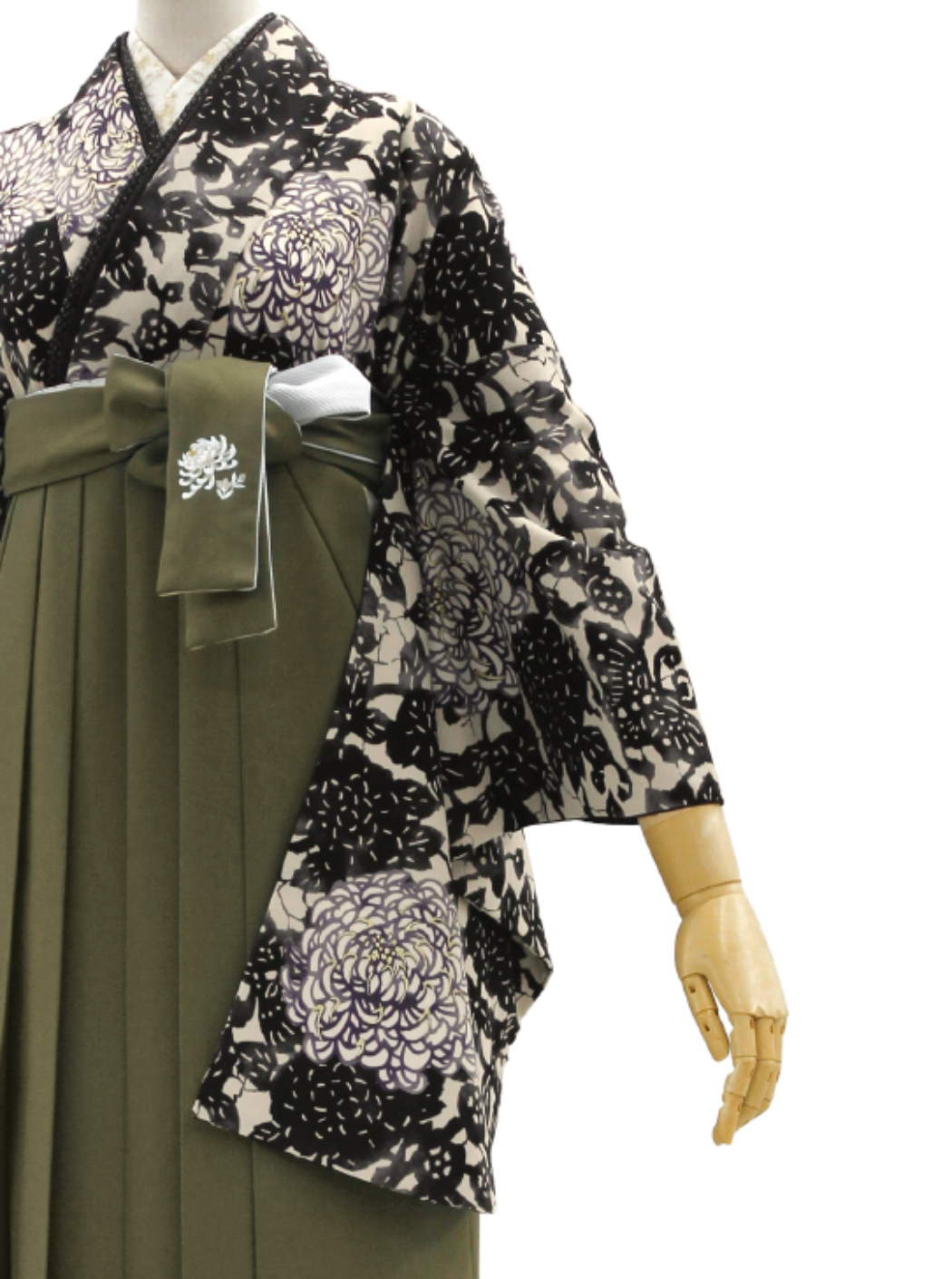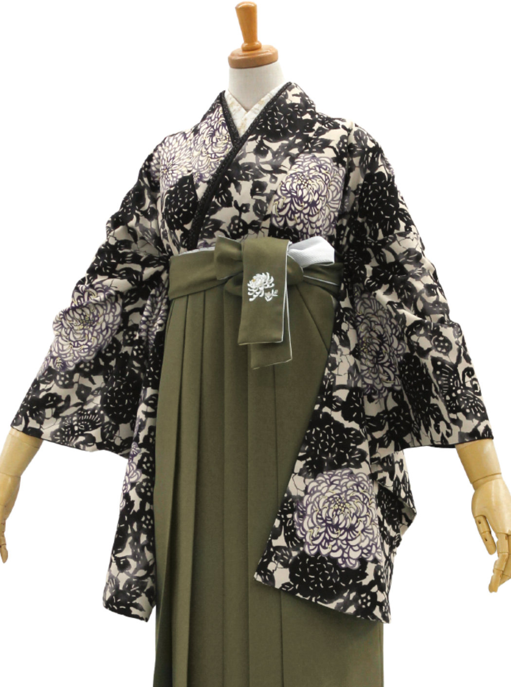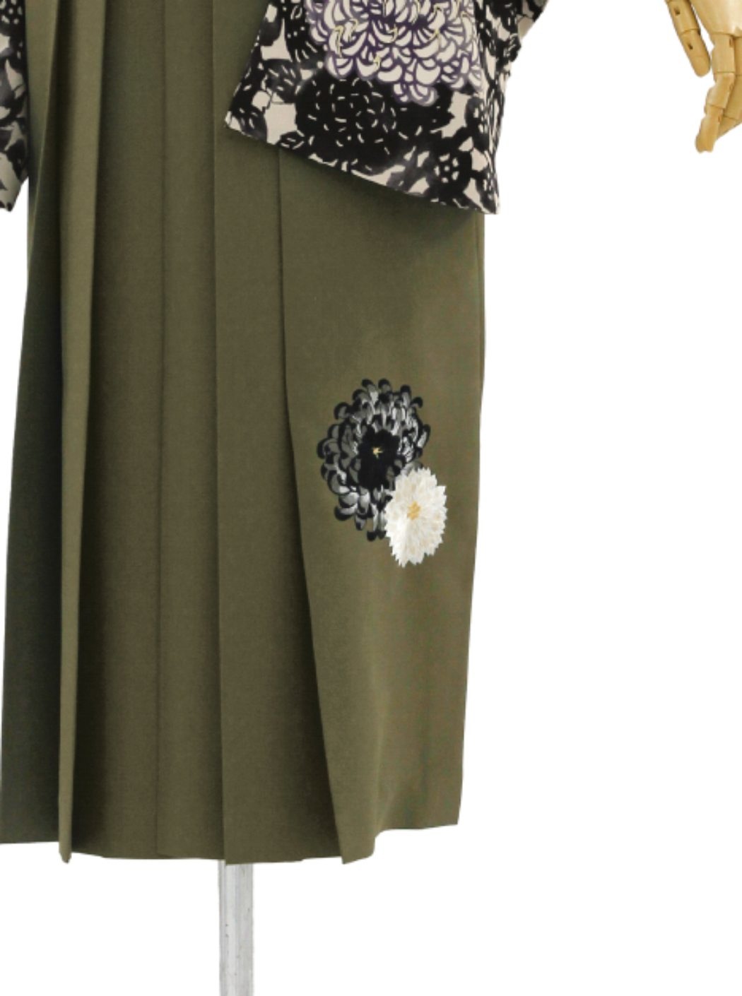 袴はカーキの地色に乱菊の刺繡が施されています。