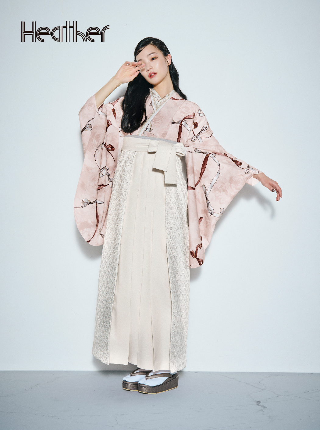 リボン/ピンク【Heather】(袴:レース切替え/オフ)