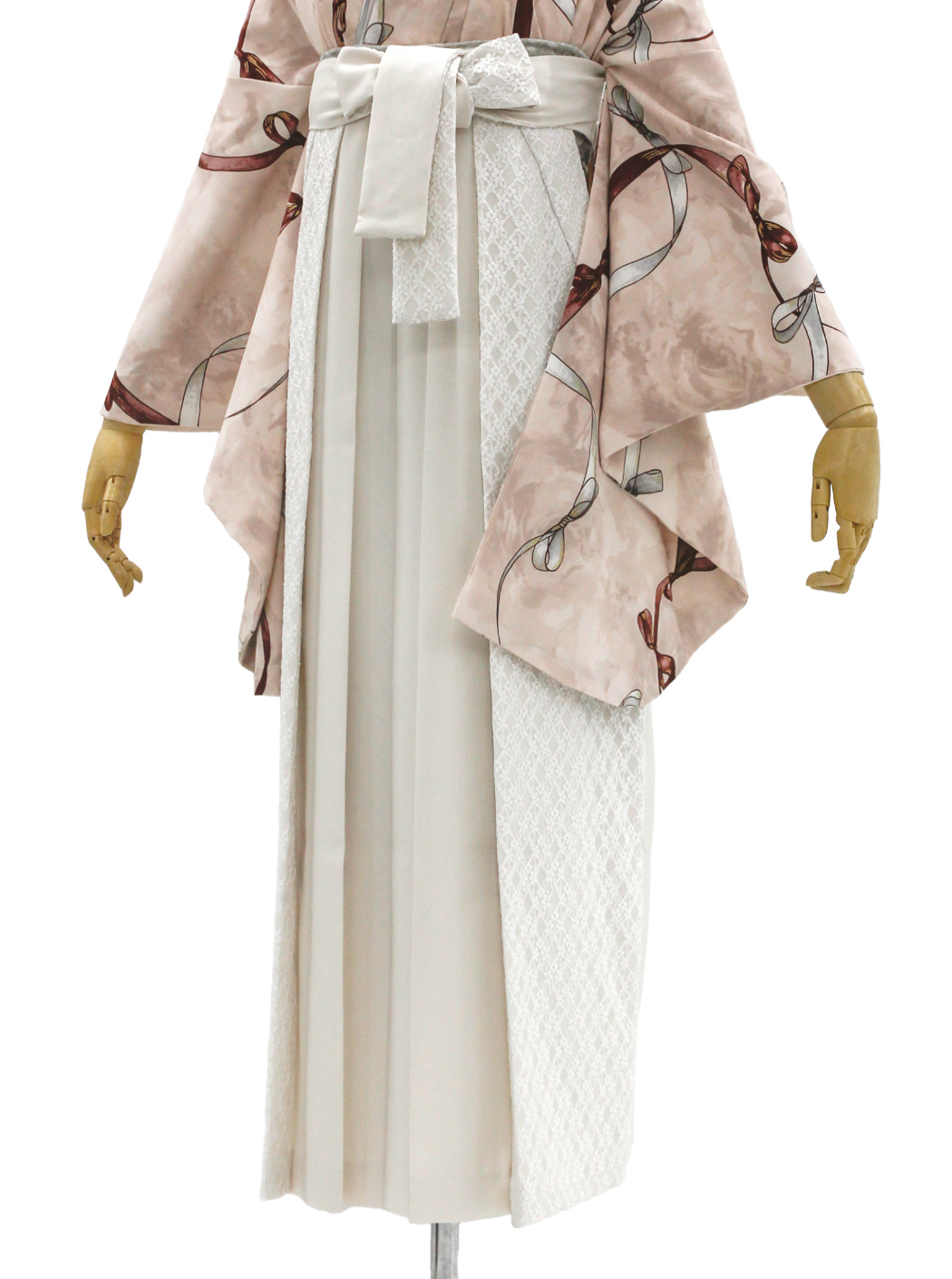 袴はオフホワイトの地色にレースの切り替えが施されています。