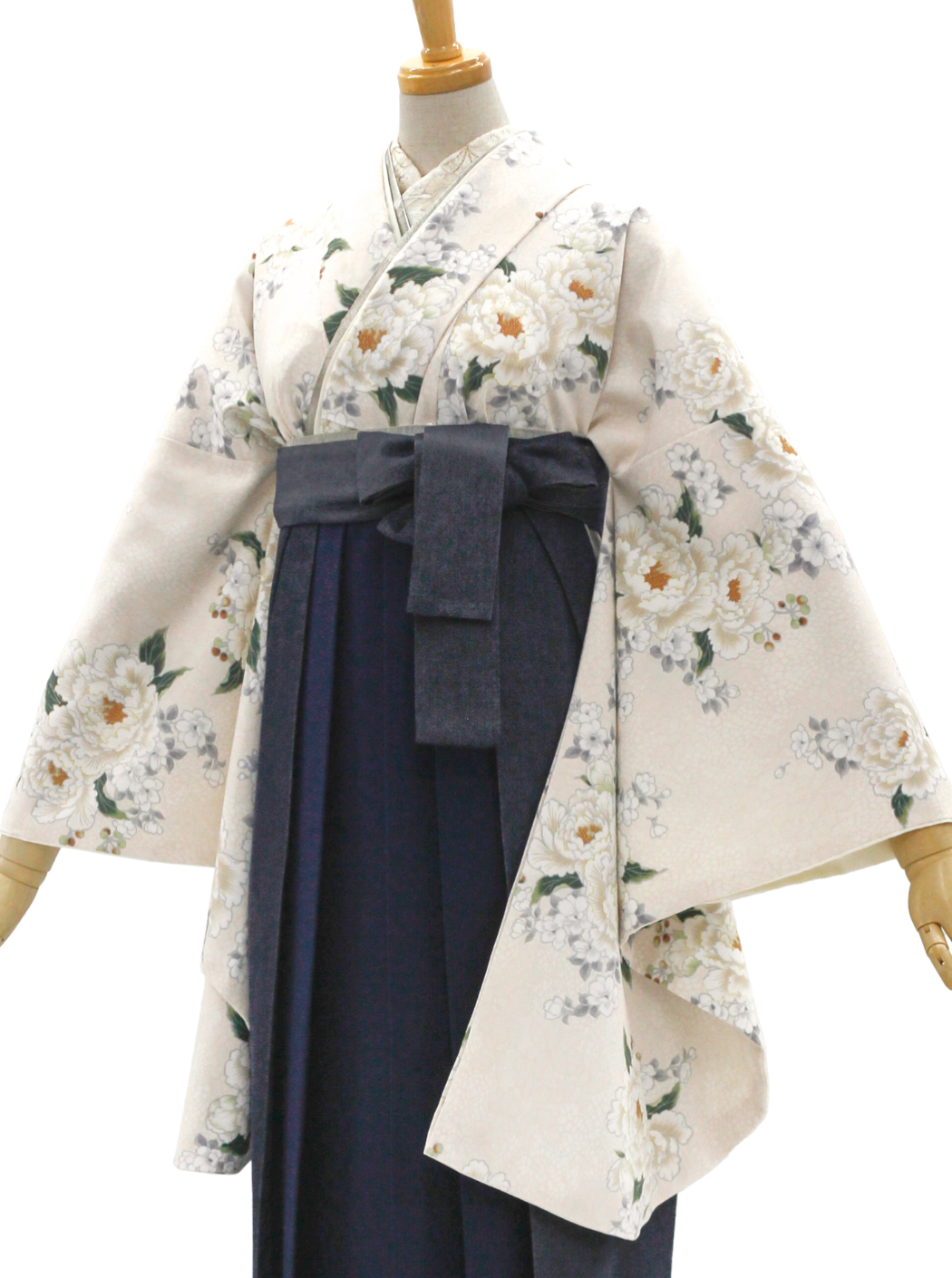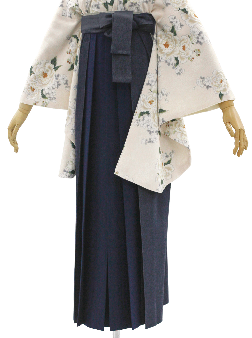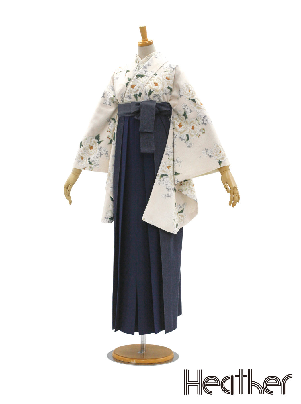 レース牡丹/オフ【Heather】(袴:デニム切替え/紺)