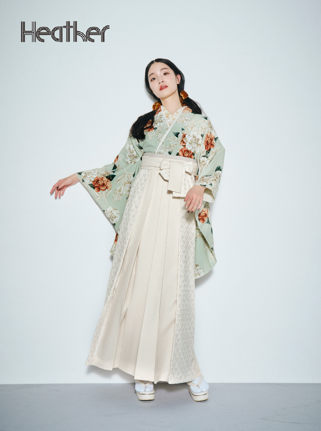 椿/ミントグリーン【Heather】(袴:レース切替え/オフ)