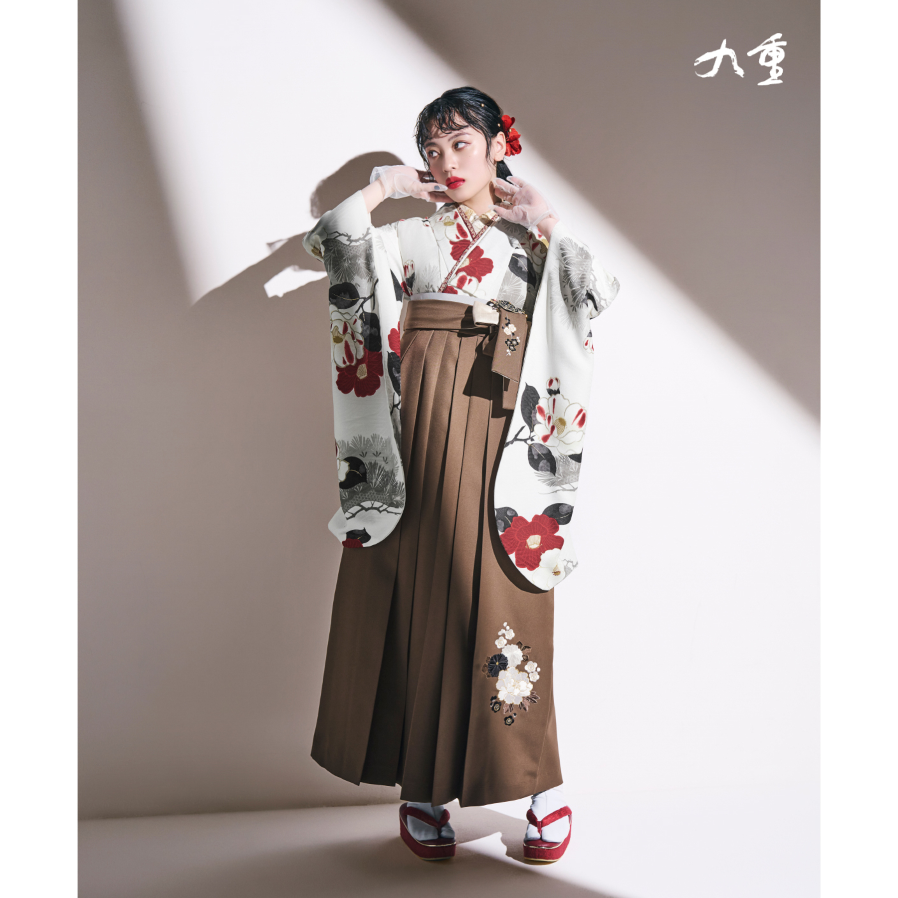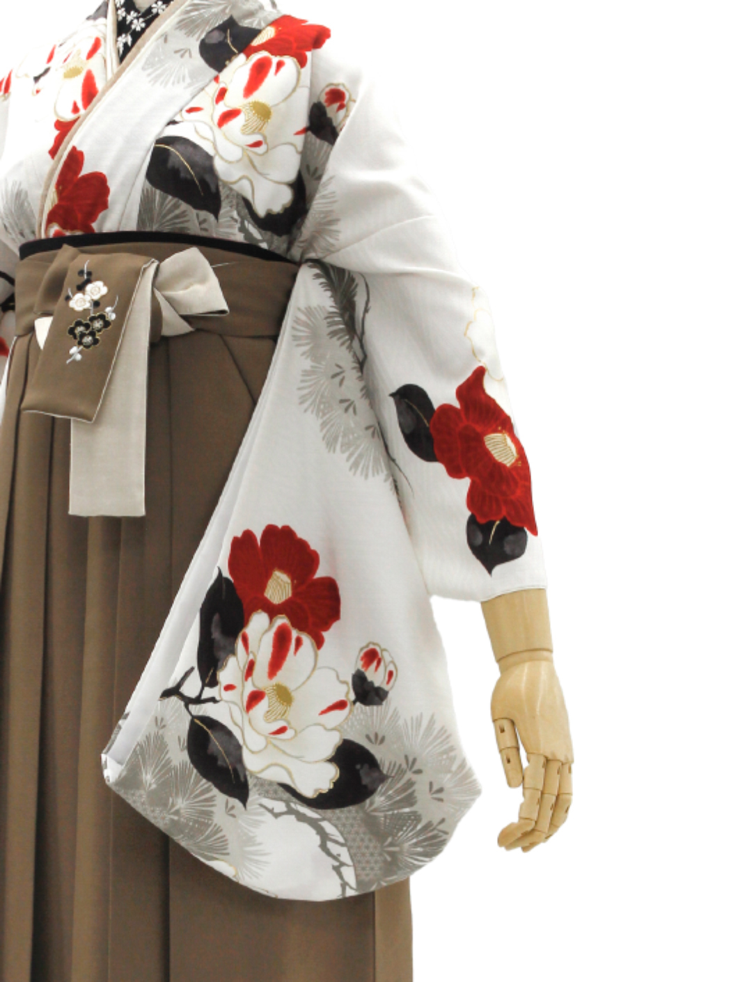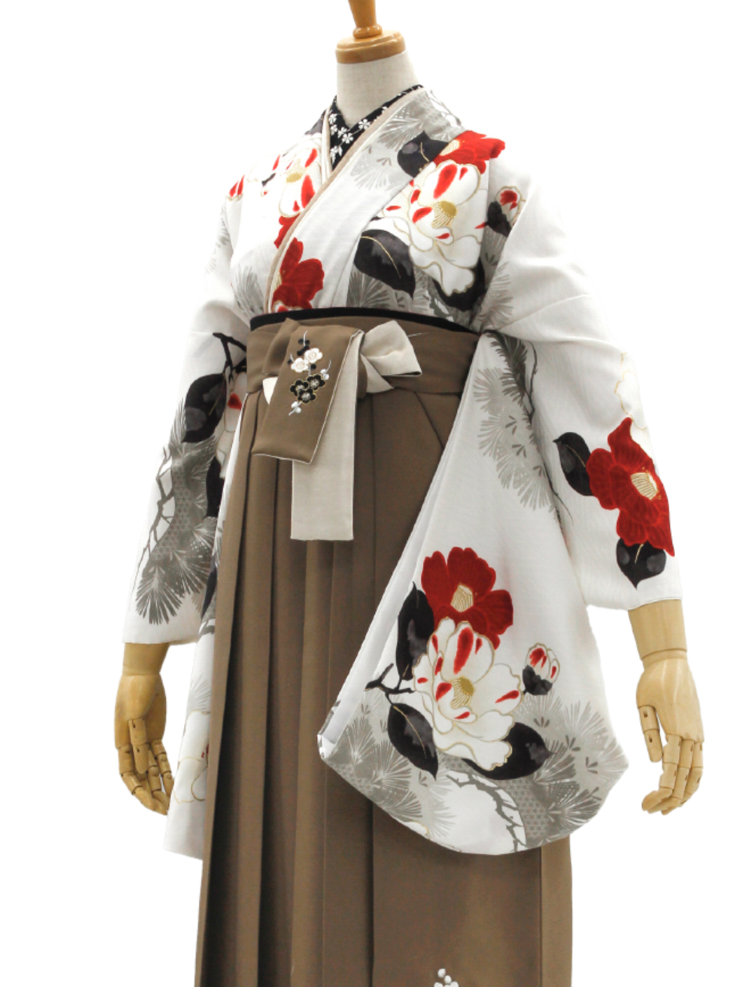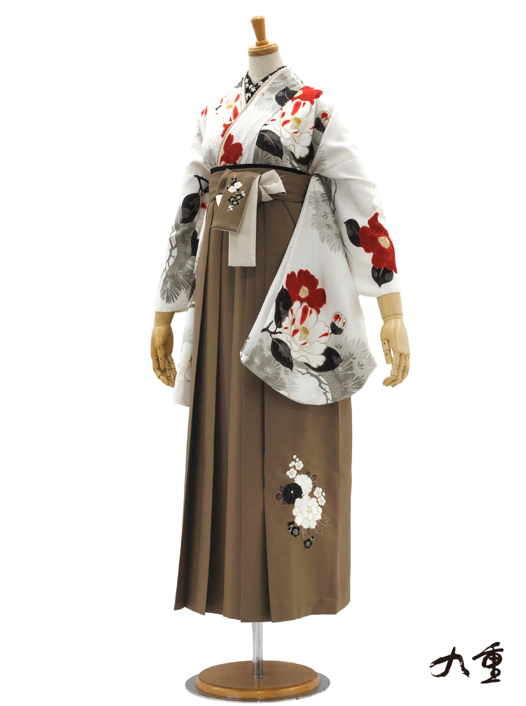 椿と松/白【九重】(袴:牡丹梅菊刺繍/ベージュ)