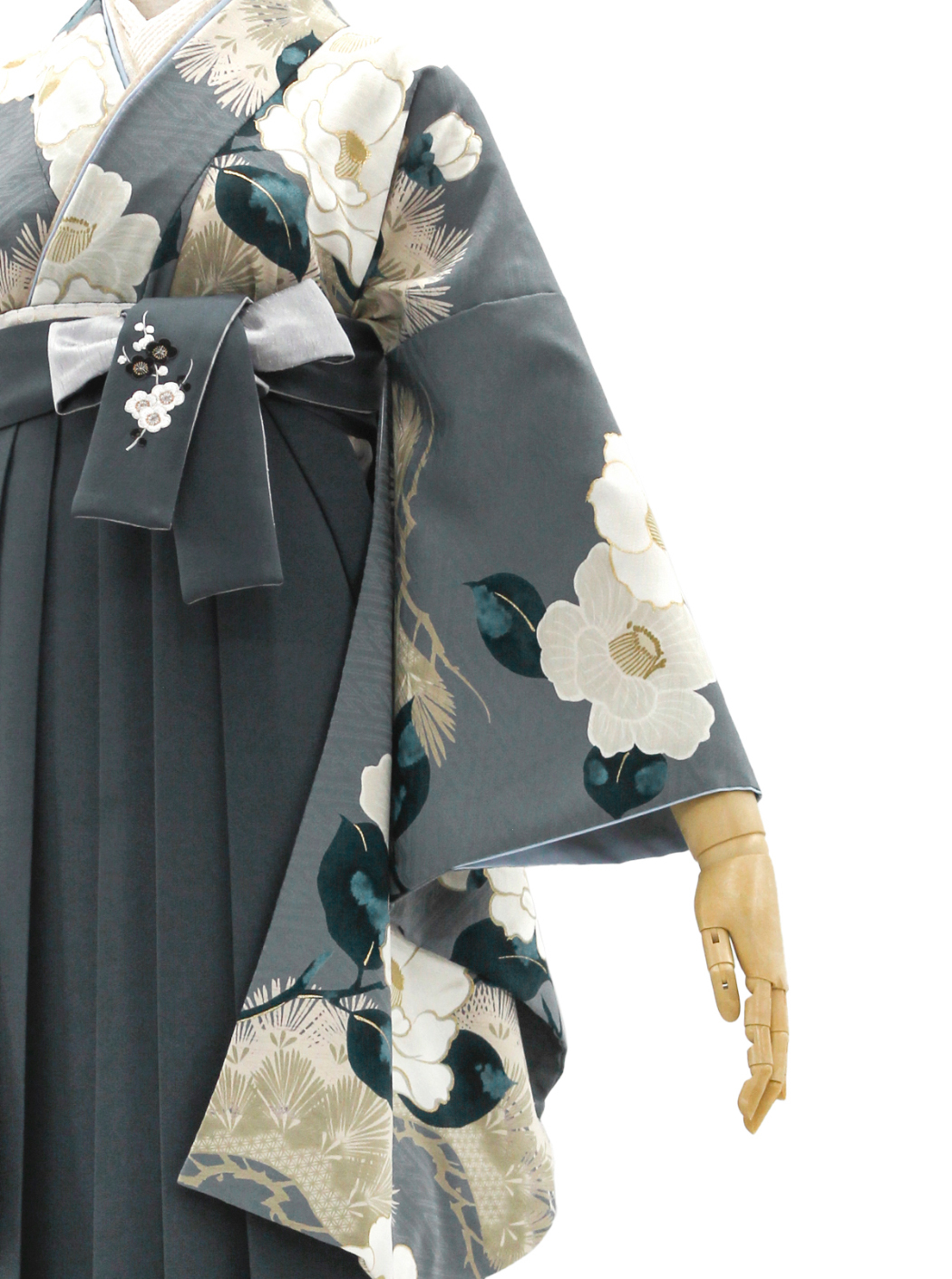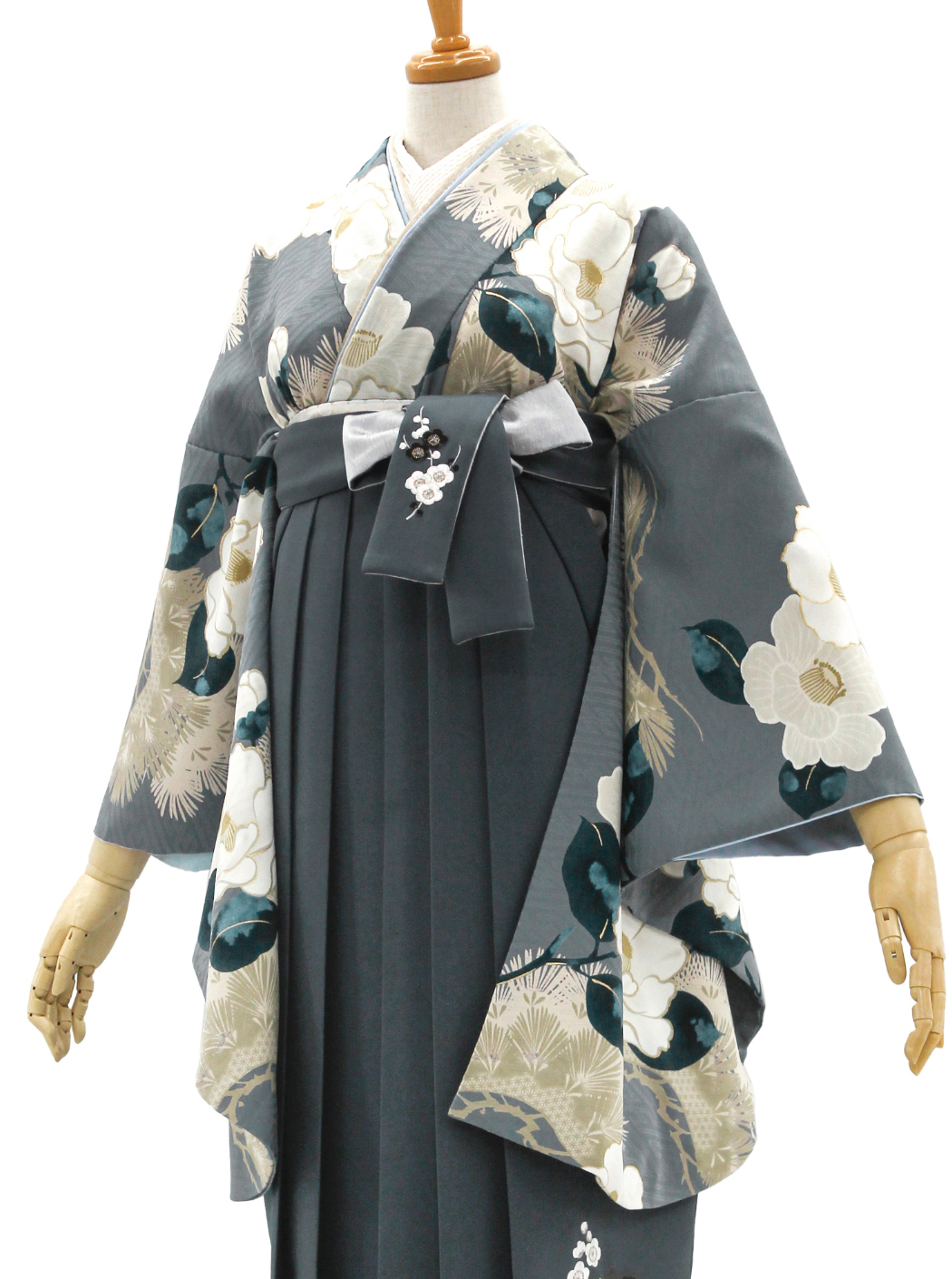椿と松/グレー【九重】(袴:牡丹梅菊 刺繍/グレー)