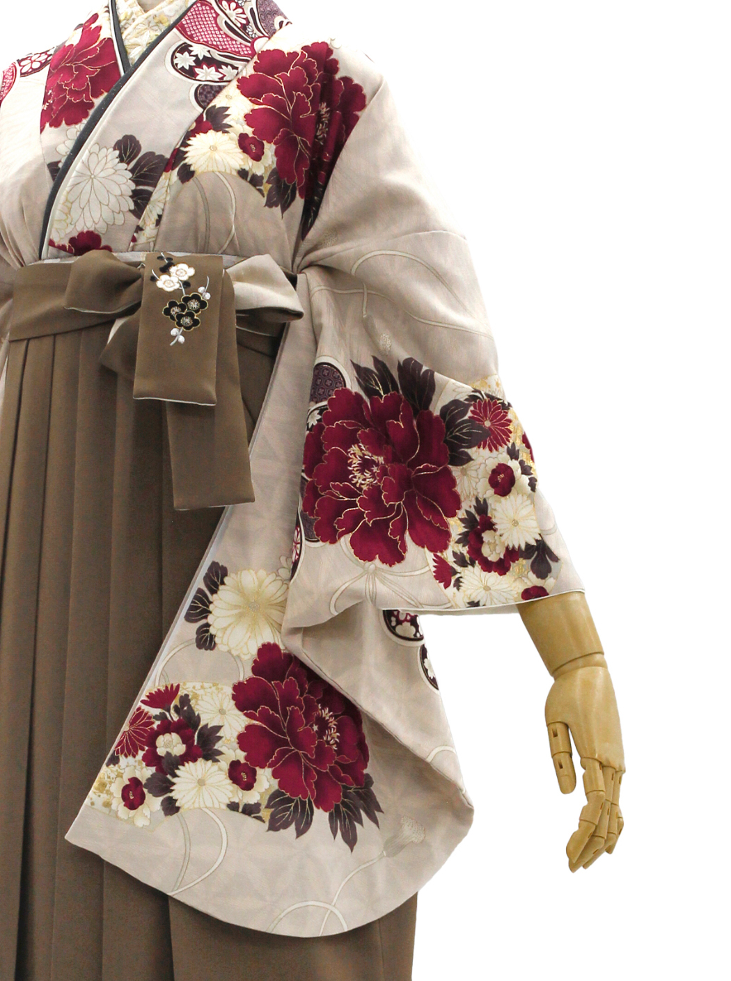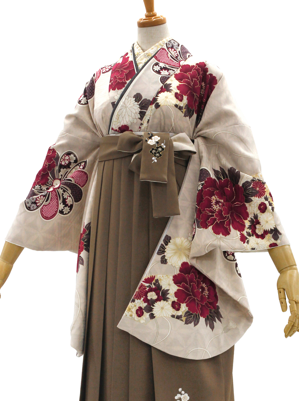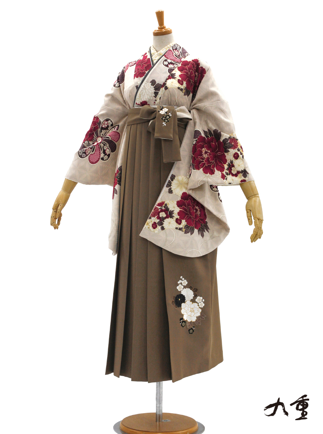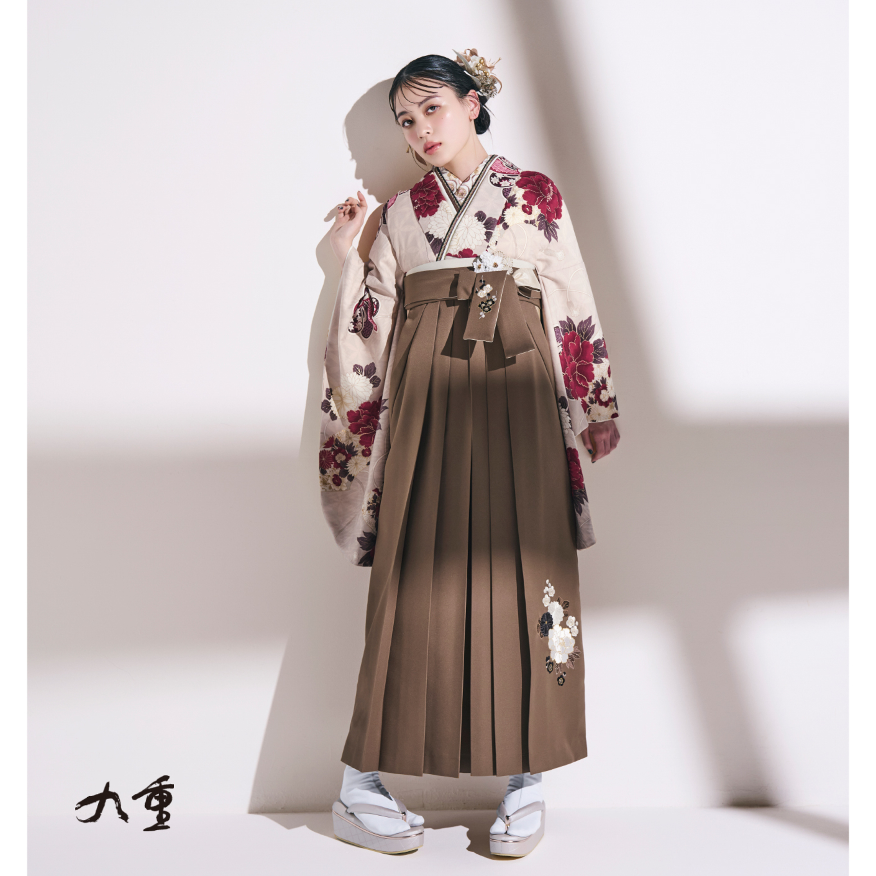 扇面に牡丹/ピンクベージュ【九重】(袴:牡丹梅菊刺繍/ベージュ)