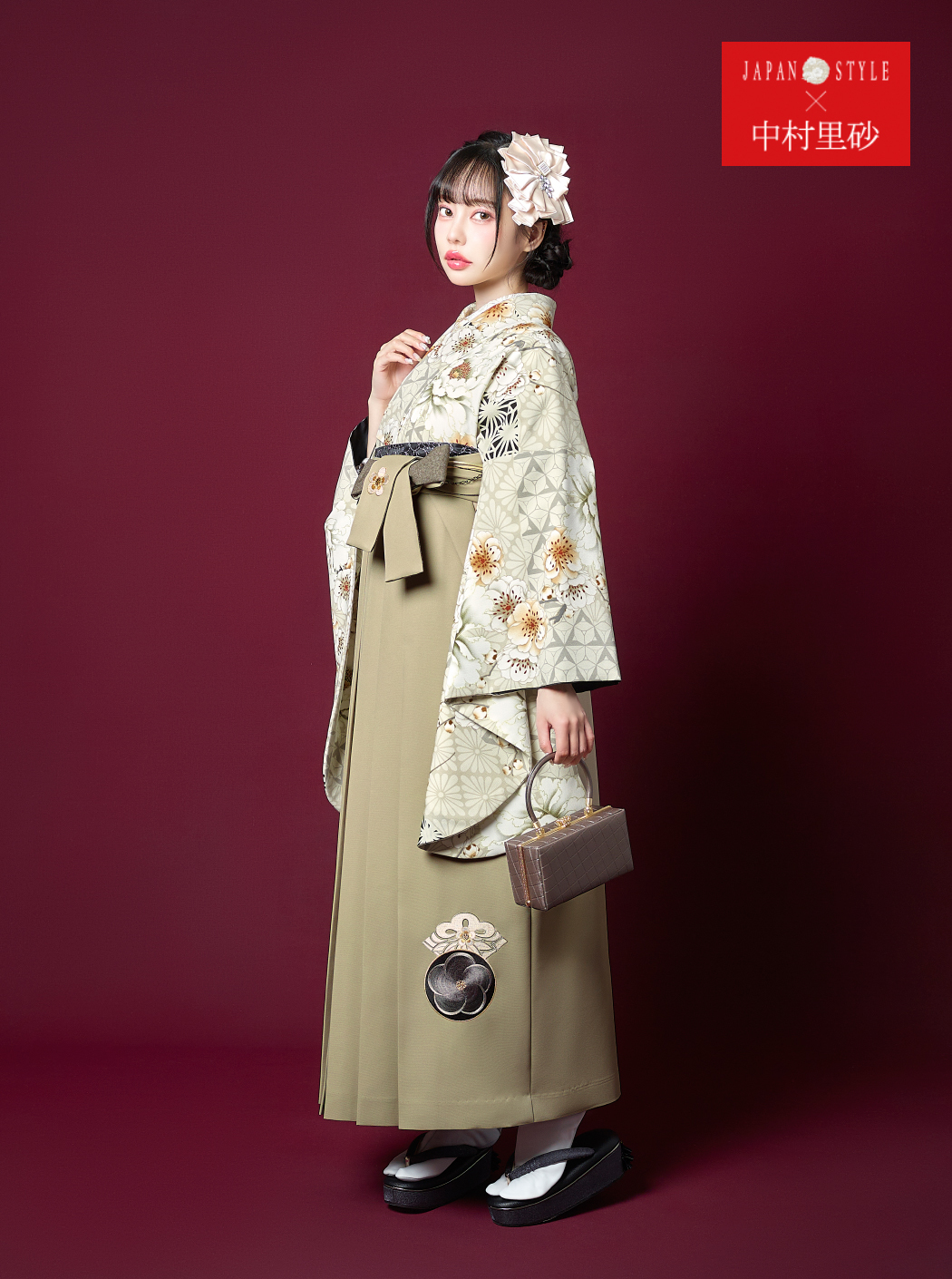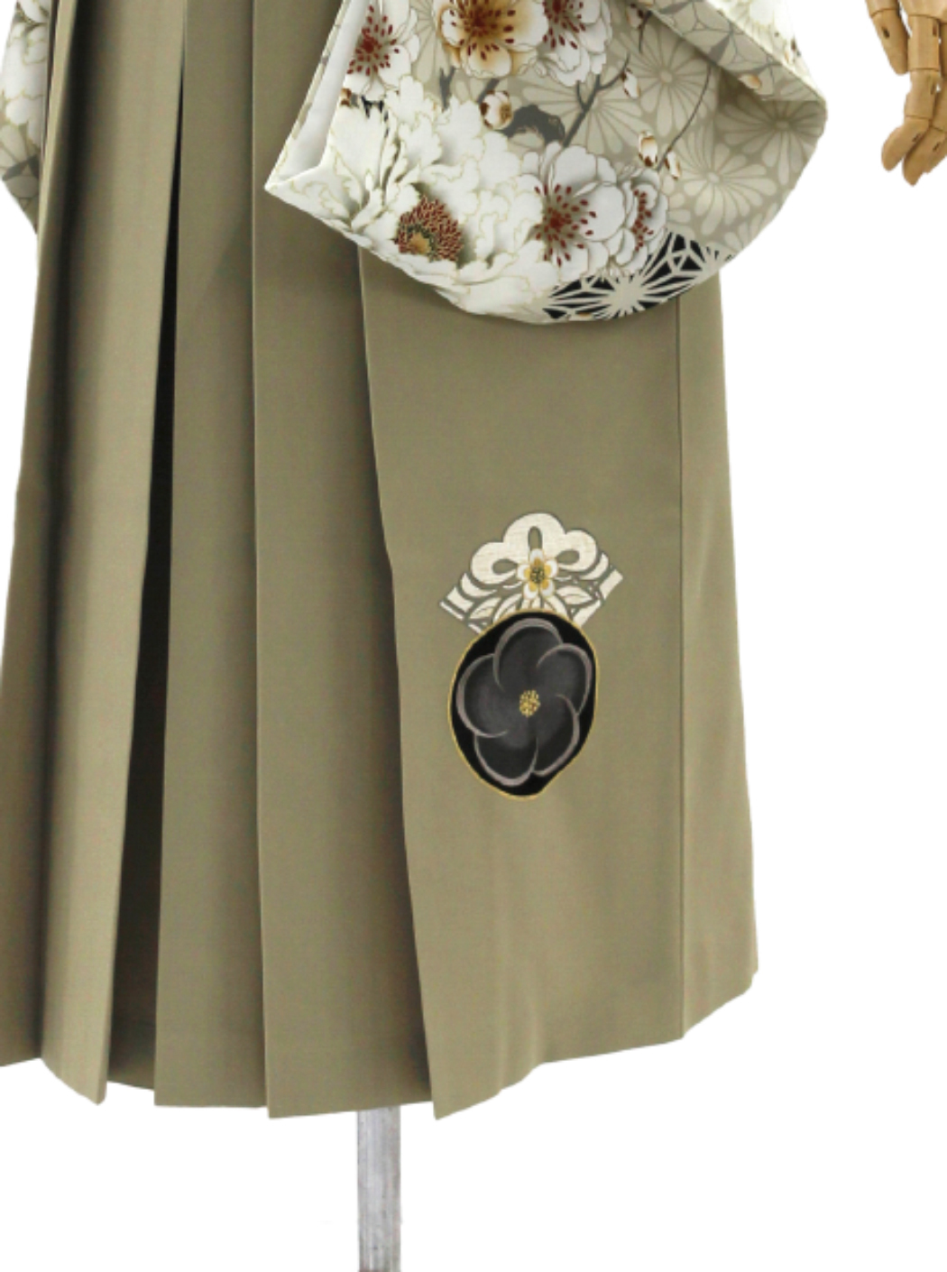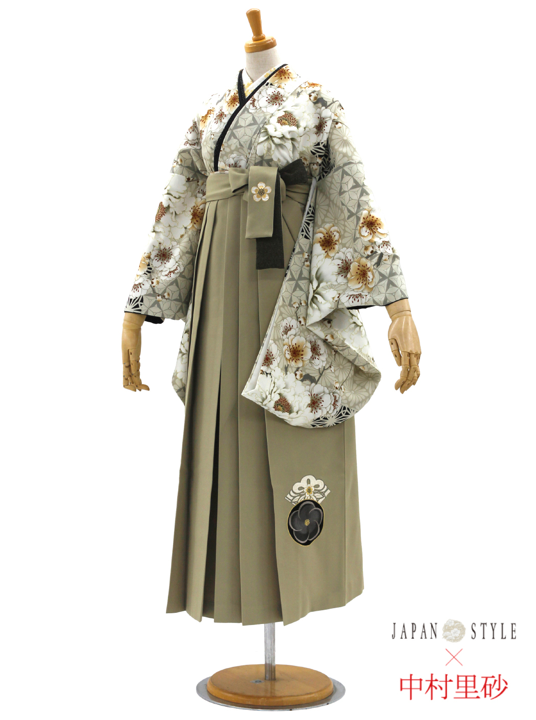 牡丹に八重桜/グレージュ【JAPAN STYLE×中村里砂】(袴:梅丸紋刺繍/ベージュ)
