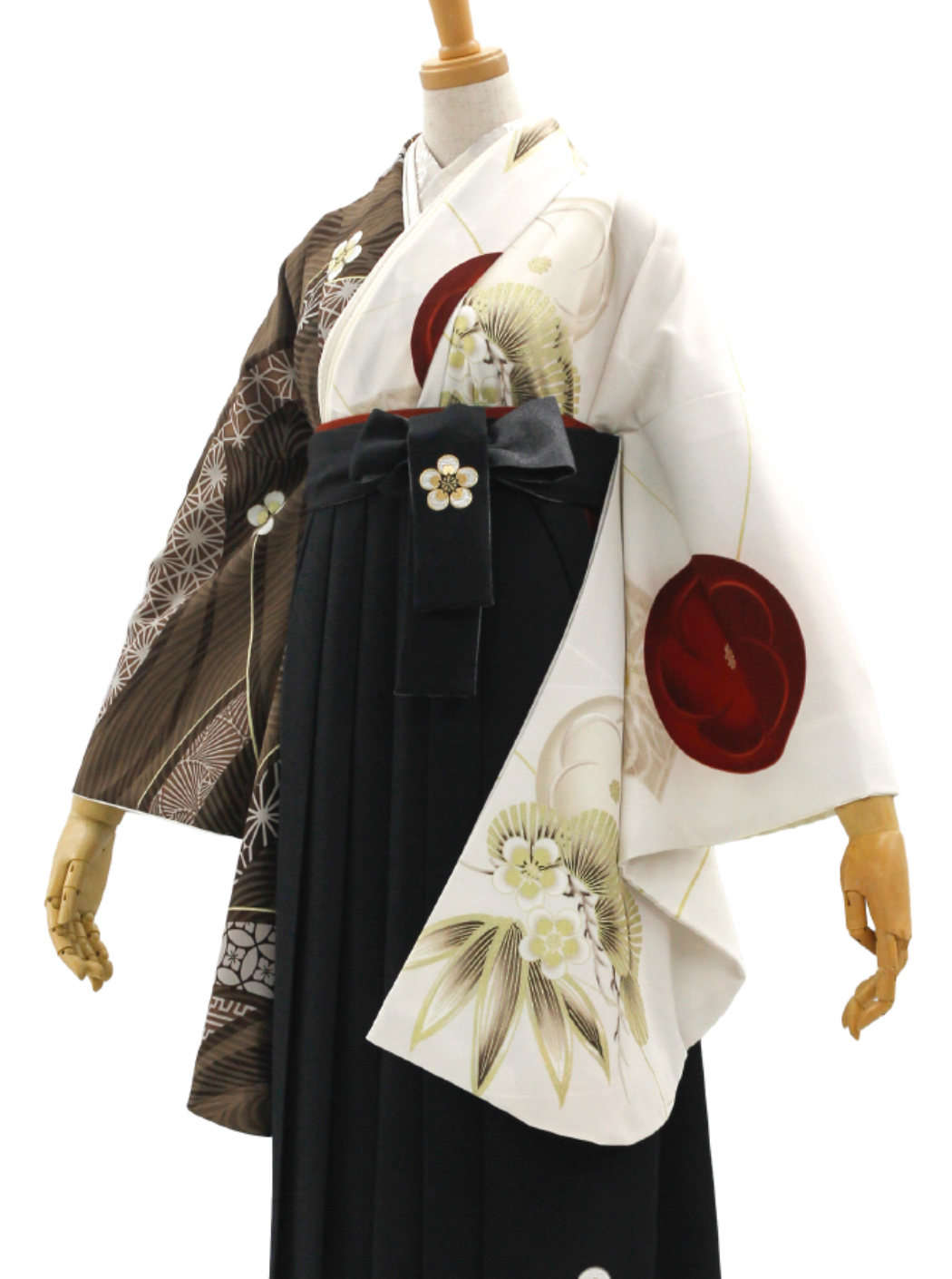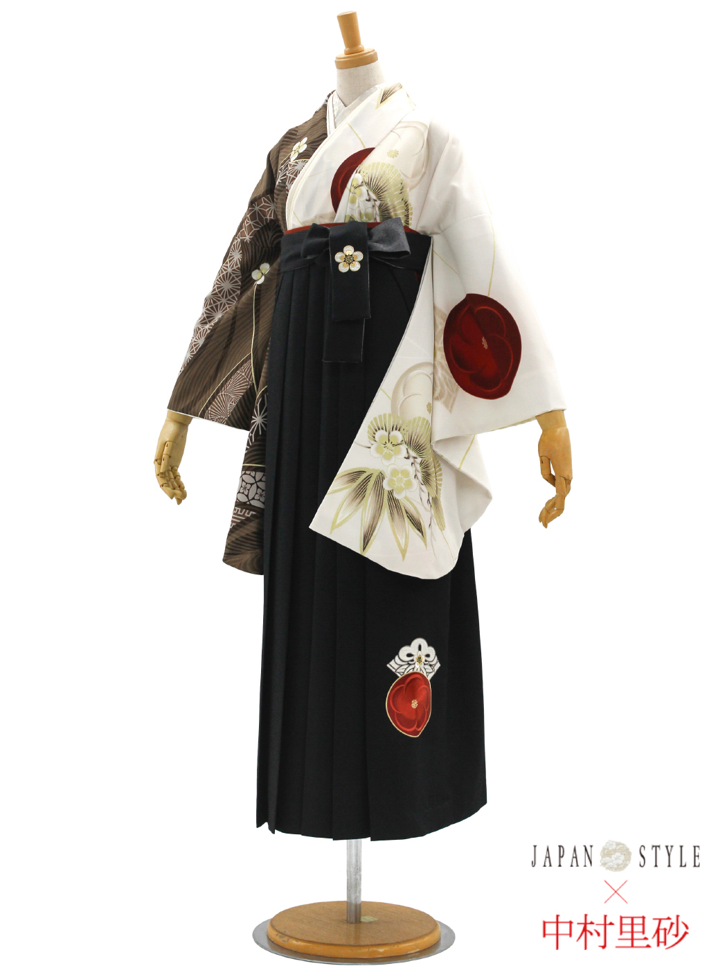 梅丸紋(肩身替り)/ブラウン【JAPAN STYLE×中村里砂】(袴:梅丸紋刺繍/黒)