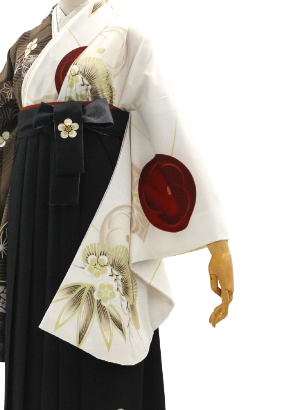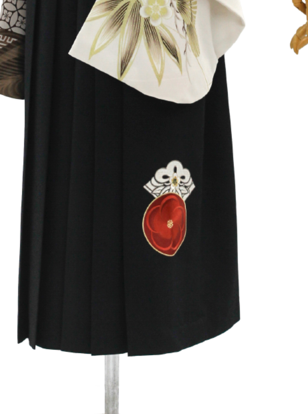 袴は黒の地色に梅丸紋の刺繍が施されています。