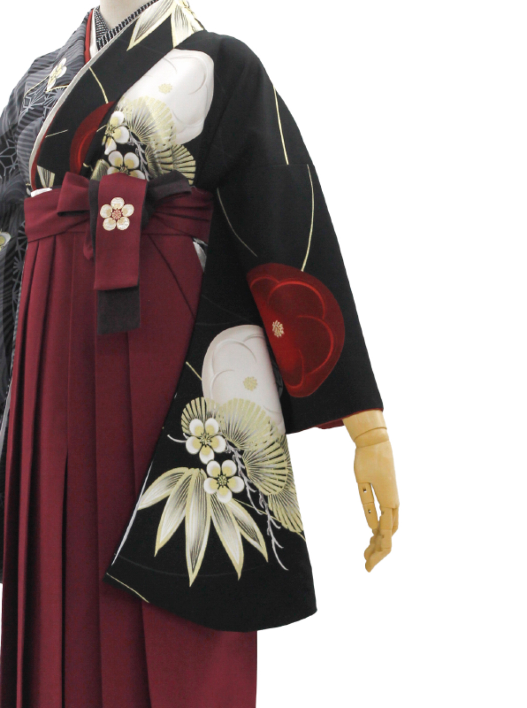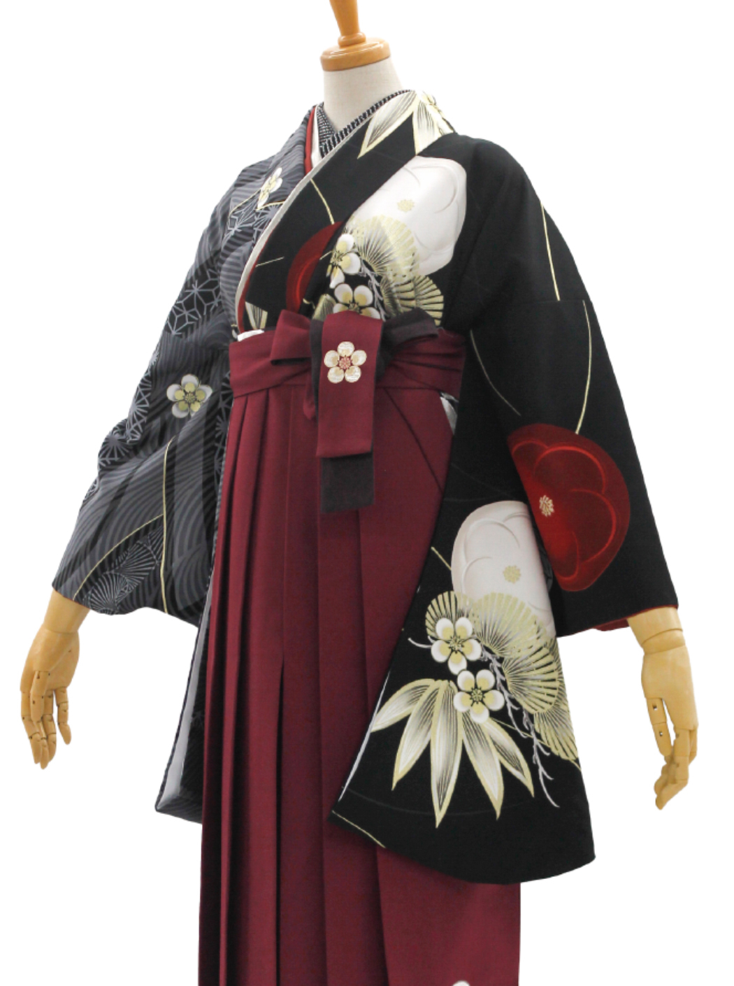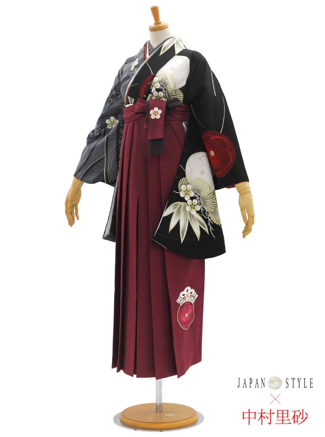 梅丸紋(肩身替り)/黒【JAPAN STYLE×中村里砂】(袴:梅丸紋刺繍/エンジ)