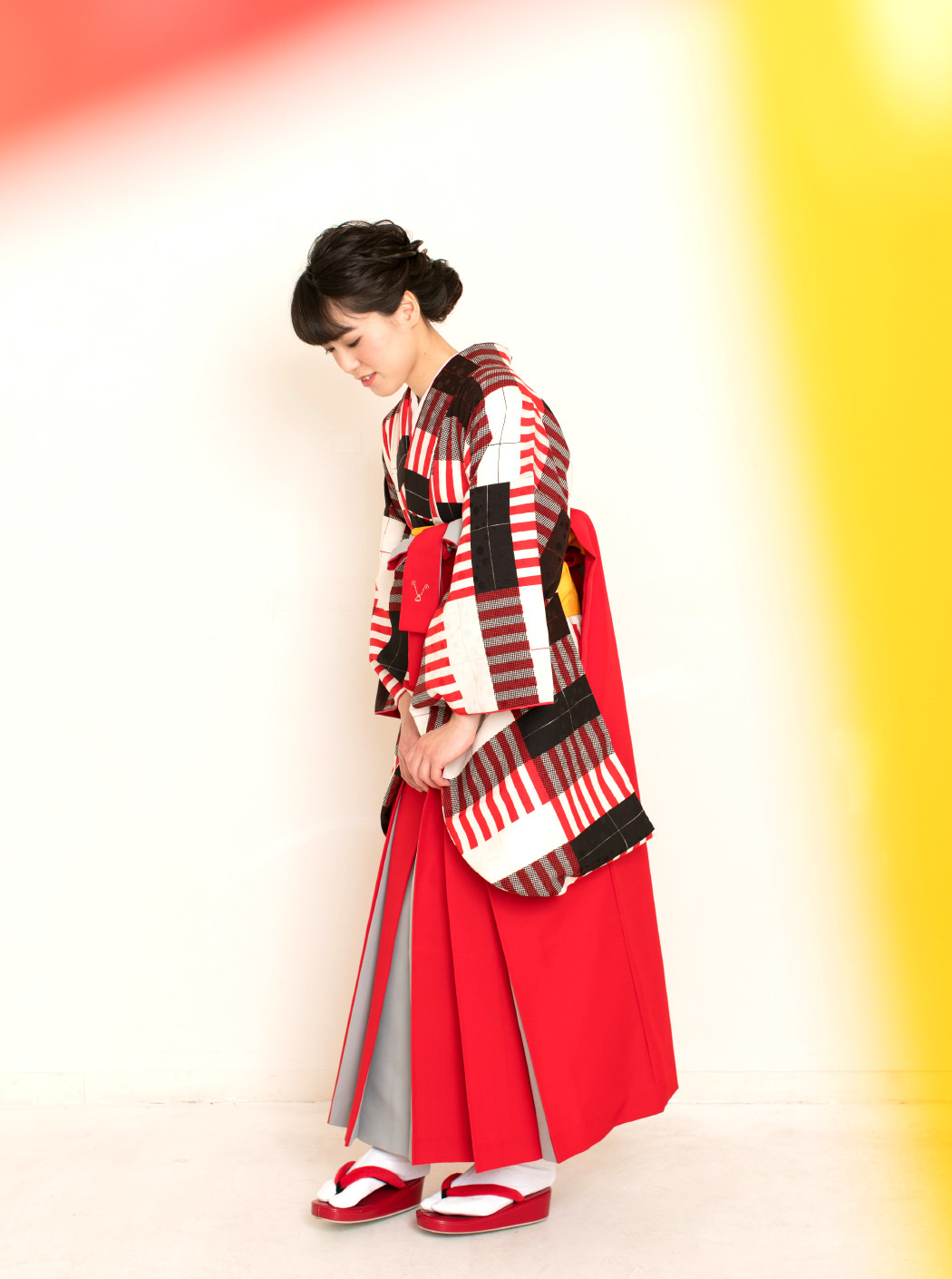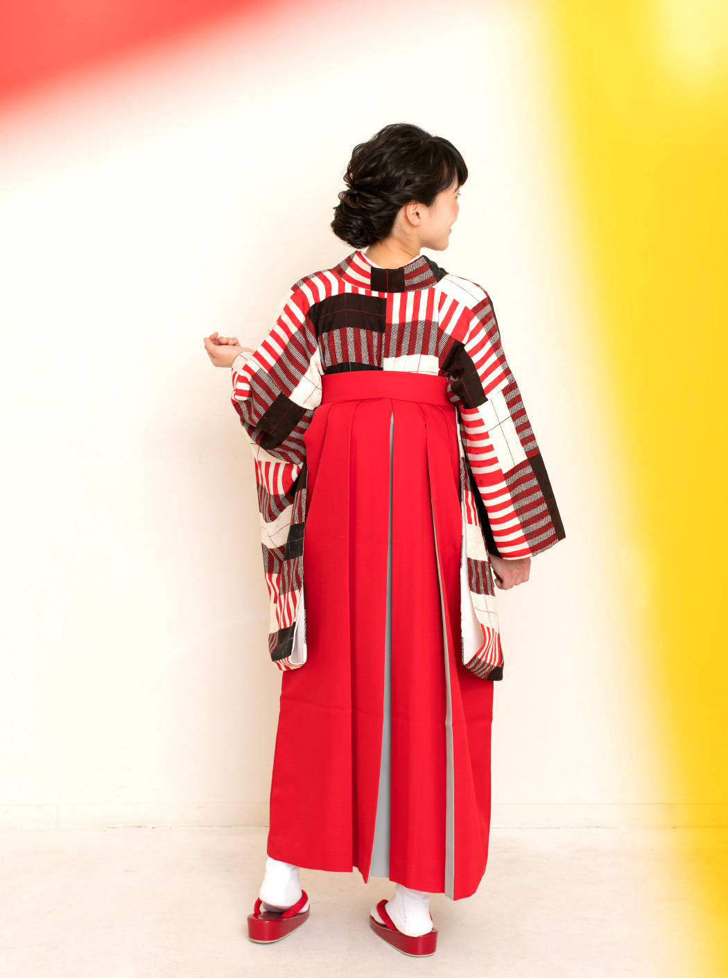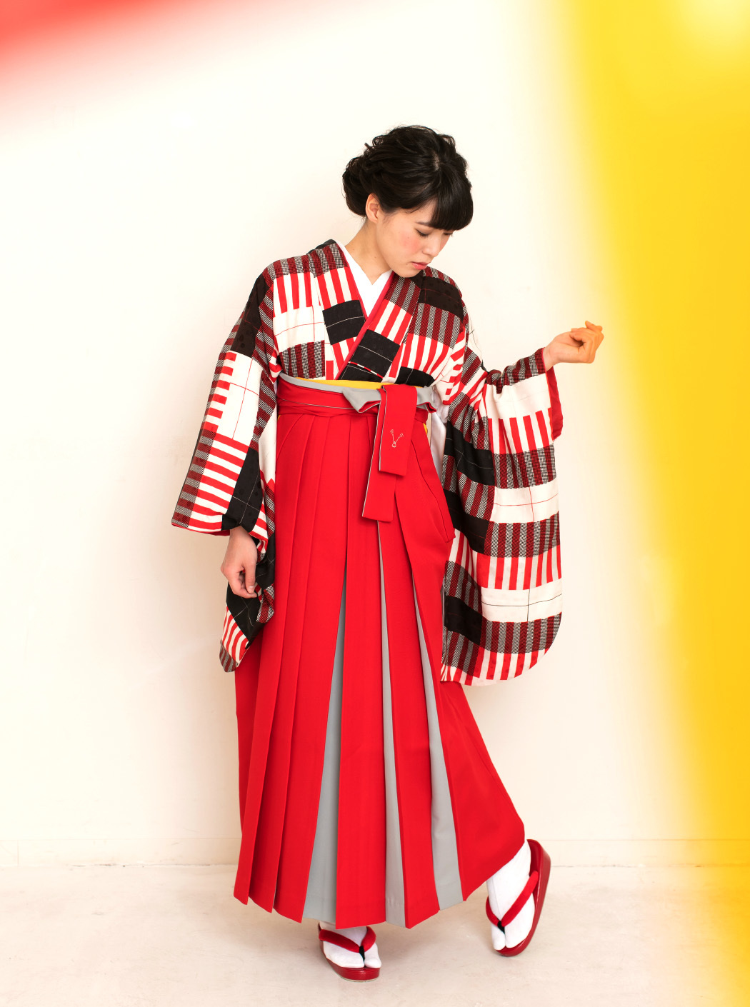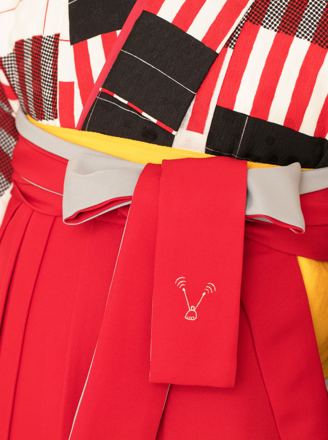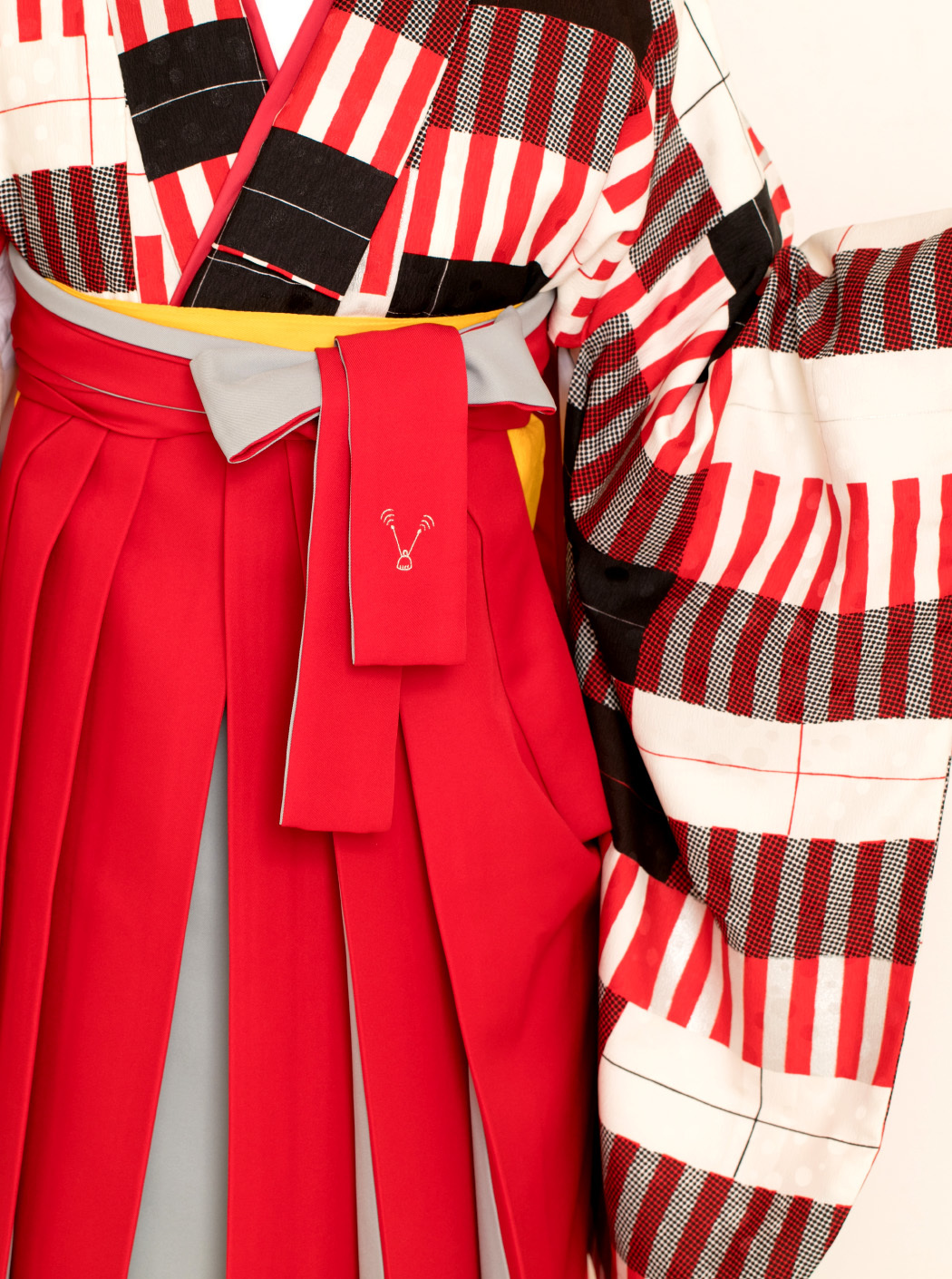 キャンディストライプ構成主義/白(袴:アコーディオン/赤×グレー)