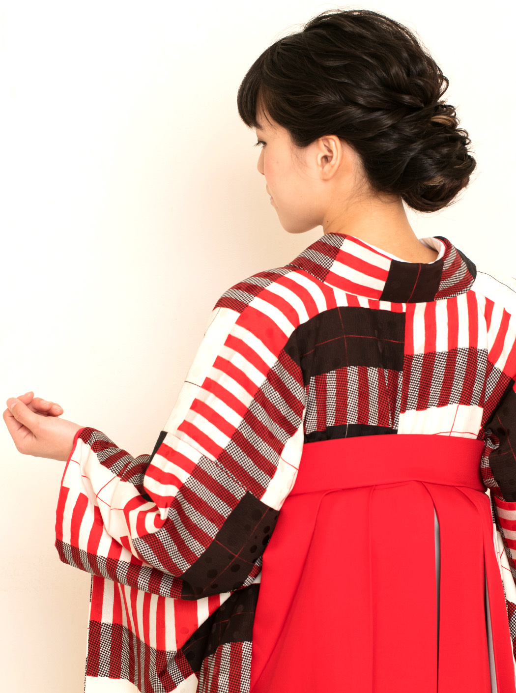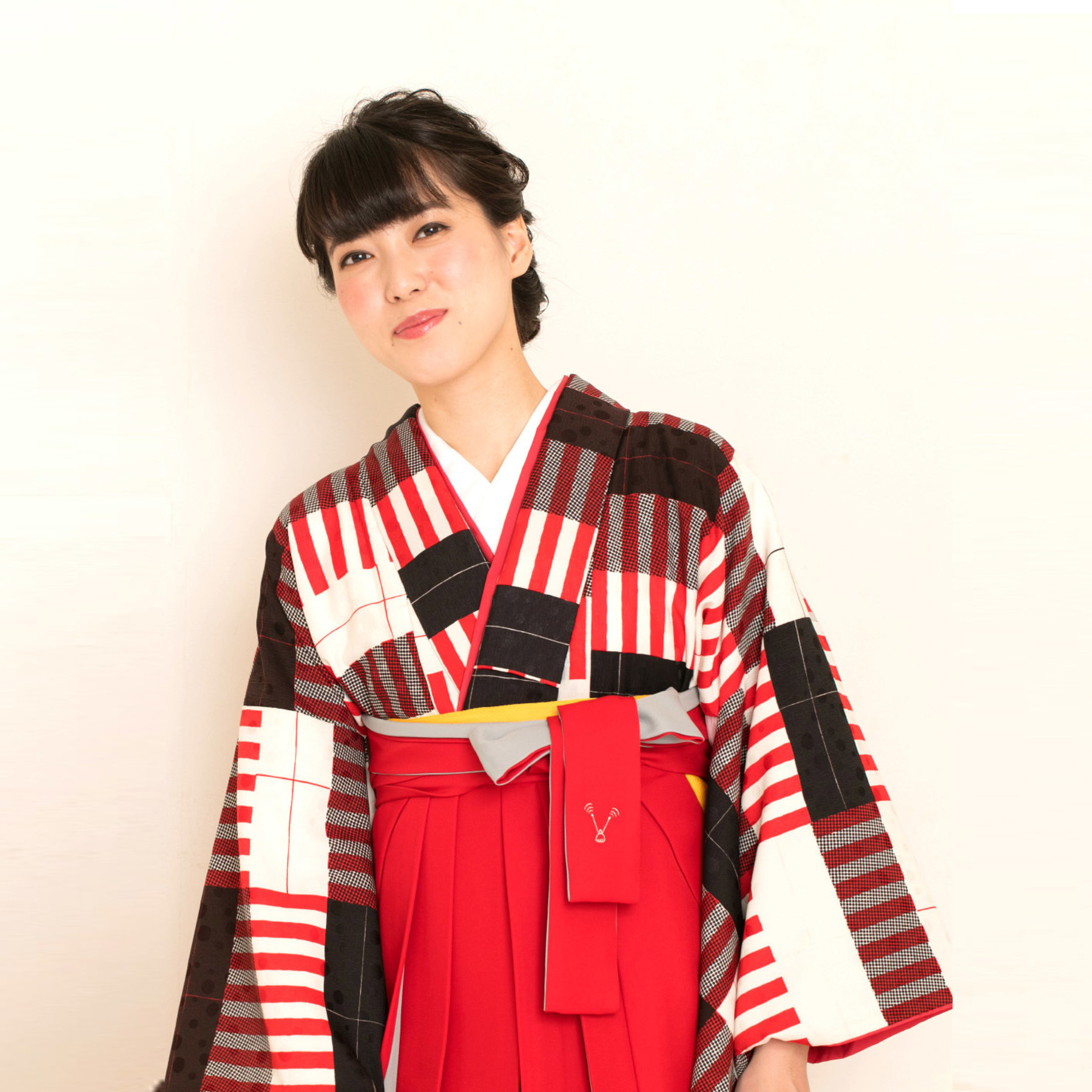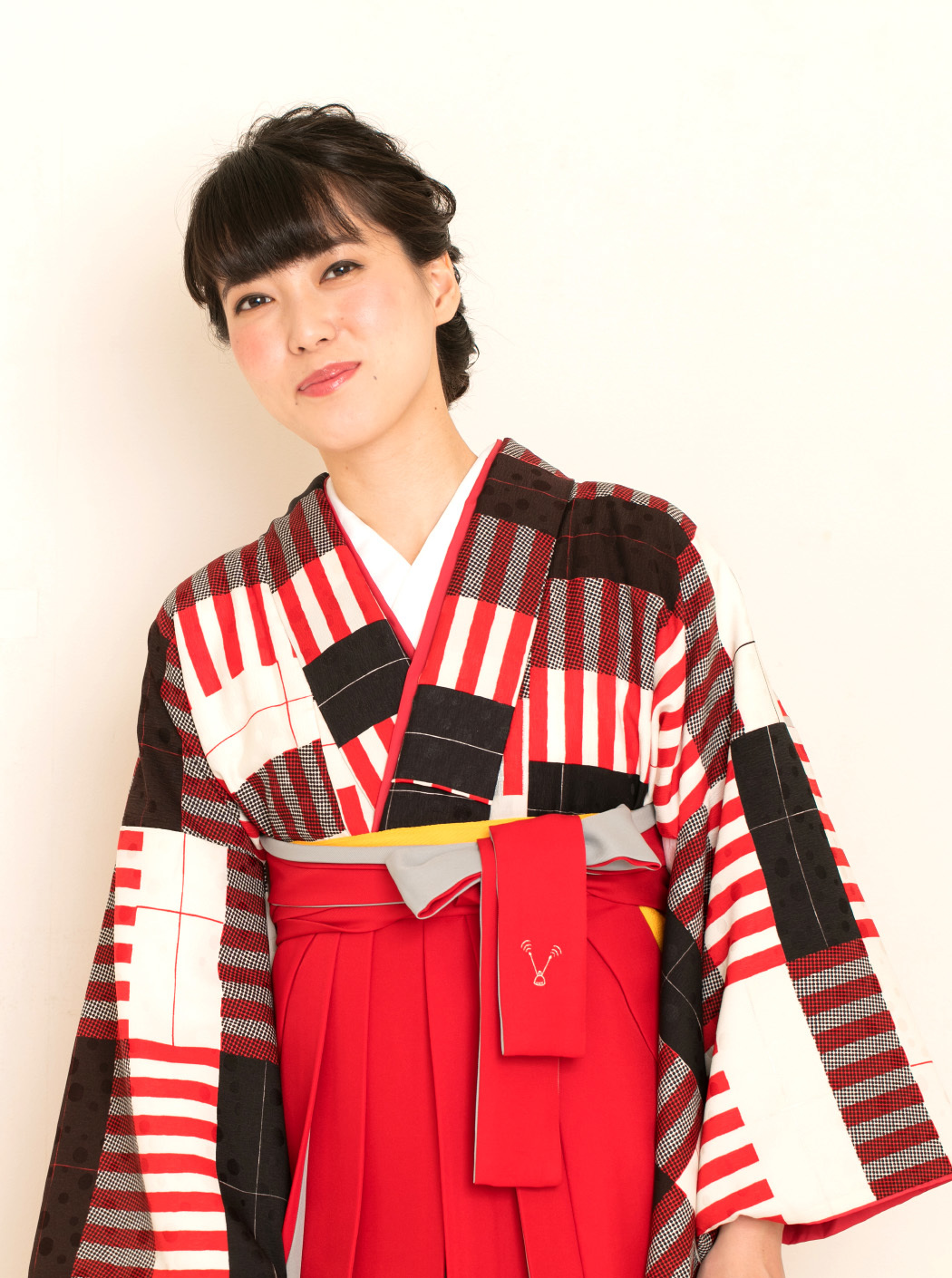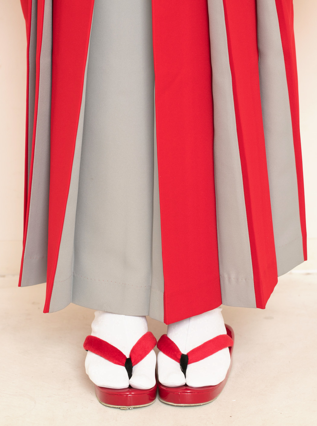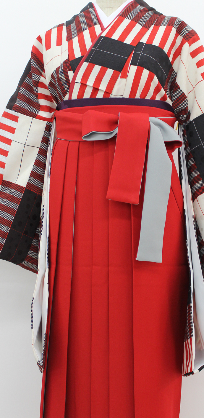 袴「アコーディオン/赤×グレー」