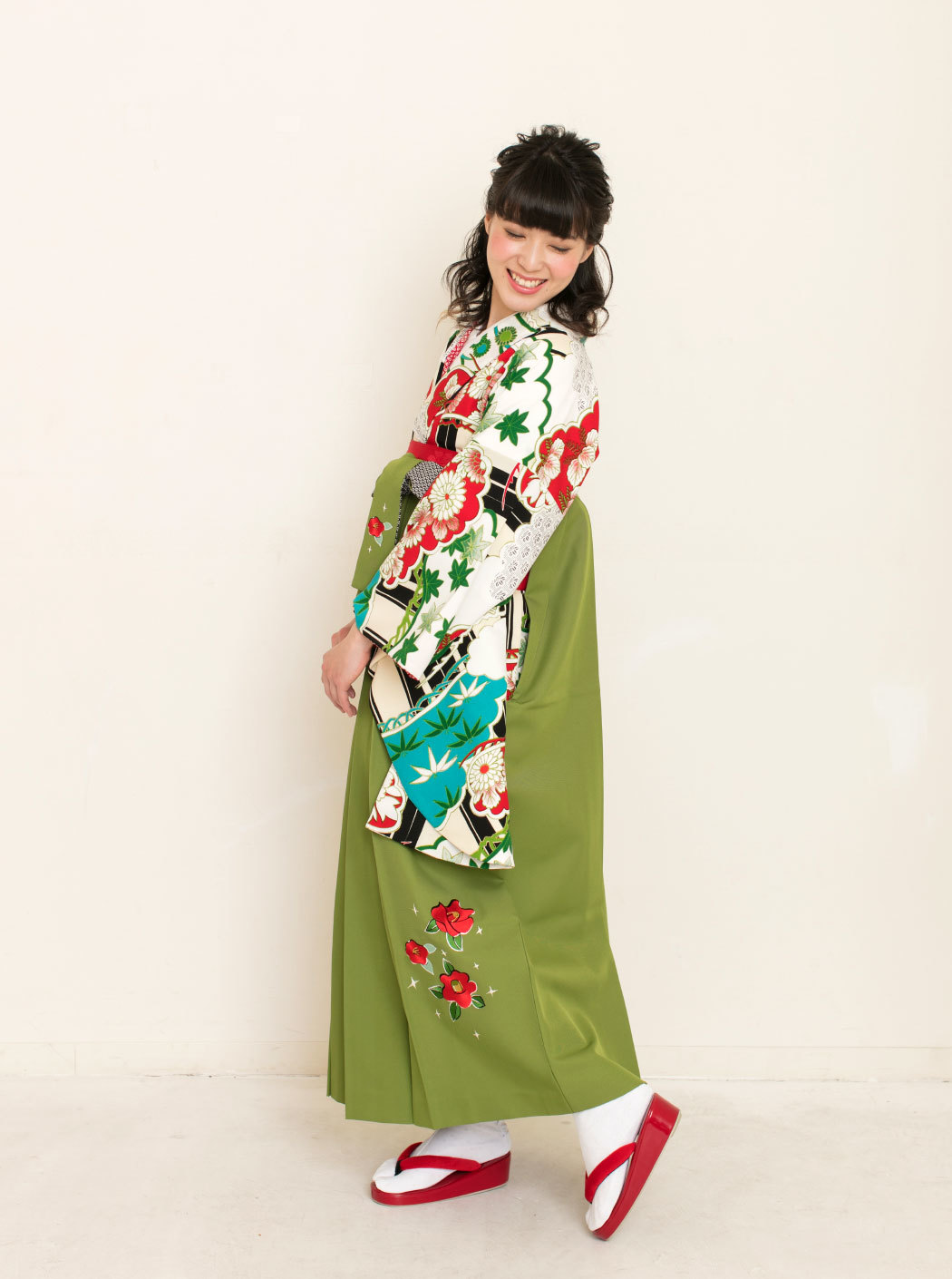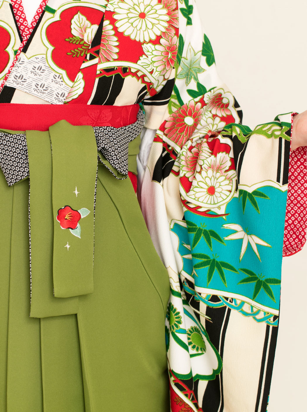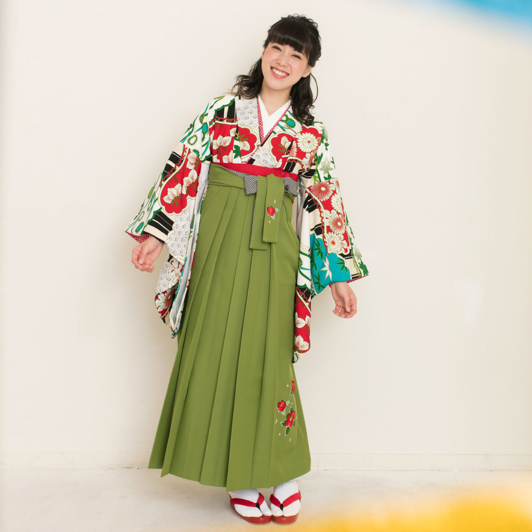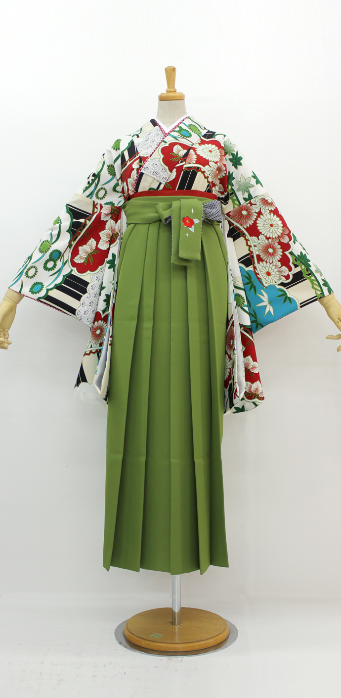 松に雲/白×赤【九重】(袴:椿刺繍/抹茶)
