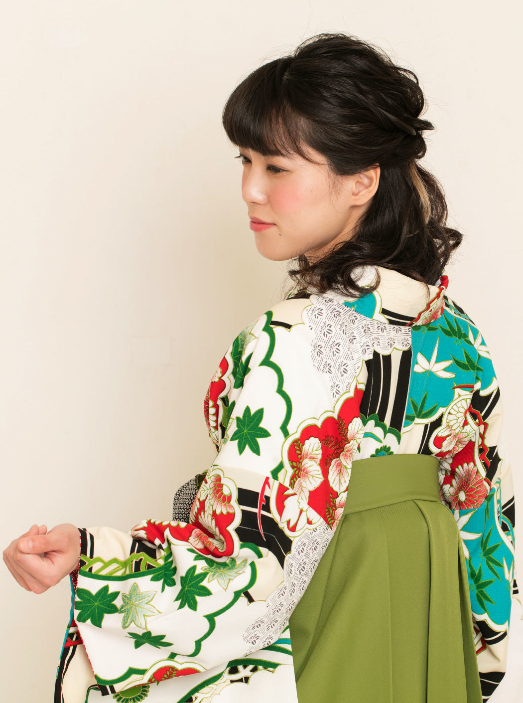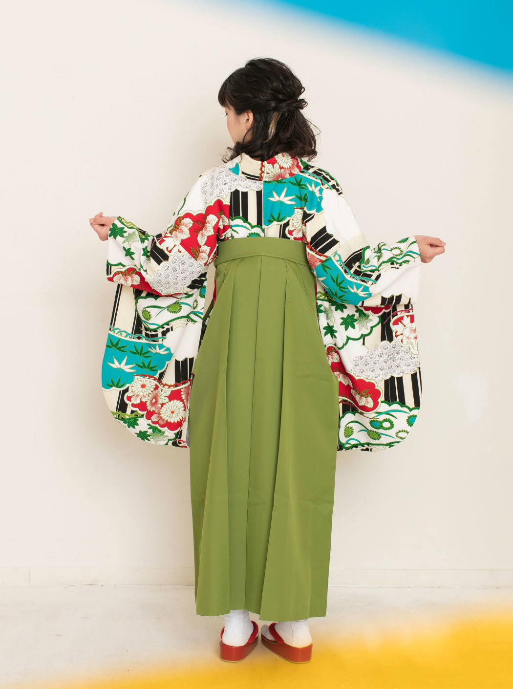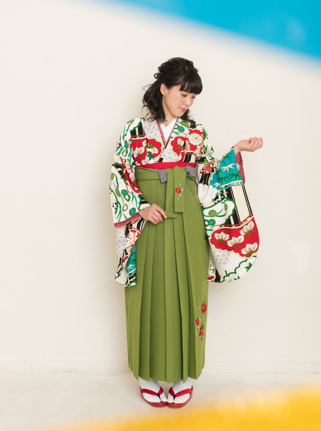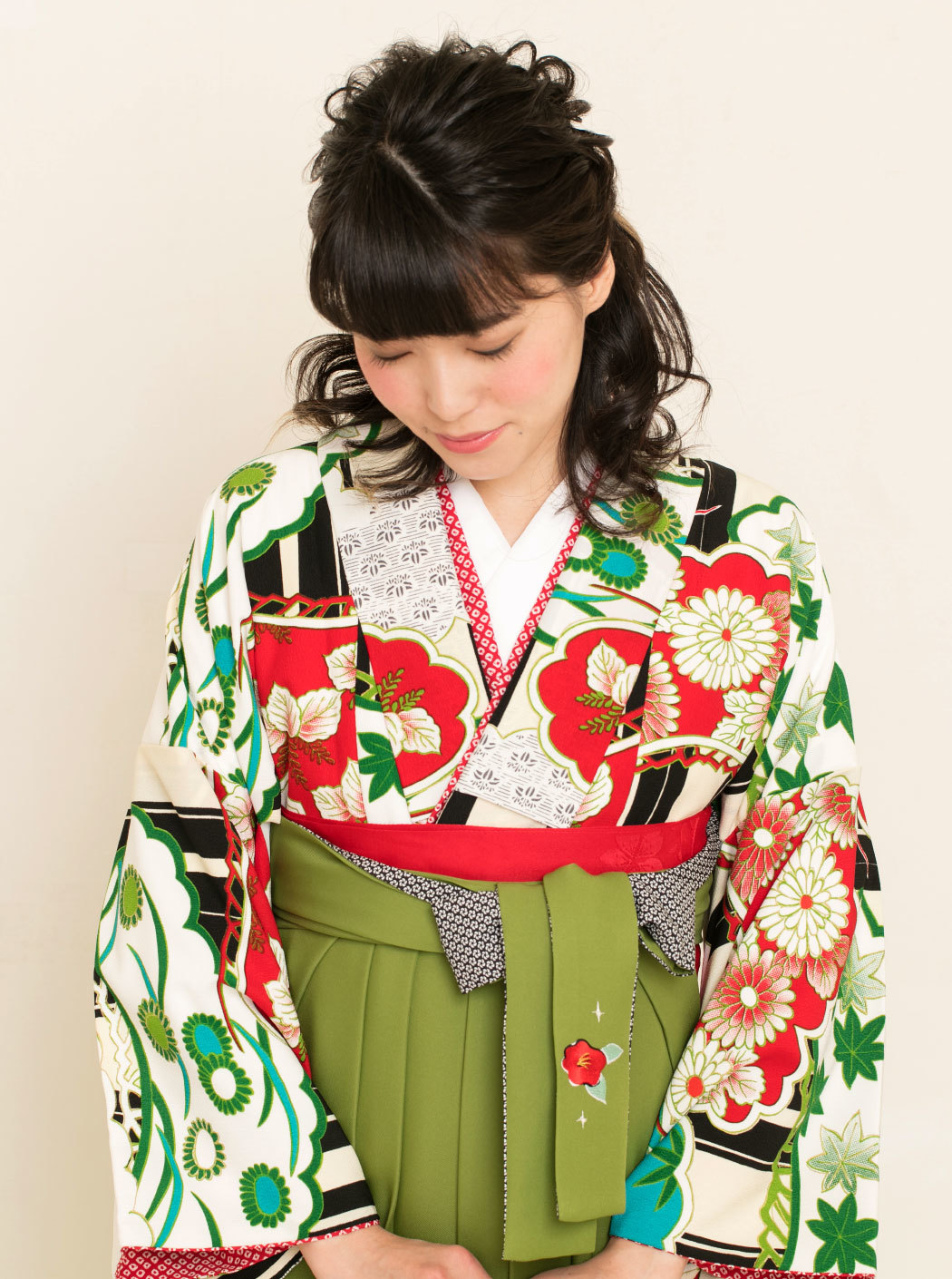 松に雲/白×赤【九重】(袴:椿刺繍/抹茶)